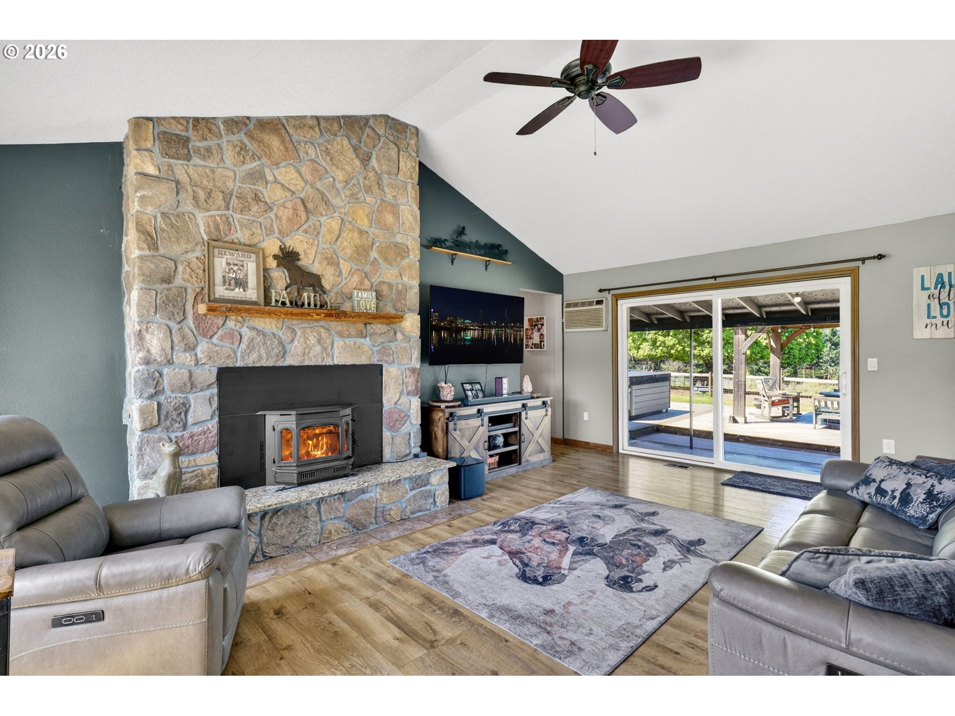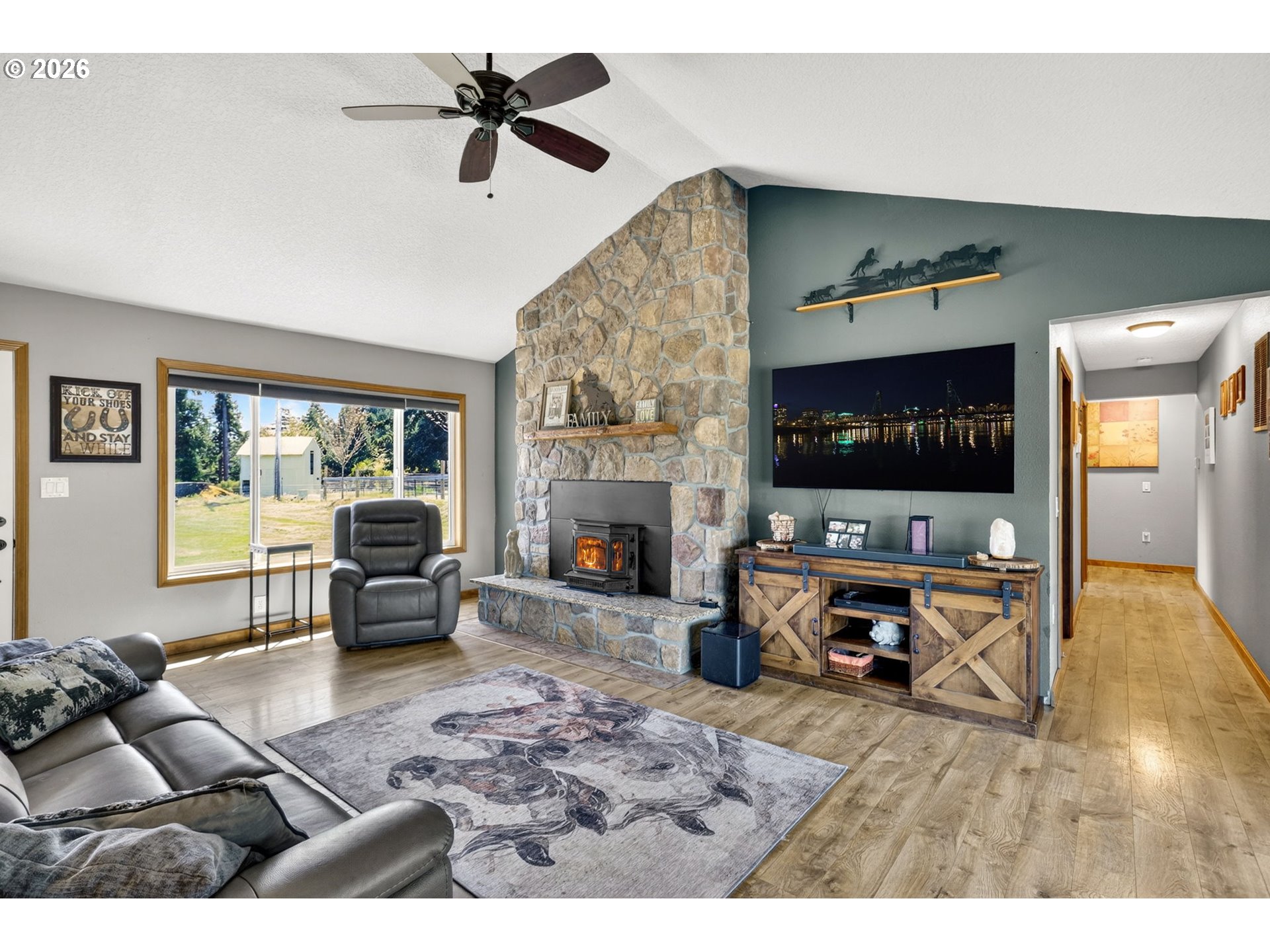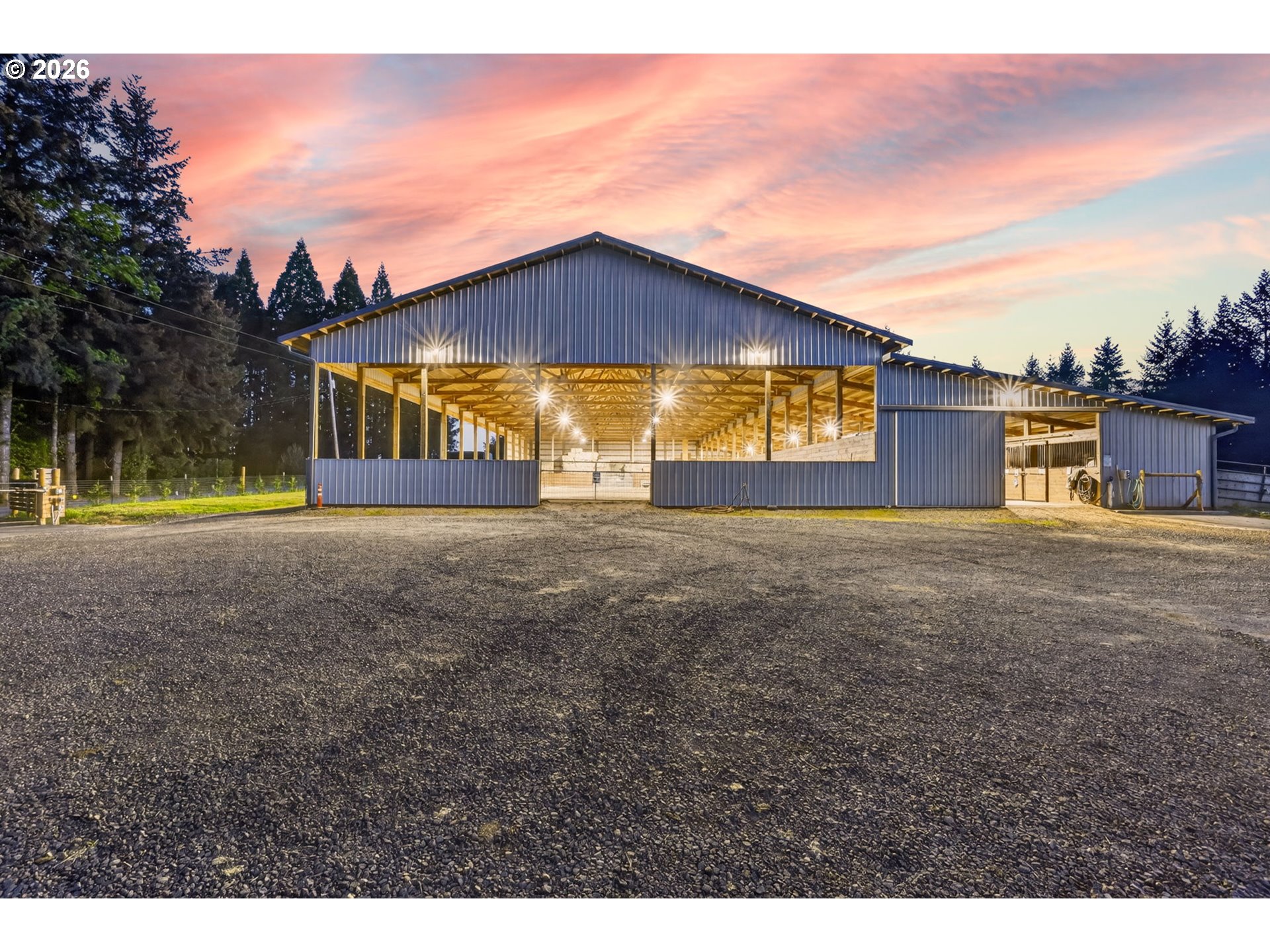 (503) 893-8874Amazing equestrian property is a perfect 10! Set on 10 private, picturesque acres, including 2 acres of trails on the back portion of the property, offering a peaceful setting with breathtaking sunset views. One level Ranch offering 3 beds, 1.5 baths-both have been updated and refreshed. Laminate flooring through the entire living space and bedrooms. The living room is inviting, with a certified wood stove and natural rock fireplace. Open floor plan for the kitchen and dinning room, slider to back covered trek deck w/gazebo for outside living, BBQ'ing and entertaining with views of the livestock, horses and sunsets. The indoor arena (120x60) built in 2023 has great footing, LED lights, and storage for up to 28 tons of hay. 24-12x12 stalls, 11 are box stalls, while 13 have 12x24 mud free runs, two tack rooms on either side of the concrete aisle way with 4 stations of crossties w/fold up saddle racks for easy saddling. In the pasture there are 14 cross-fenced turnouts with water (frost-free hose-bibs) 65 ft. round pen and an outdoor arena 80x156, with two additional grazing pastures. Patience Pole and a Hot water wash rack for convenience. Walk out the back pasture and find your self trail riding or hiking in miles of trails bordering this property and 3 miles from BLM land at the cross roads of Unger/Olsen. An electric gate to the facility to ensure your security and ease for coming and going with lots of parking for horse trailers allowing convenience for your boarders. Income producing equestrian facility that is turn key and ready for the next owners. 1900's barn (30x70) offering more room and cover for other livestock, additionally a 3-bay(48x54) metal shop with a 16x36 loafing shed for your RV/Boat/trailer storage needs. Don't forget the chicken coup and mature fruit trees, 900 fir's were planted in 2021. Roof/Gutters were new in 2016, Ext paint 2016, Heat pump is 5 years old, furnace is 10 yrs old. Entire home was re-plumbed w/Wirsbo 2023.