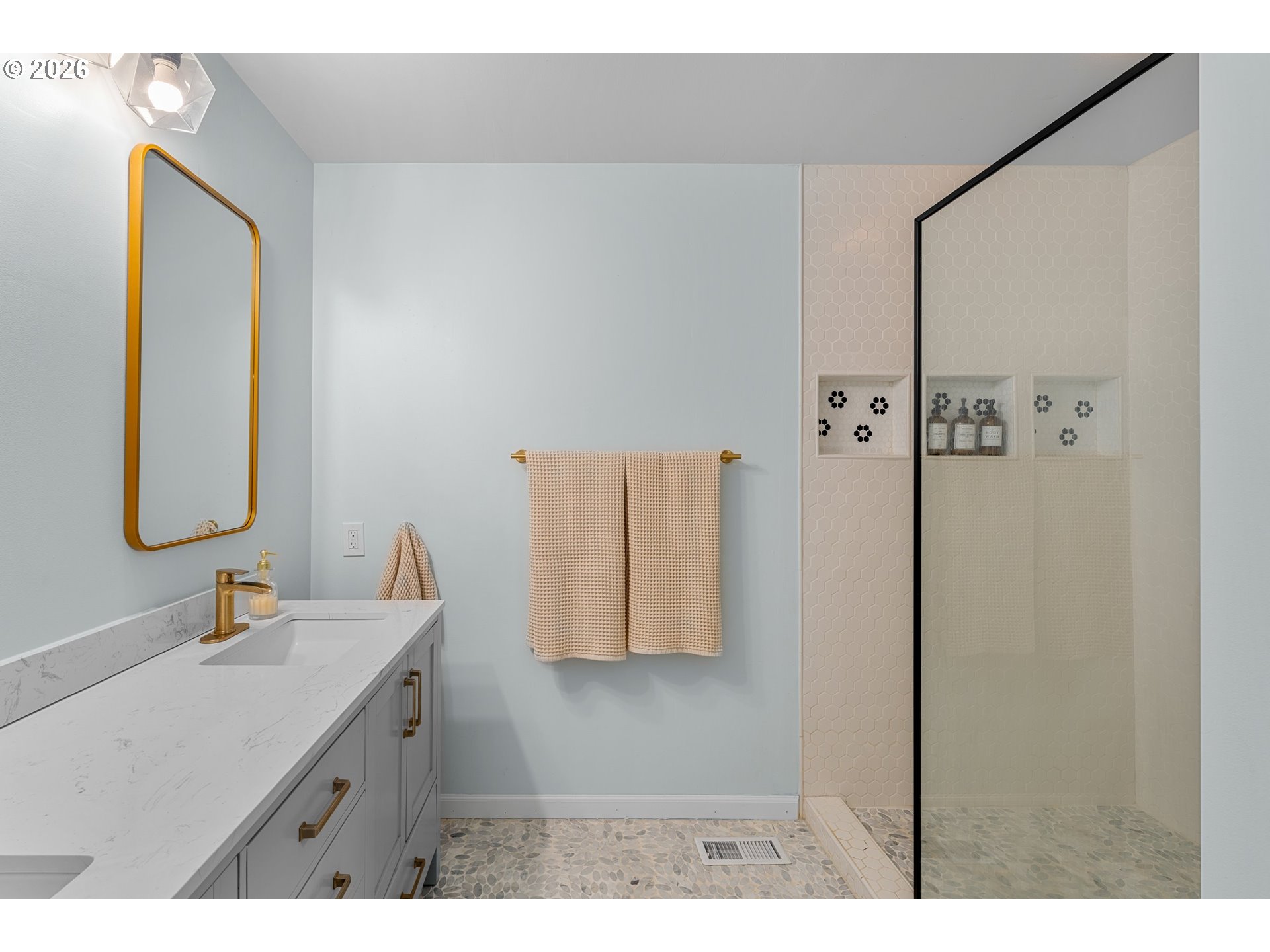 Perfectly perched on over 1/3 of an acre, this beautifully updated home sits on a quiet cul-de-sac in the highly desirable Palisades neighborhood. Scenic views from the vaulted sun-drenched Living Room with wood feature wall & wood burning fireplace. Kitchen remodeled in 2025 & boasts quartz countertops, tile backsplash, SS appliances & sweeping views overlooking the private backyard. Cozy Family Room with wood burning fireplace opens to Dining Room with slider to deck. Primary Suite with private covered deck, walk-in closet & beautifully remodeled bathroom with double sinks & walk-in shower. 3 Additional Bedrooms, Hall Bath, Spacious Bonus Room with exterior entrance, Laundry Room w/utility sink & extra Storage round out the Lower-Level. Recent Updates include: 2025 – New Roof, Back-up Generator, Flooring, Paint & Lighting. 2024 – Entryway & Steps. 2020 – Hi-Efficiency Gas Furnace (96%) + AC. Top Rated Schools & Ideal location with easy access to practically everything - Shopping, Groceries, Theater, Westridge Elementary, Cook Butte, 1 Mile to Lakeridge HS & the NEW LORAC with Indoor Pool, Rec Center & Public Golf, 1.3 Miles to Luscher Farm City Park & Access to the Palisades Park Easement with options for Boat, Canoe & SUP. This home has it all!