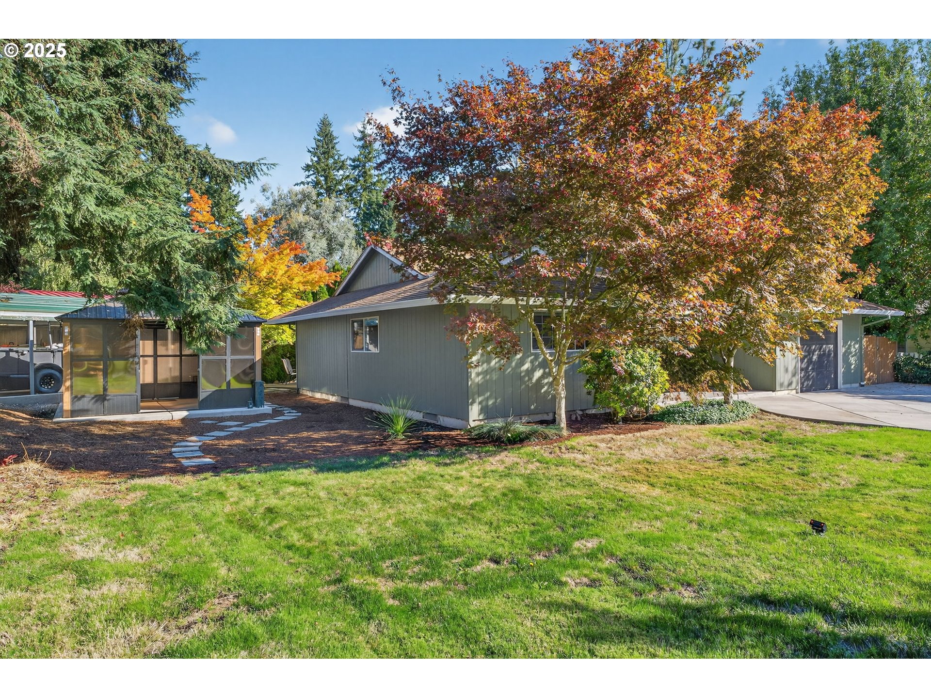 Welcome to Rivergrove! This beautifully maintained, move-in ready single-level home sits on a spacious corner lot with a newly paved driveway and porch (2025) and a brand-new 30-year roof (2026). The property features mature trees, garden space, a custom tool shed, covered RV/boat parking, and an all-season retreat with a permanent hard-top gazebo with removable window panels, built on a new concrete pad (2025). Inside, a functional layout with fresh interior paint throughout (2025), updated bathrooms with new exhaust fans (2025), and new carpet in all three bedrooms (2025). Additional upgrades include new HVAC ducting (2024), a new electrical panel (2024), with generator-ready backup power. Conveniently located near highly sought-after Lake Oswego schools, parks, restaurants, Lake Grove swim park, Bridgeport, and downtown Lake Oswego.