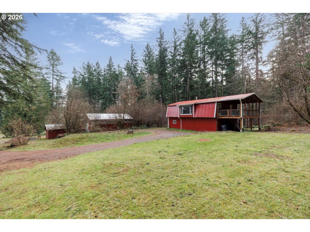 Offered for the first time, this custom-built home is set on 27 private acres of rolling pastures and wooded forest, offering exceptional privacy, versatility, and long-term potential.The main home features 3 bedrooms and 2.5 bathrooms, including a primary suite on the main level with en suite bath. Large windows capture peaceful views of surrounding pastures and forest, filling the home with natural light. A wood-burning fireplace provides a warm focal point, while an expansive deck overlooks open pasture and mature timber—perfect for entertaining or relaxing in a serene, natural setting.The daylight basement expands the living space with two bedrooms and a full bathroom, an open bonus room with exterior access, and a separate mud room that could also function as a home office, offering excellent flexibility for a variety of uses.The property also includes a detached accessory structure located near the edge of the forest. This versatile space includes two rooms and one bathroom, along with dedicated storage beneath the structure. The layout is well suited for uses such as a home office, craft or hobby room, studio, or workout space, providing a private and quiet environment separate from the main home.A large shop with a concrete floor and mezzanine offers abundant workspace and storage, and a full bathroom is attached to the shop, adding convenience for projects, hobbies, or outdoor work.The land itself is a standout feature, offering 27 acres that may be dividable under Measure 49 (buyer to perform due diligence) along with harvestable timber, creating potential for future use or investment.A rare opportunity where privacy, natural beauty, and flexible spaces come together in a truly special setting.