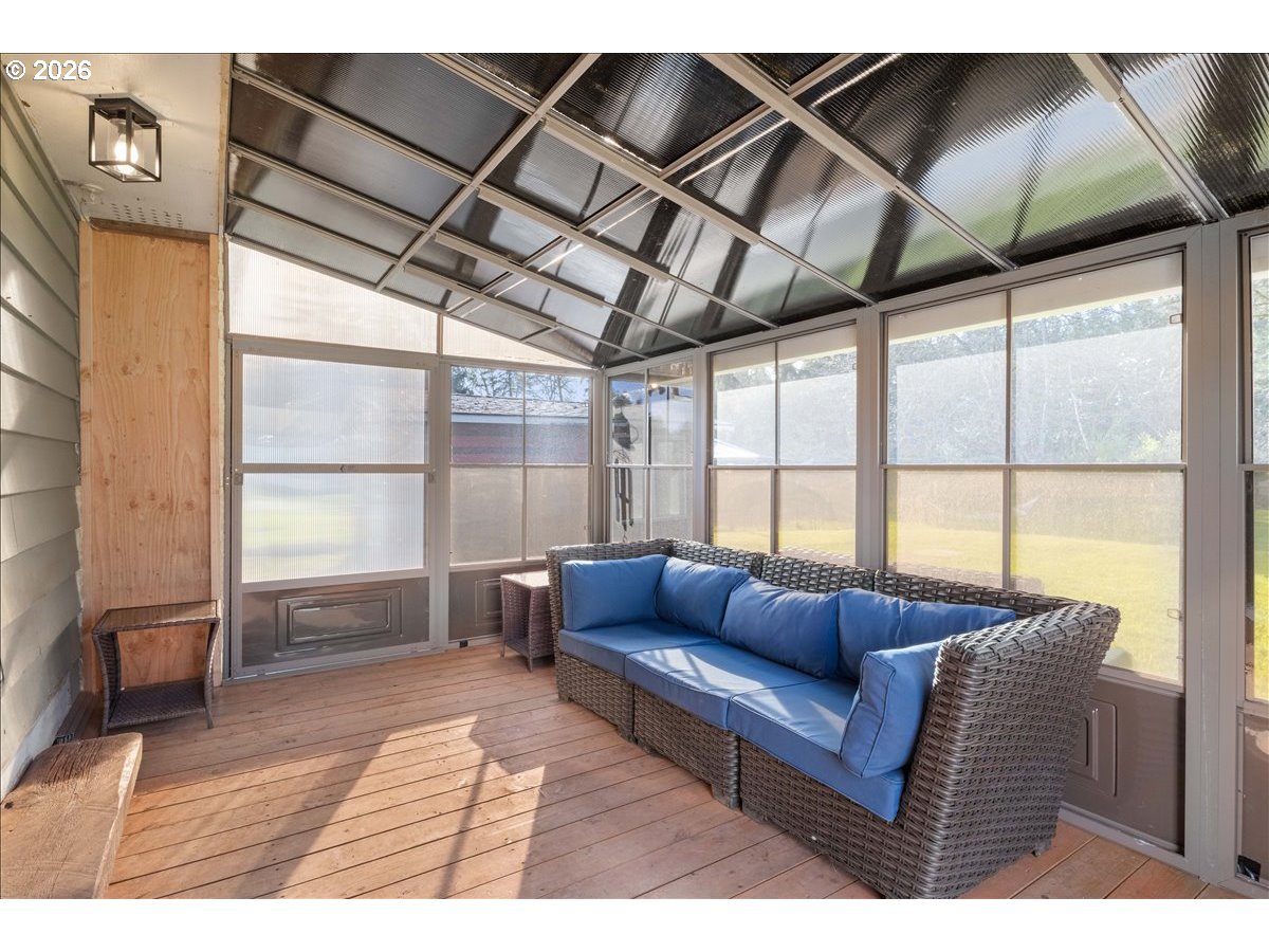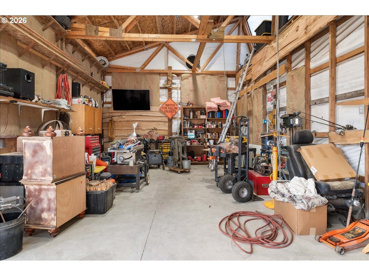 Enter through one of two 20-foot gates to this nearly 1-acre property. Originally built in 1940, the home was completely renovated down to the studs in 2007, including updated electrical, plumbing, and HVAC systems.This well-maintained 2-bedroom, 1-bath home offers just over 1,000 sq ft of comfortable living space. The kitchen features a pantry, ample natural light, and functional counter space. Recent updates include new interior paint and carpet, an Ecobee thermostat, and a cozy wood-burning stove.The property is thoughtfully equipped with a detached 2-car garage with 220V power, a 20' x 30' pole barn with a concrete floor, and an additional small storage barn ideal for tools or small animals. Enjoy the peaceful setting from the creekside deck with direct water access. An insulated 8' x 14' shed—perfect as a home office or retreat—is also included.Pre-wired with 50-amp, 220V service for a hot tub or EV charger, this versatile property offers space, comfort, and functionality without overwhelming upkeep. Come make it your own!