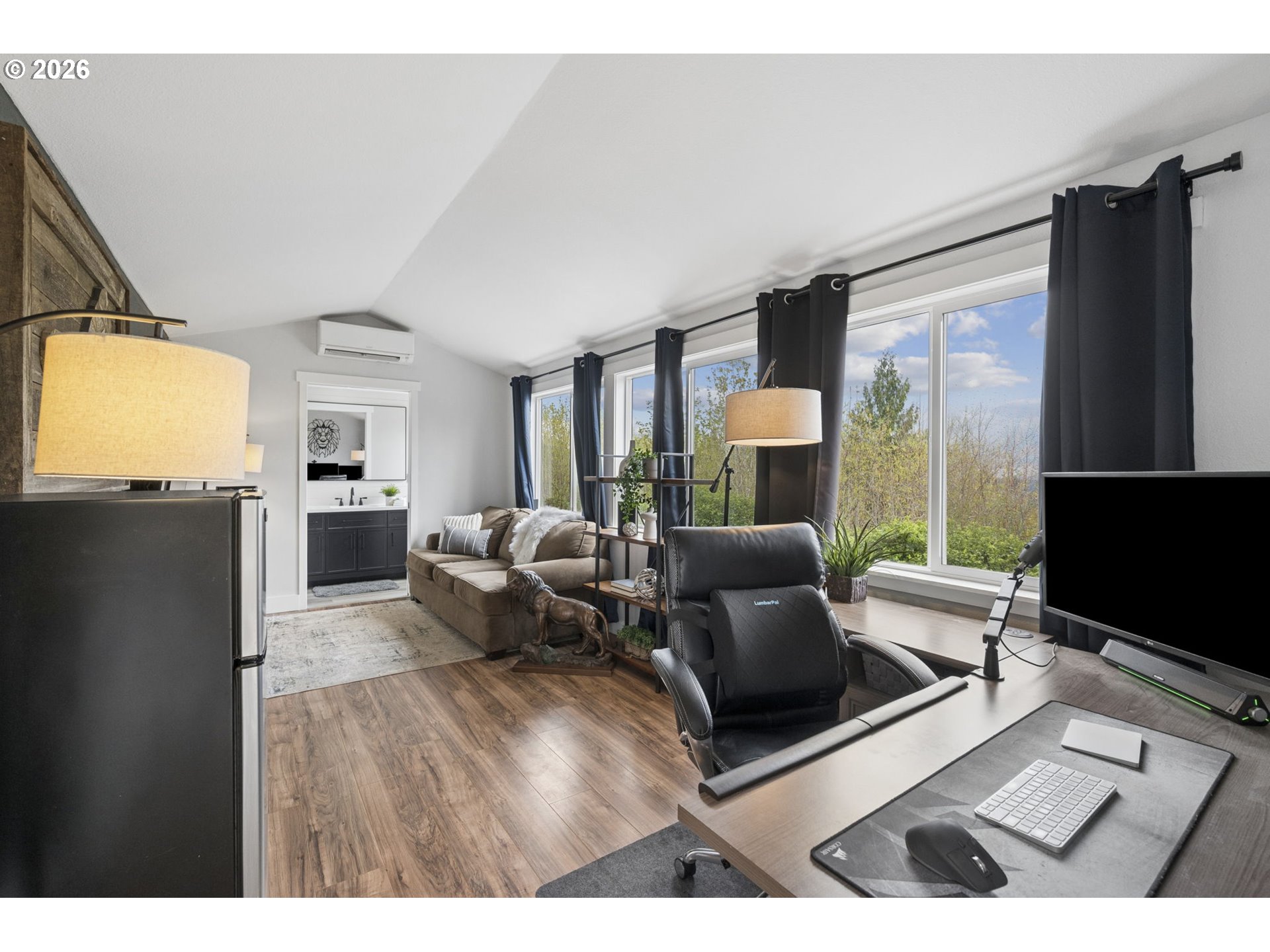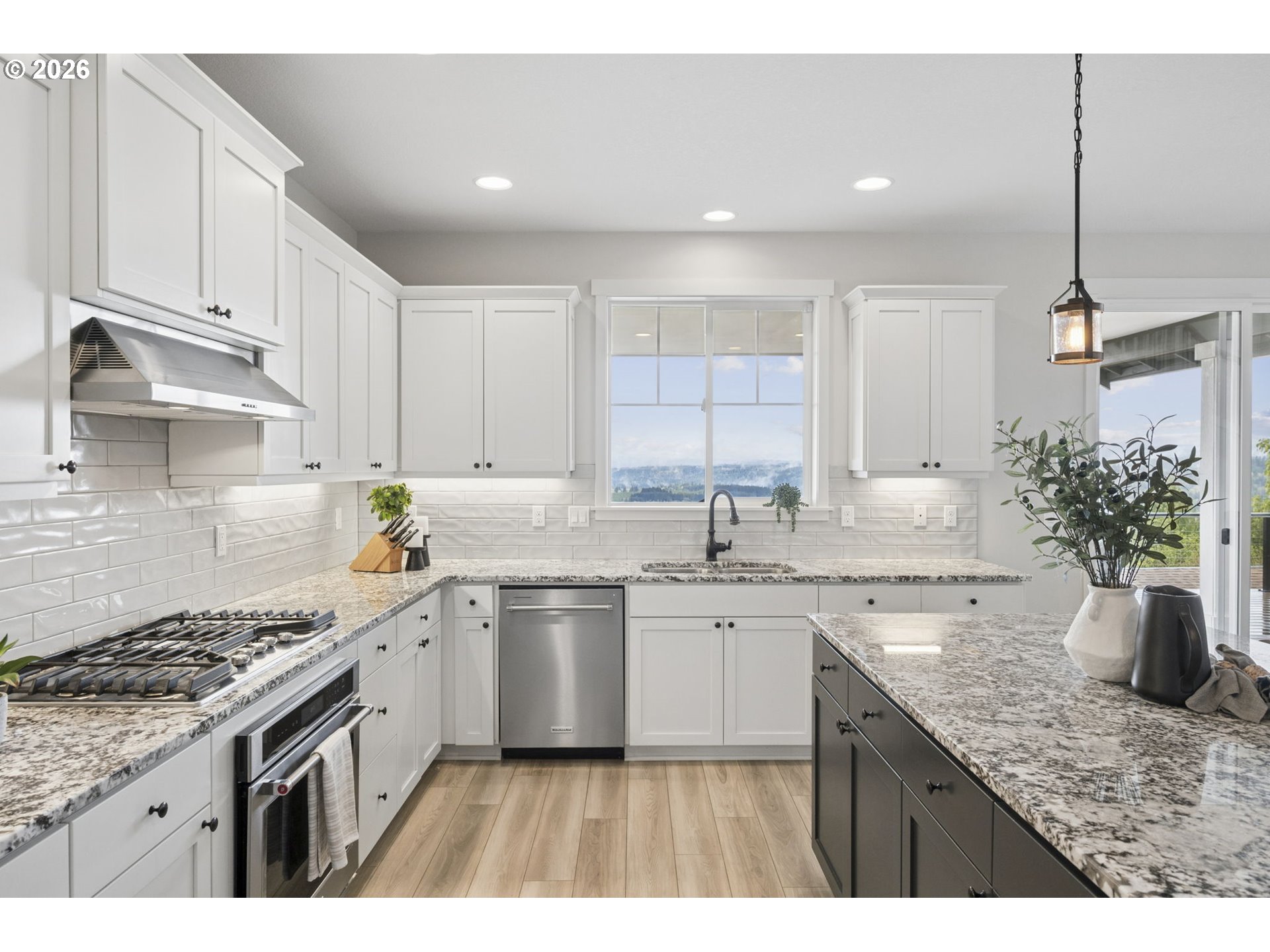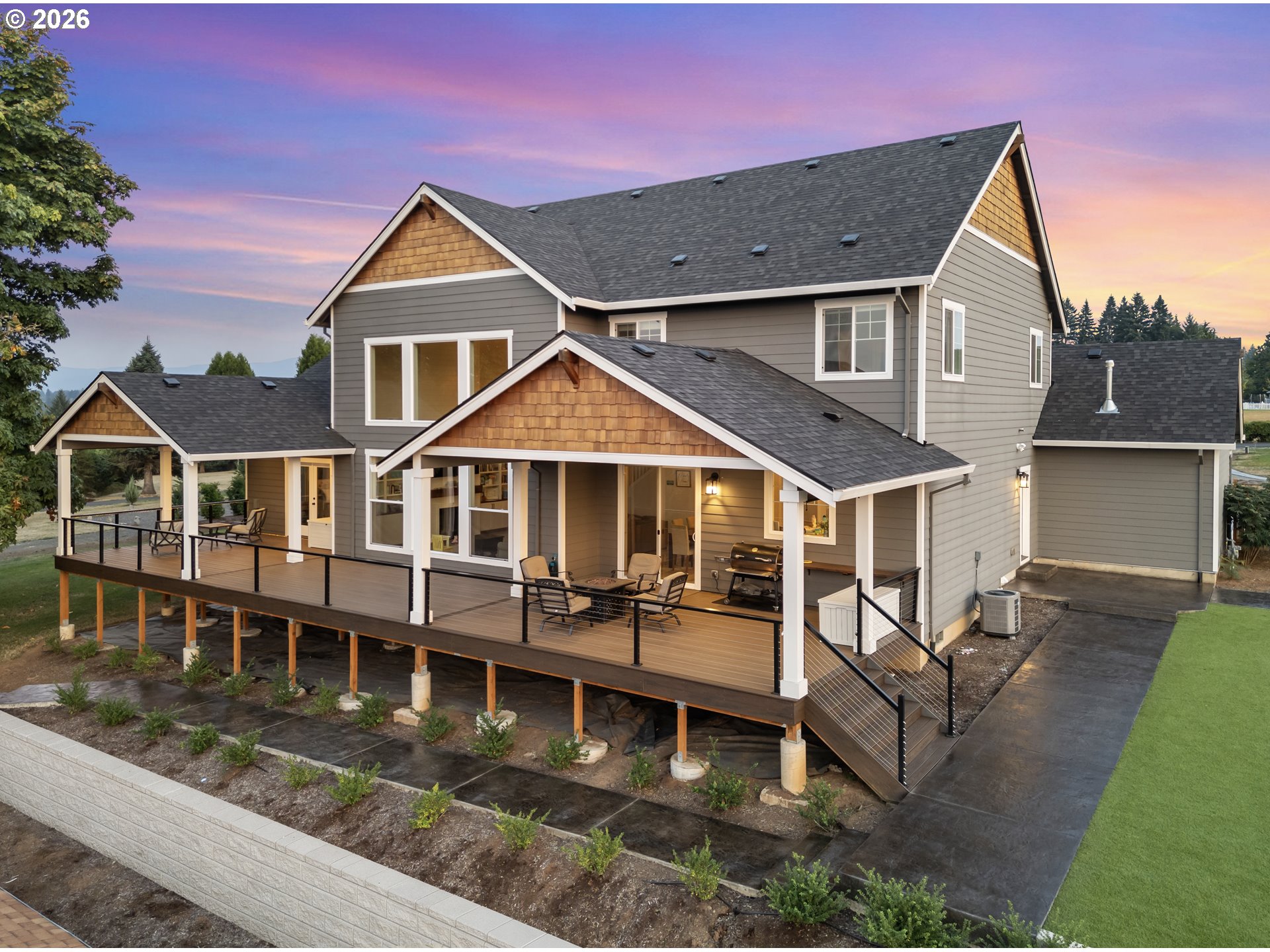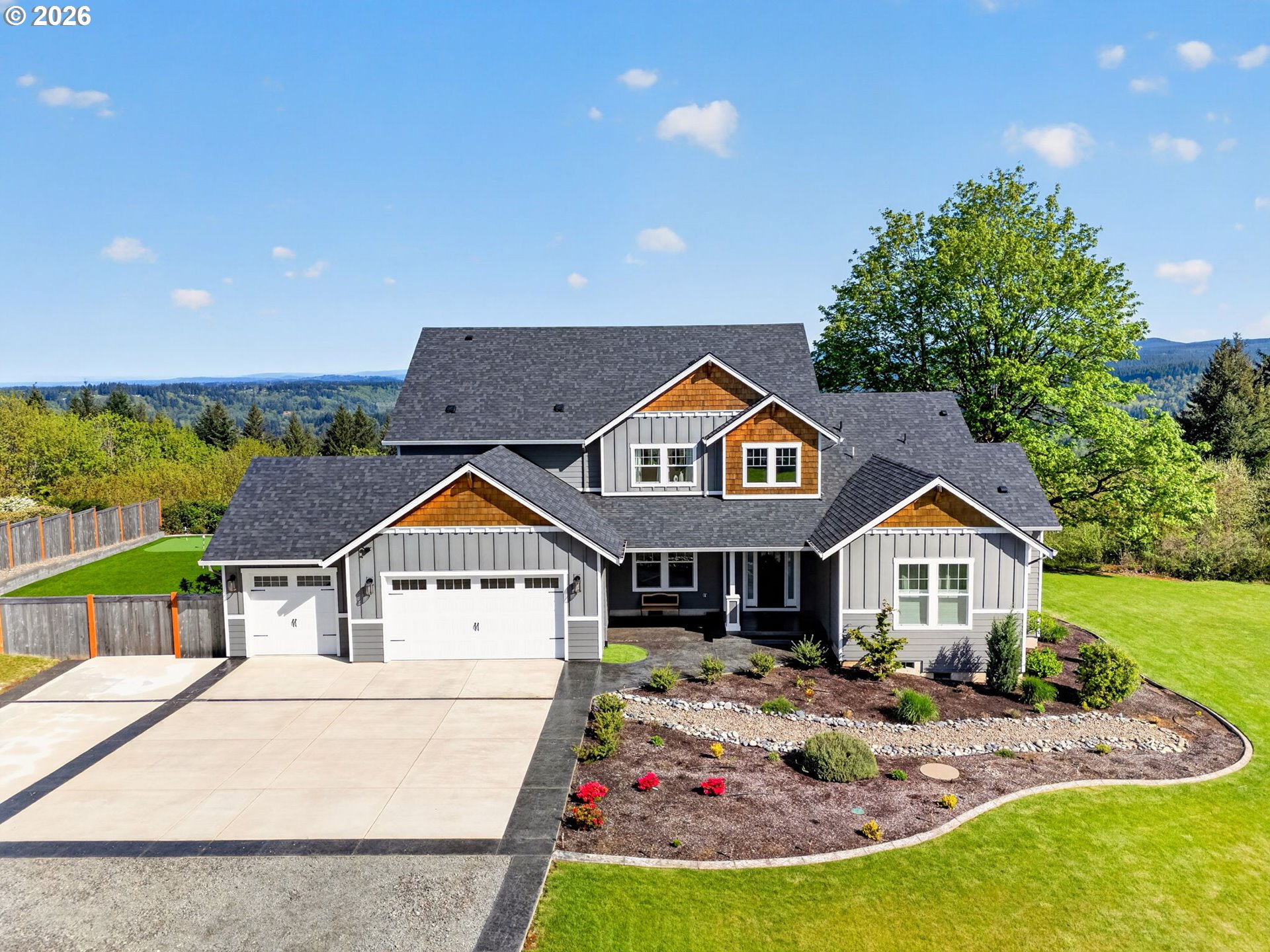 Open House 4/26 @ 12-3pm! Luxury meets lifestyle on nearly 5 private acres with breathtaking panoramic valley and mountain views, including Mt. Hood, in this stunning 2022-built custom home. Tucked at the end of a private street, this Craftsman offers 4 bedrooms, 2.5 bathrooms, including a beautifully appointed detached 1 bedroom/1 bathroom ADU—ideal for guests, multigenerational living, or income potential. Inside, the main level is designed for both everyday living and entertaining, featuring soaring ceilings, expansive windows that frame the views, and an open-concept layout. The chef’s kitchen is equipped with quartz counters, double ovens, gas appliances, a large island, pantry and generous dining space. The primary suite on the main level offers a true retreat with French doors to the deck, two walk-in closets, dual vanities, and a spa-style walk-in shower. Upstairs, three additional bedrooms and a versatile loft provide flexible living options. Dedicated office is located on the main floor. The detached ADU (approx. 512 sq ft) is fully equipped with kitchen, living space, bedroom, bath, and private entrance—currently set up as an income producing short-term rental. Outdoor living is where this property truly shines. Enjoy the expansive covered deck with sweeping views, professionally landscaped grounds, large level lawn, and custom putting green—creating a private resort-like setting. And don't miss the golf simulator in the garage! Ample parking, a 3-car garage, RV/boat storage, and an addition 230 sf outbuilding with Hvac/ac & full bathroom provide functionality to match the beauty (currently used as a studio/office, but would make a great airbnb as well). A rare combination of new construction, usable acreage, income potential, and unforgettable views—just minutes to town yet offering complete privacy!
