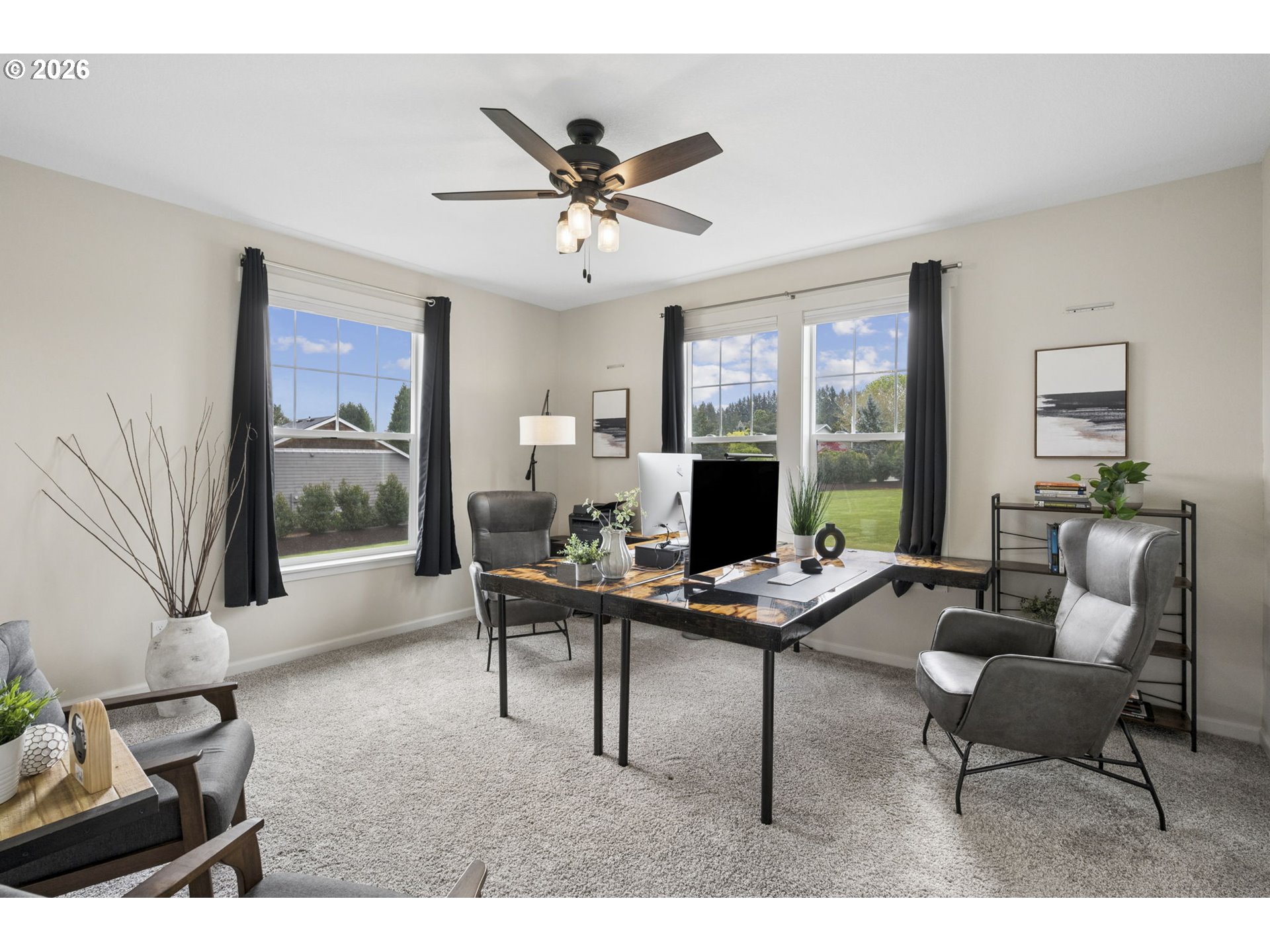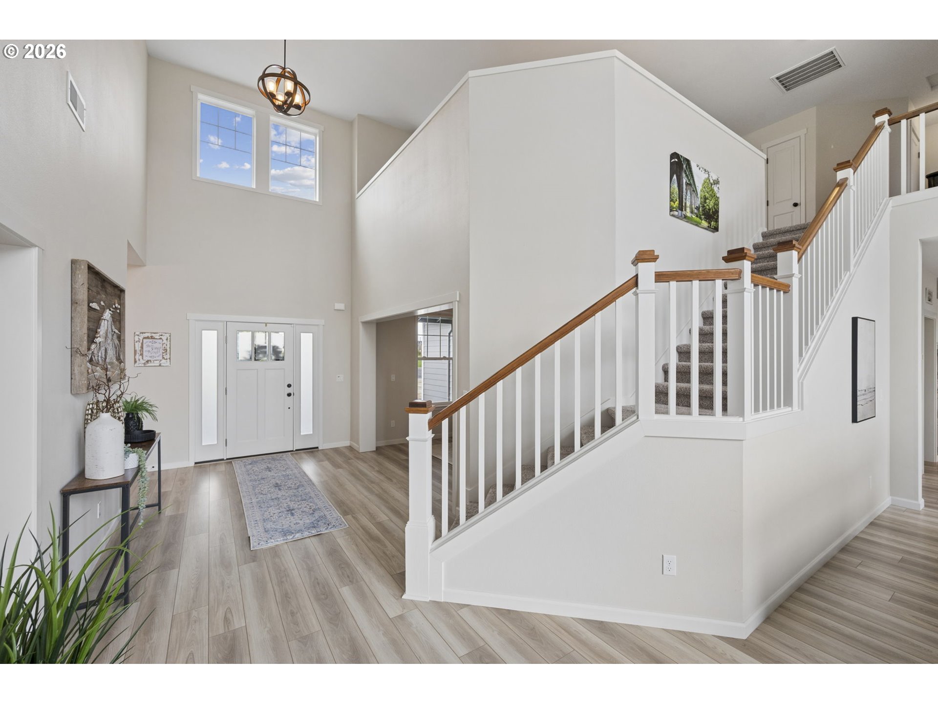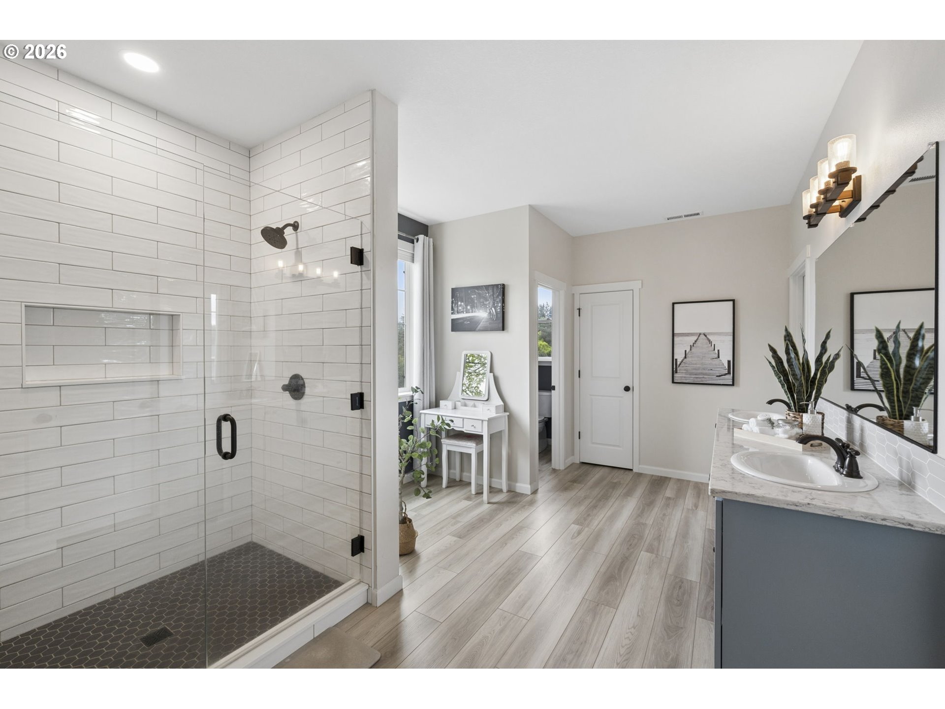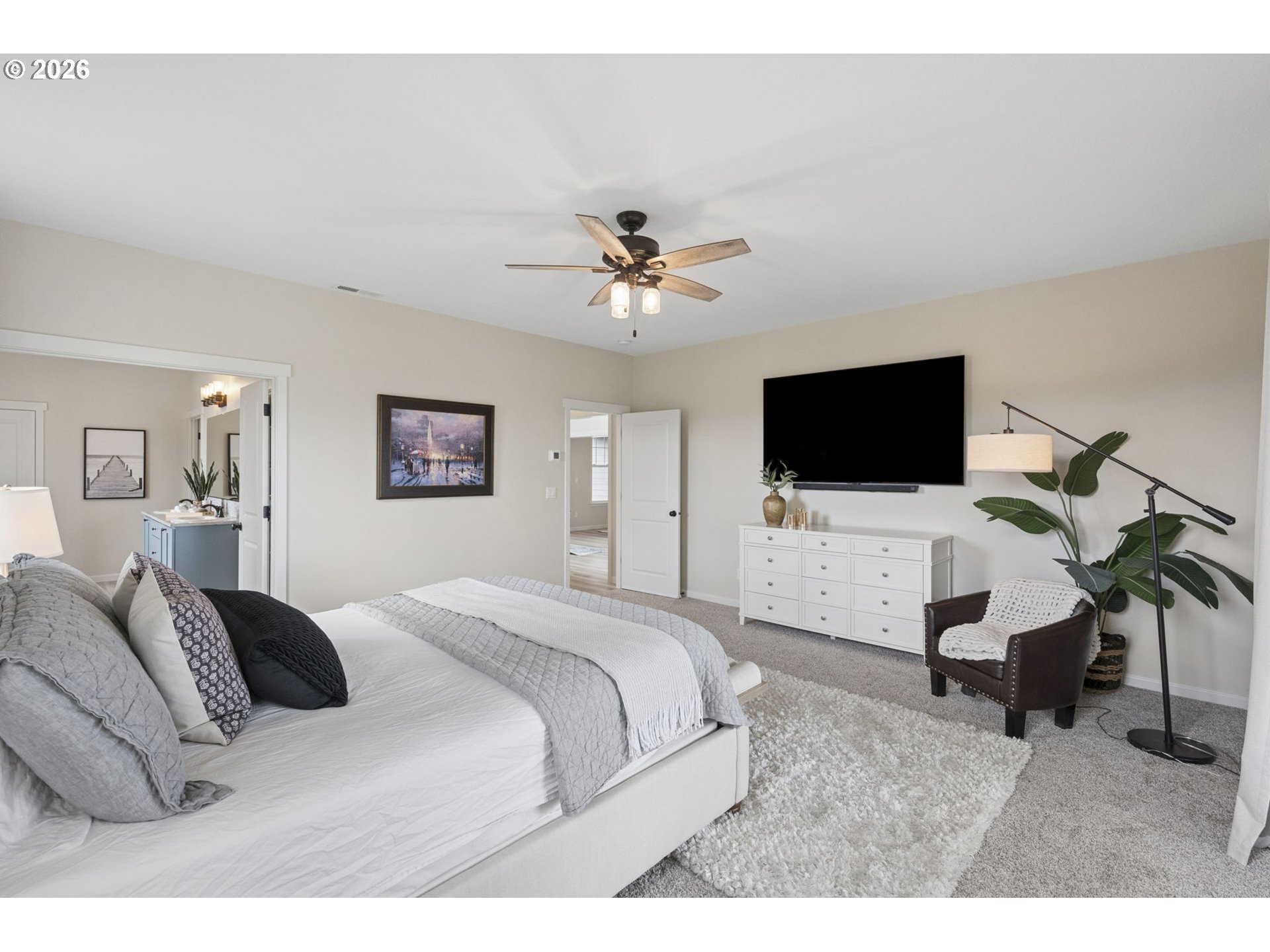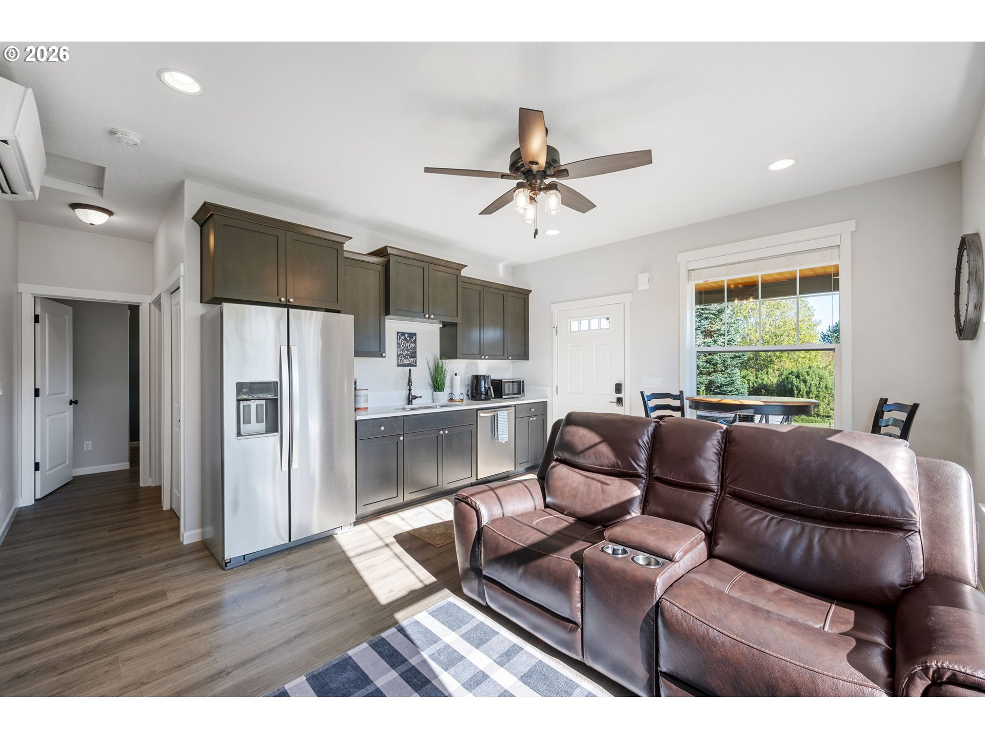 Open House 4/26 @ 12-3pm! Luxury meets lifestyle on nearly 5 private acres with breathtaking panoramic valley and mountain views, including Mt. Hood, in this stunning 2022-built custom home. Tucked at the end of a private street, this Craftsman offers 4 bedrooms, 2.5 bathrooms, including a beautifully appointed detached 1 bedroom/1 bathroom ADU—ideal for guests, multigenerational living, or income potential. Inside, the main level is designed for both everyday living and entertaining, featuring soaring ceilings, expansive windows that frame the views, and an open-concept layout. The chef’s kitchen is equipped with quartz counters, double ovens, gas appliances, a large island, pantry and generous dining space. The primary suite on the main level offers a true retreat with French doors to the deck, two walk-in closets, dual vanities, and a spa-style walk-in shower. Upstairs, three additional bedrooms and a versatile loft provide flexible living options. Dedicated office is located on the main floor. The detached ADU (approx. 512 sq ft) is fully equipped with kitchen, living space, bedroom, bath, and private entrance—currently set up as an income producing short-term rental. Outdoor living is where this property truly shines. Enjoy the expansive covered deck with sweeping views, professionally landscaped grounds, large level lawn, and custom putting green—creating a private resort-like setting. And don't miss the golf simulator in the garage! Ample parking, a 3-car garage, RV/boat storage, and an addition 230 sf outbuilding with Hvac/ac & full bathroom provide functionality to match the beauty (currently used as a studio/office, but would make a great airbnb as well). A rare combination of new construction, usable acreage, income potential, and unforgettable views—just minutes to town yet offering complete privacy!