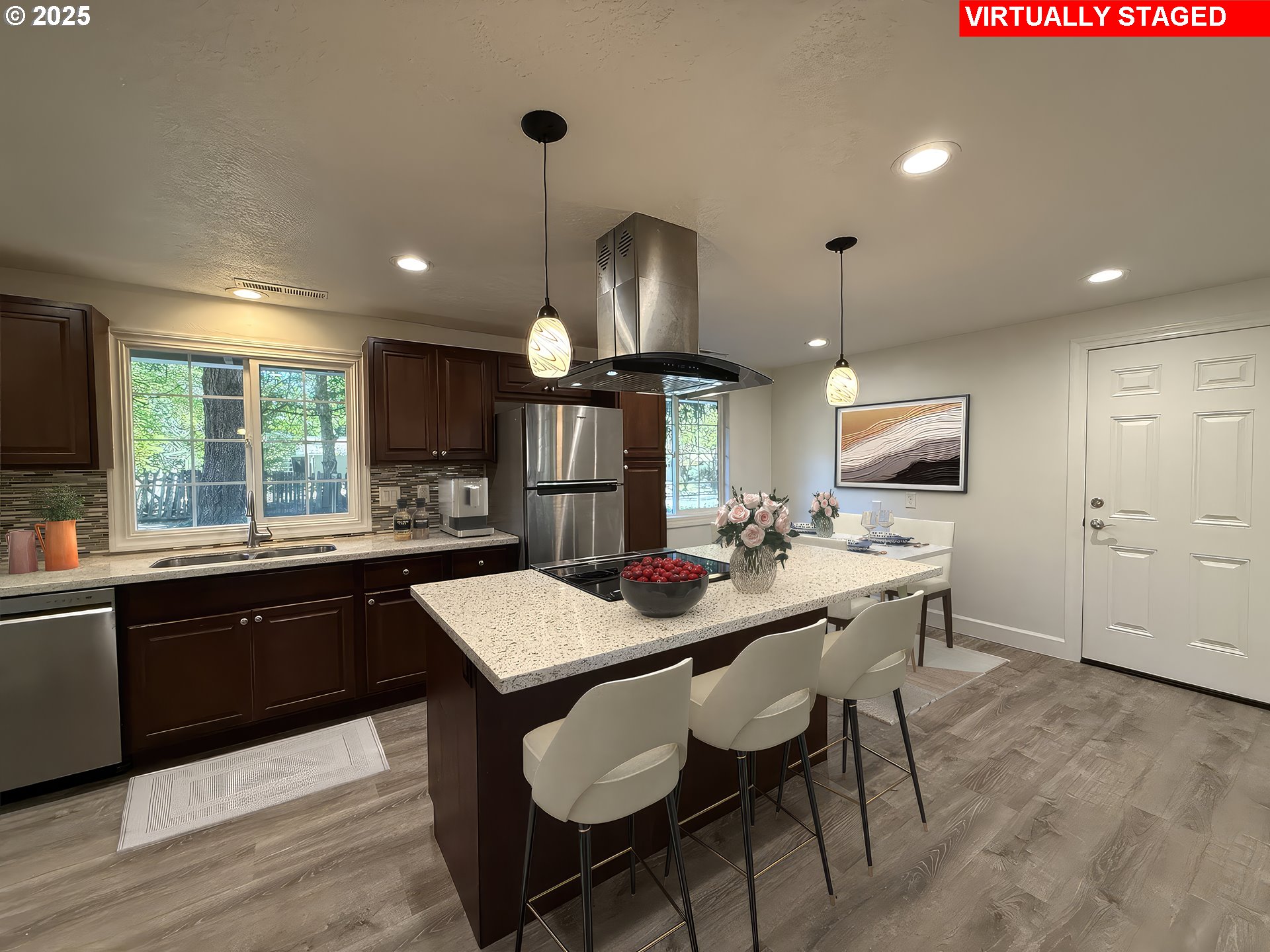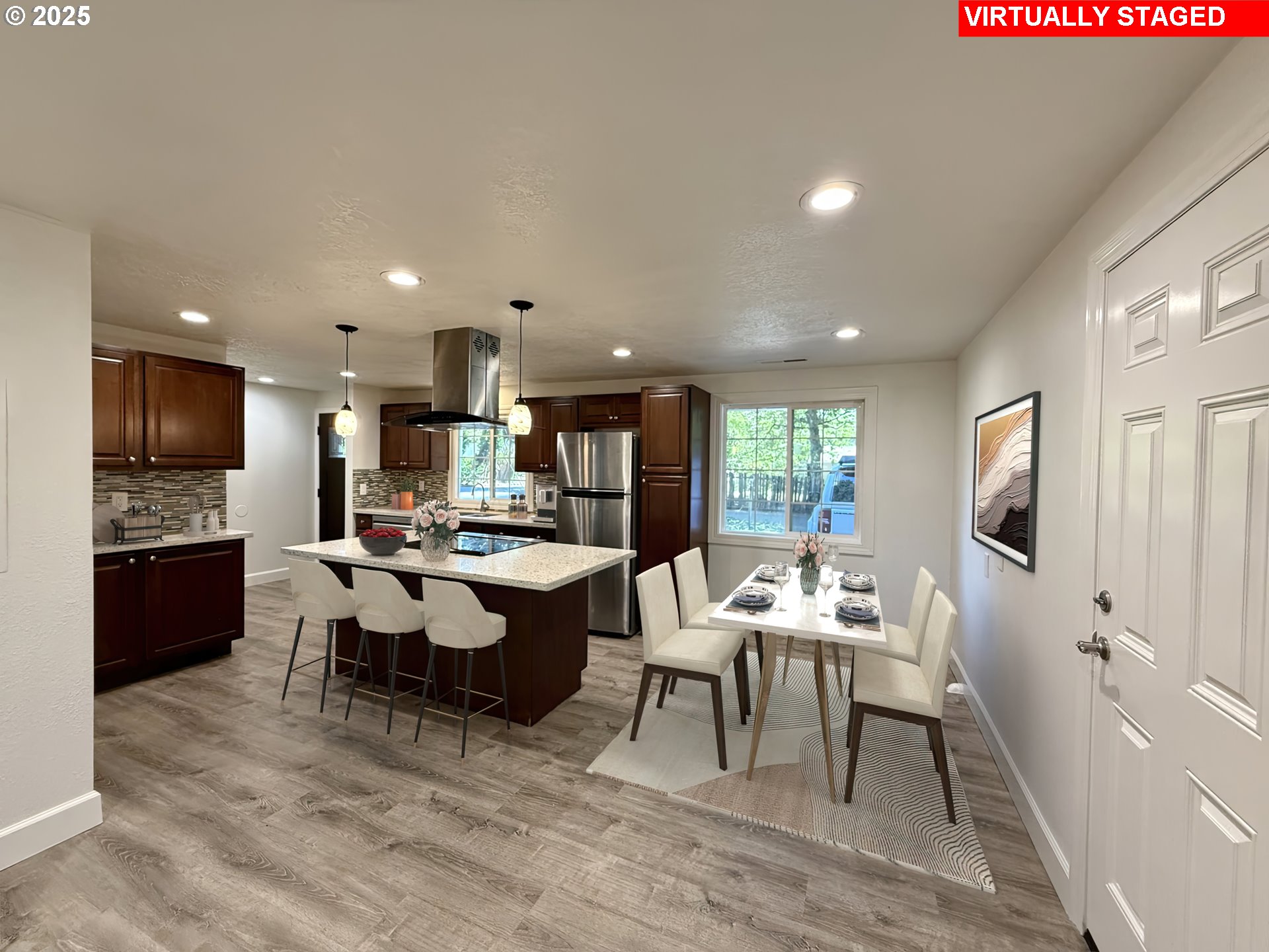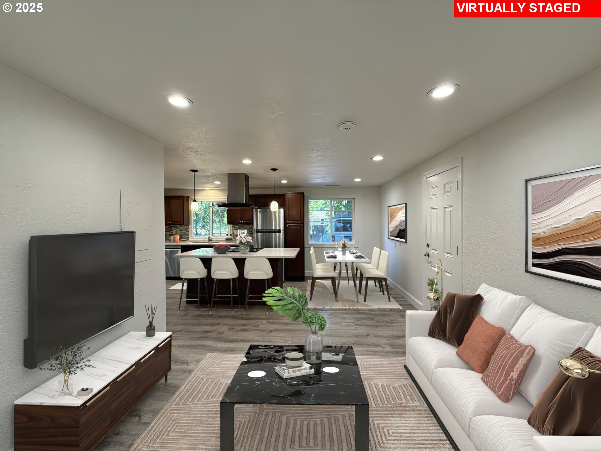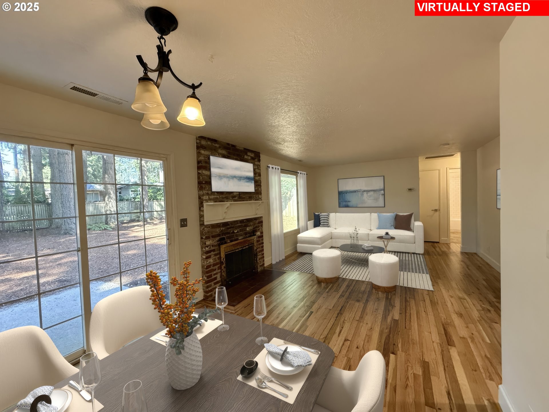 Charming one level ranch in the Rivergrove neighborhood waiting for your touches to make it yours! Cozy living room w/wood burning fireplace and sliding door to patio. The kitchen features S/S appliances, quartz, island w/seating & nook. Updated: HVAC, roof, kitchen and bathroom. Hardwood floors throughout & refinished 8-2025 and fresh interior paint 8-2025. The huge backyard is level & fenced. This one is move in ready. Enjoy all the amenities of Lake Oswego life at an affordable price point. Easy access to freeways, schools & shopping.WOW! Dont let this one pass you by!