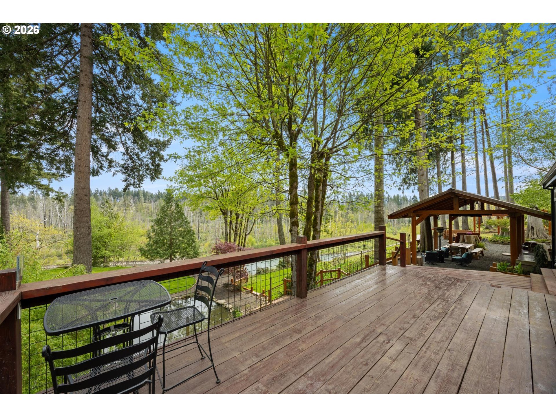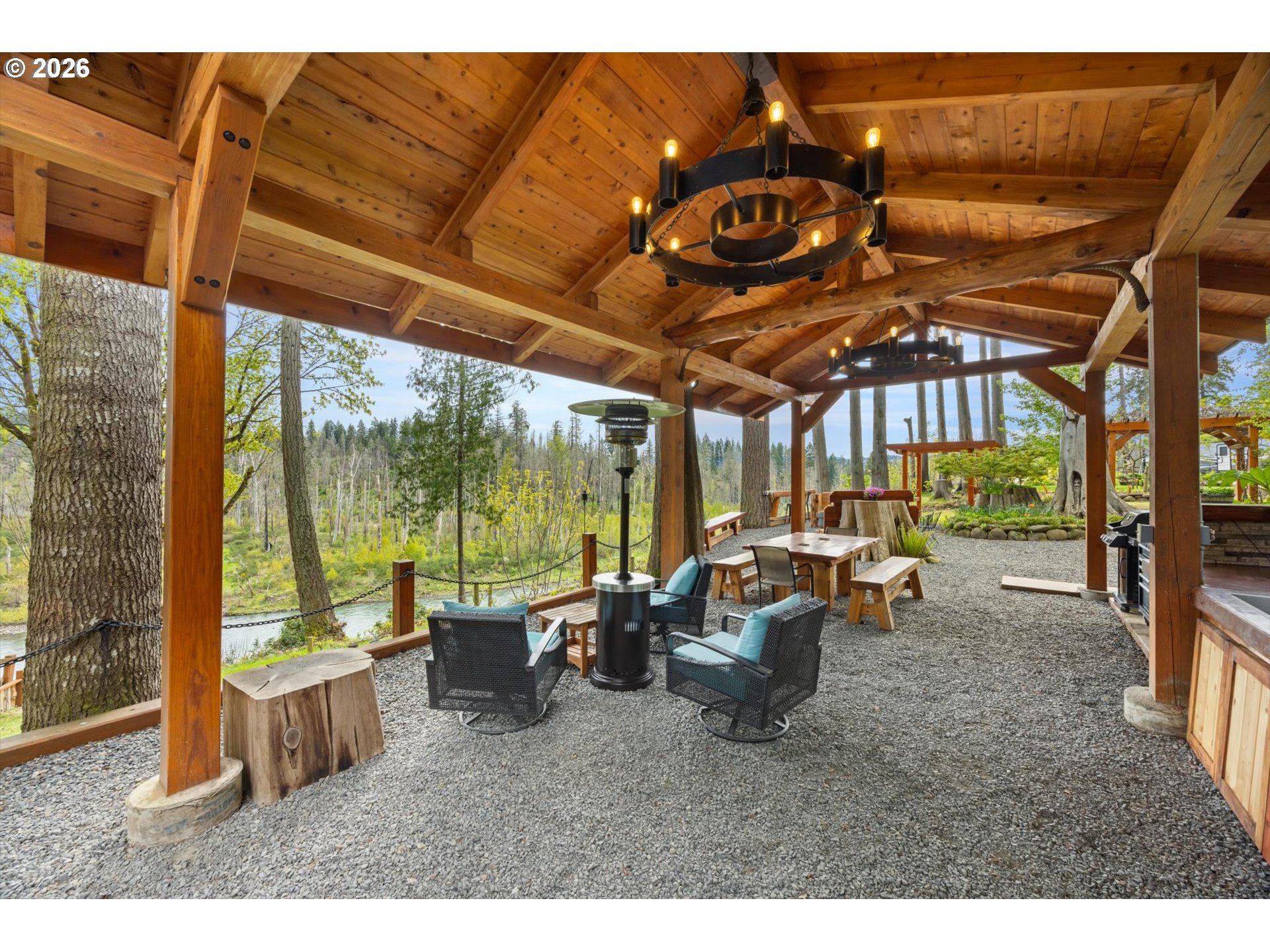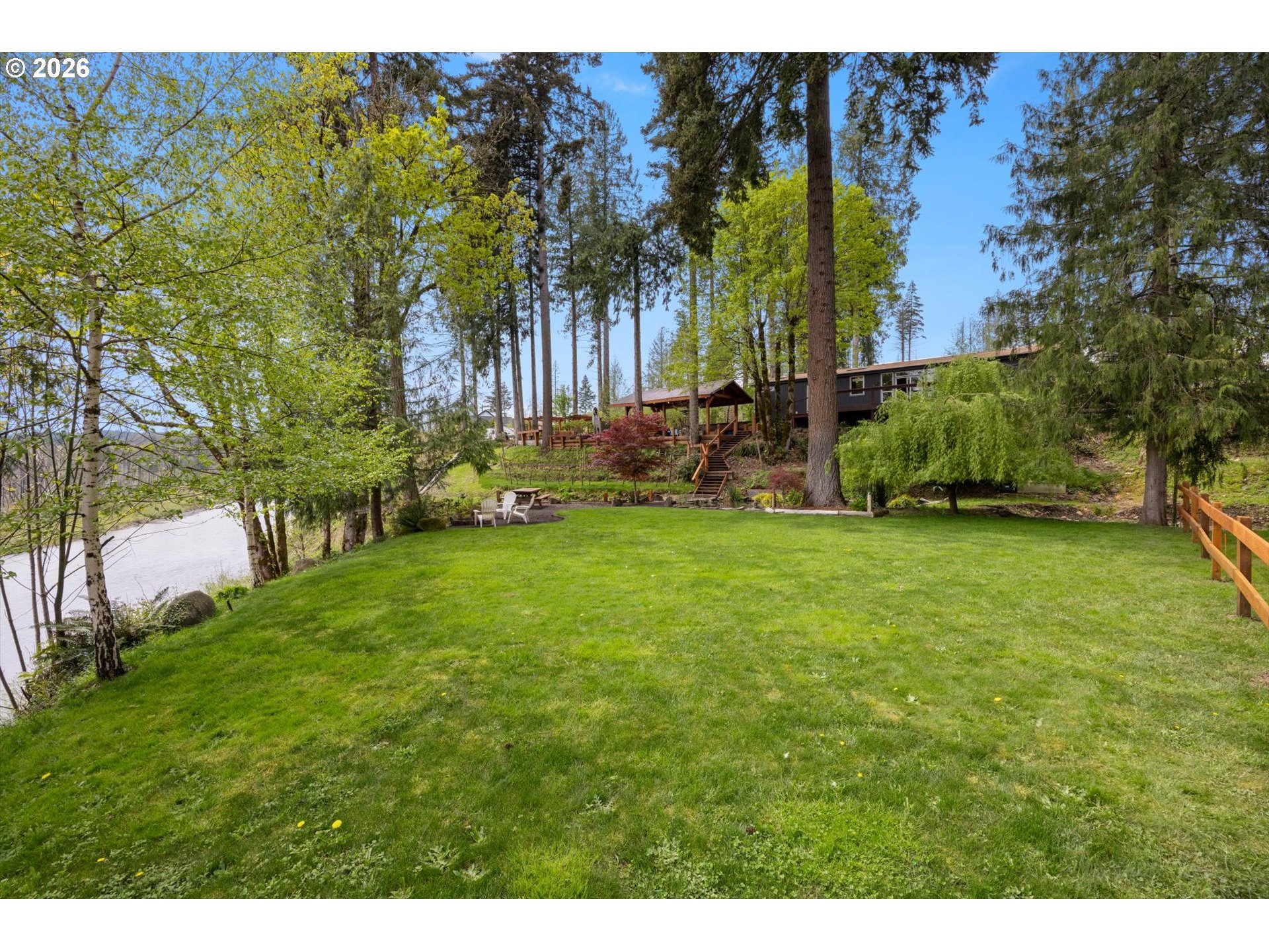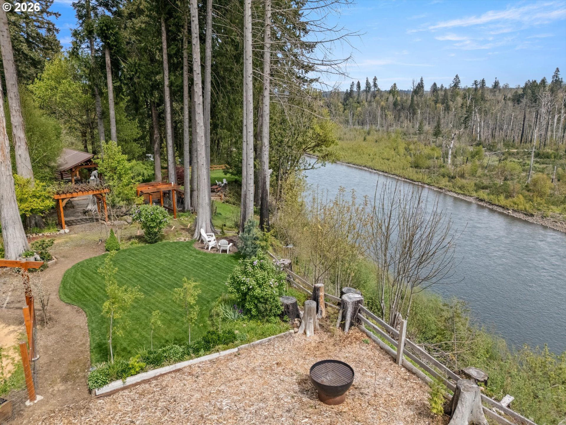 (503) 893-8874Positioned on a rare stretch of the Clackamas River with approximately 450 feet of frontage, this 2.7-acre riverfront home in Oregon City offers a unique blend of privacy, usable land, and direct access to one of the area’s most sought-after waterways. Ideal for buyers searching for Oregon City real estate with acreage, this property delivers a true Pacific Northwest lifestyle with space to spread out, entertain, and enjoy year-round outdoor living. The grounds are the focal point—featuring mature landscaping, terraced garden beds, established grapevines, and a peaceful pond—creating multiple gathering areas designed to capture river views, surrounding wildlife, and select sightlines toward Mount Hood. Thoughtfully improved for both everyday living and hosting, the property includes custom timber-framed structures such as a covered outdoor kitchen, bar area, and shaded seating spaces that extend the living experience well beyond the home itself. With direct river access, this acreage property is perfectly suited for fishing, boating, swimming, and outdoor recreation right from your backyard. Inside, the home offers a light-filled and functional layout with skylights, durable flooring throughout, and a central living space anchored by a cozy woodstove. The kitchen features a gas range, island, and eat bar, opening to a dining area with access to an elevated deck overlooking the land and river. The primary suite includes generous closet space and a walk-in shower. A 20x30 outbuilding provides flexibility for shop use, storage, or equipment, while a separate driveway offers additional access and future shop potential. This riverfront property also includes access to a community park and boat launch, along with a renewable agreement with the Oregon Fishing Club, making it an exceptional opportunity for buyers seeking a private, recreation-focused retreat with acreage in Oregon City.