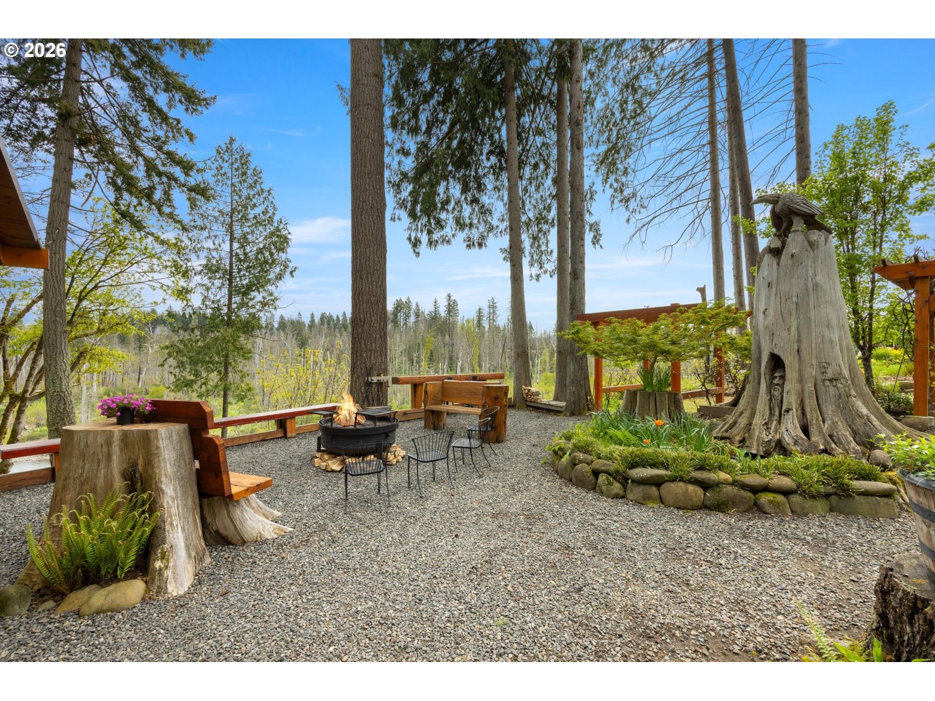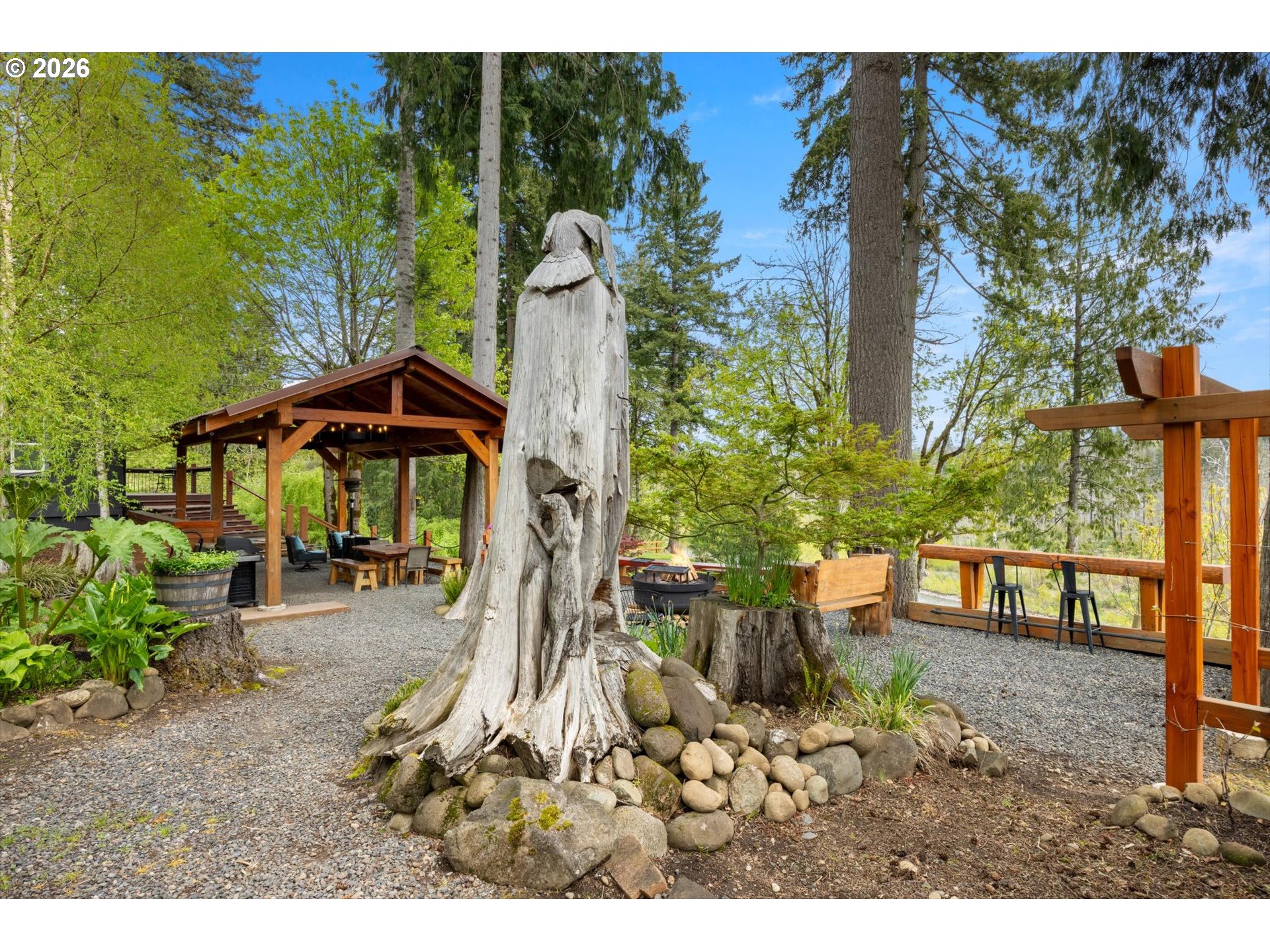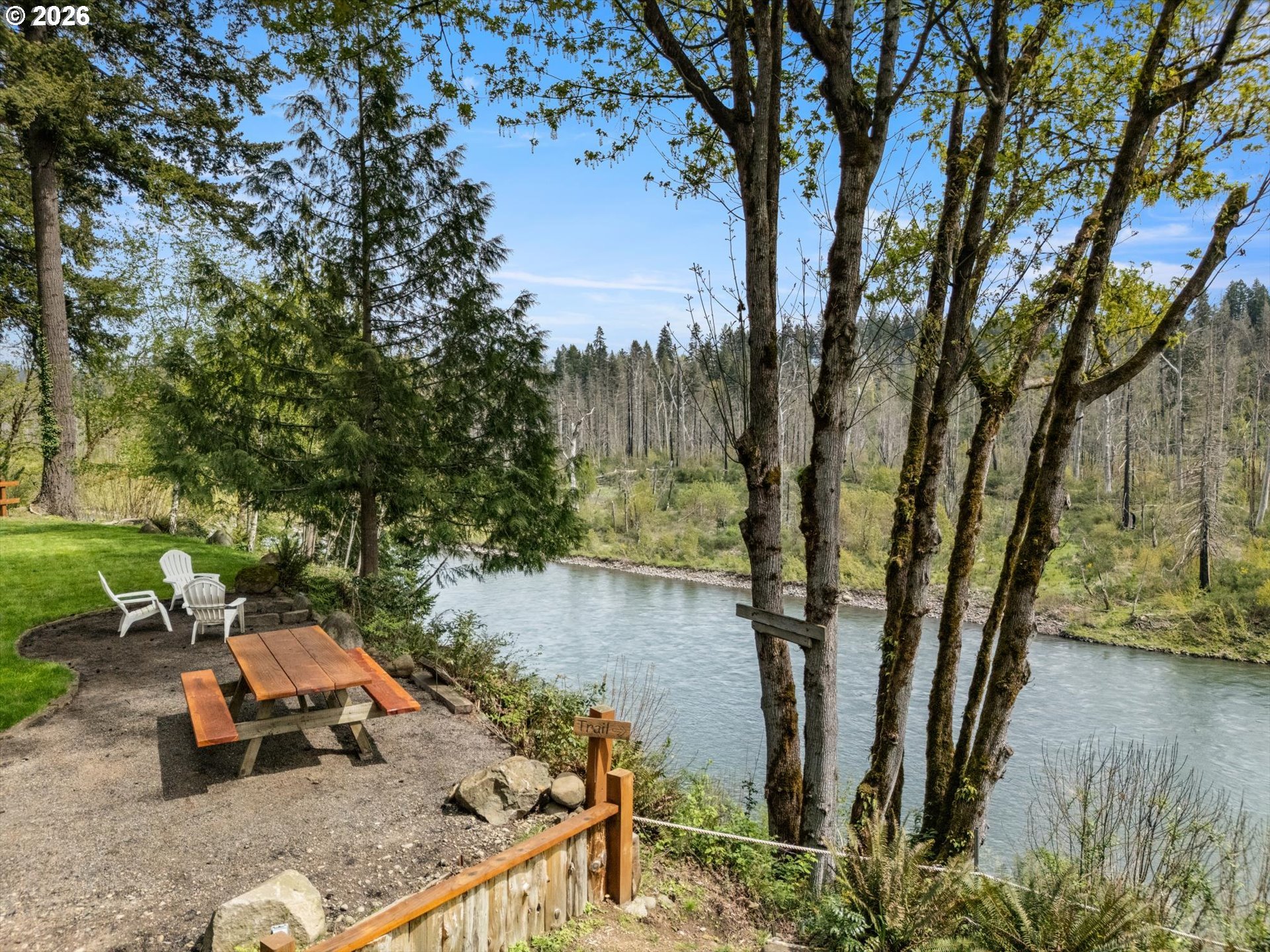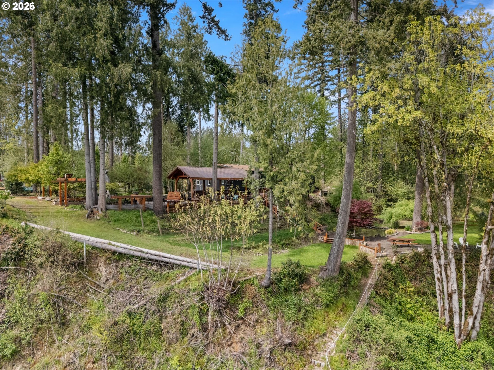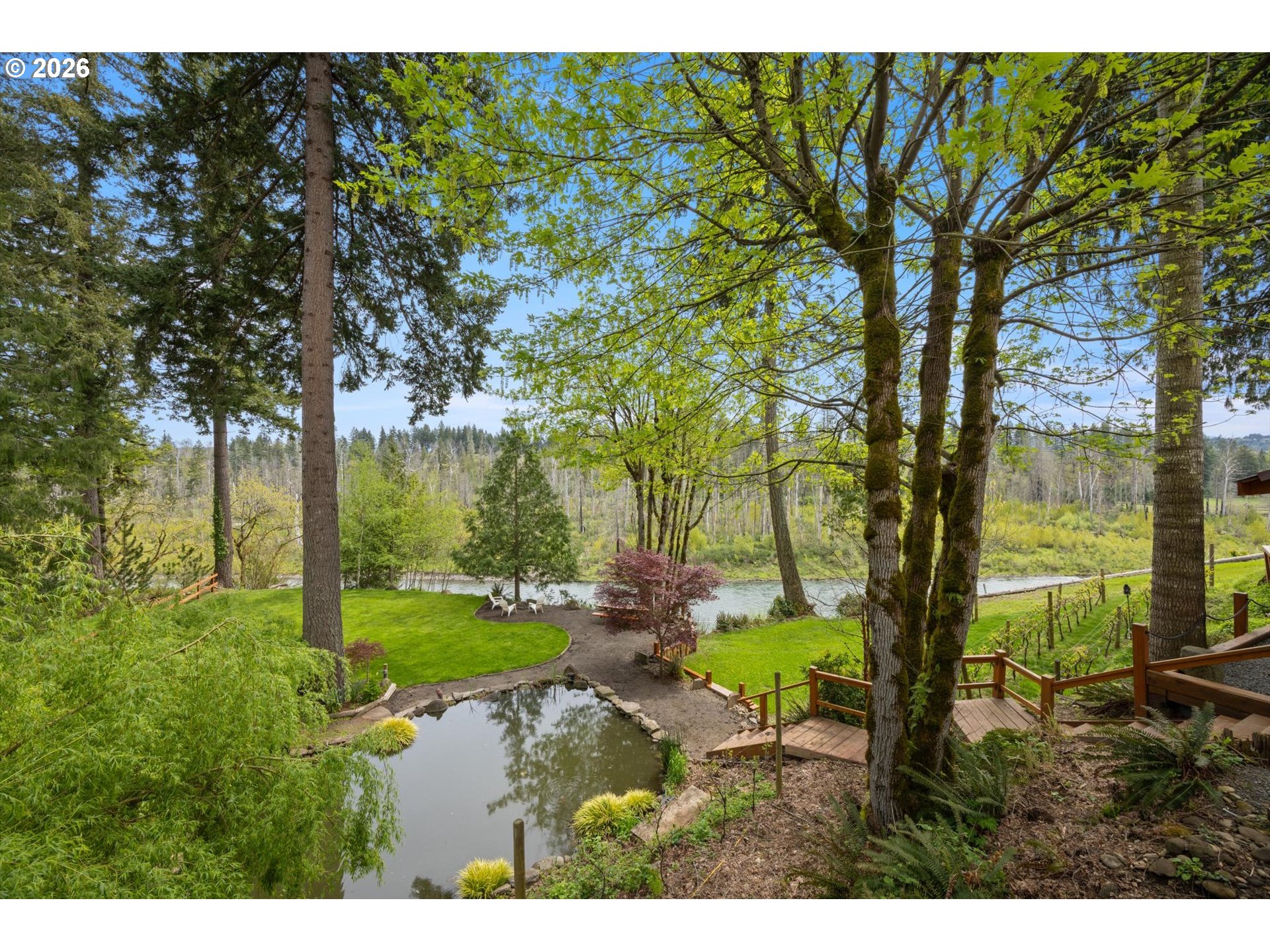 (503) 893-8874Positioned on a rare stretch of the Clackamas River with approximately 450 feet of frontage, this 2.7-acre riverfront home in Oregon City offers a unique blend of privacy, usable land, and direct access to one of the area’s most sought-after waterways. Ideal for buyers searching for Oregon City real estate with acreage, this property delivers a true Pacific Northwest lifestyle with space to spread out, entertain, and enjoy year-round outdoor living. The grounds are the focal point—featuring mature landscaping, terraced garden beds, established grapevines, and a peaceful pond—creating multiple gathering areas designed to capture river views, surrounding wildlife, and select sightlines toward Mount Hood. Thoughtfully improved for both everyday living and hosting, the property includes custom timber-framed structures such as a covered outdoor kitchen, bar area, and shaded seating spaces that extend the living experience well beyond the home itself. With direct river access, this acreage property is perfectly suited for fishing, boating, swimming, and outdoor recreation right from your backyard. Inside, the home offers a light-filled and functional layout with skylights, durable flooring throughout, and a central living space anchored by a cozy woodstove. The kitchen features a gas range, island, and eat bar, opening to a dining area with access to an elevated deck overlooking the land and river. The primary suite includes generous closet space and a walk-in shower. A 20x30 outbuilding provides flexibility for shop use, storage, or equipment, while a separate driveway offers additional access and future shop potential. This riverfront property also includes access to a community park and boat launch, along with a renewable agreement with the Oregon Fishing Club, making it an exceptional opportunity for buyers seeking a private, recreation-focused retreat with acreage in Oregon City.