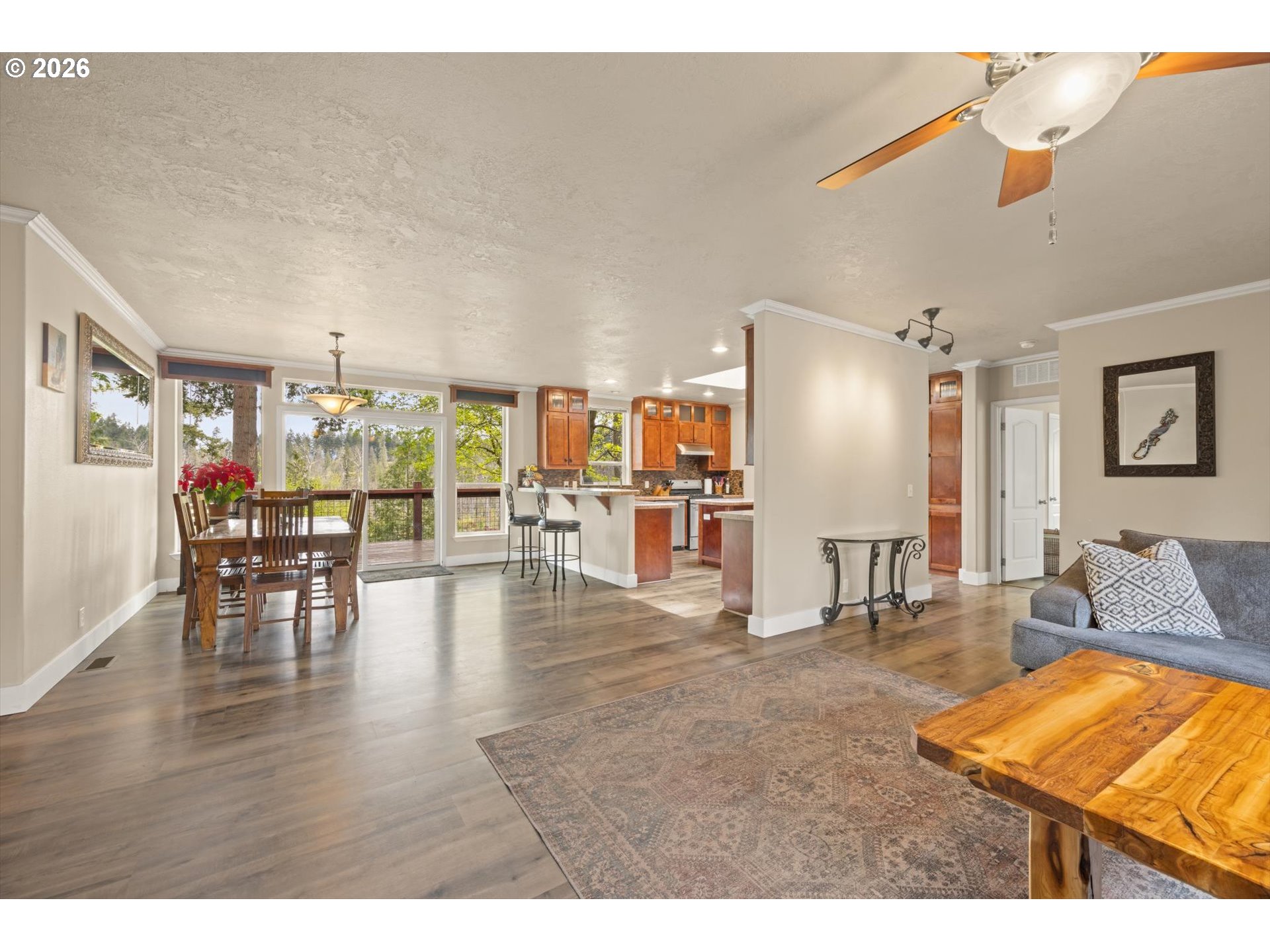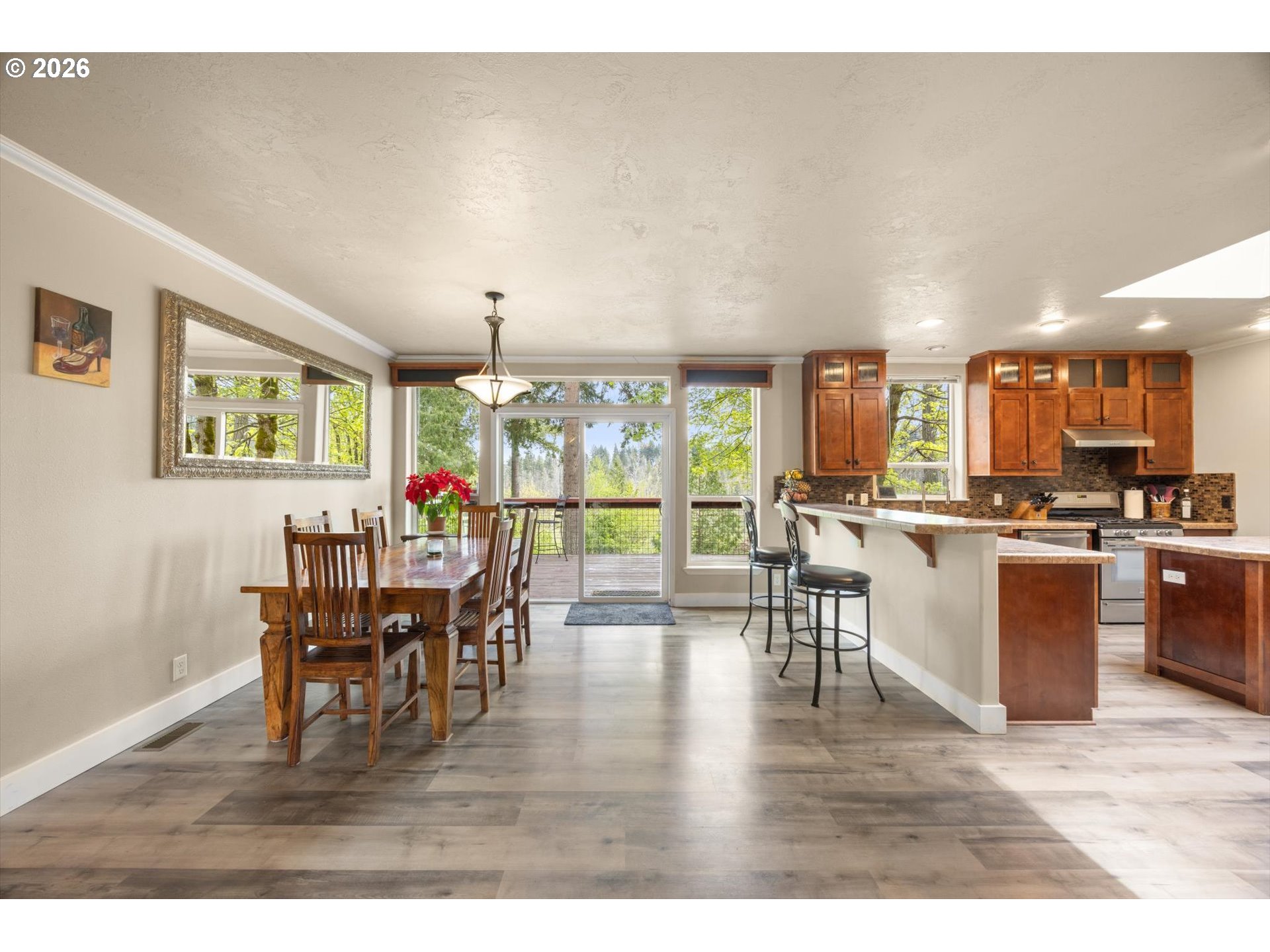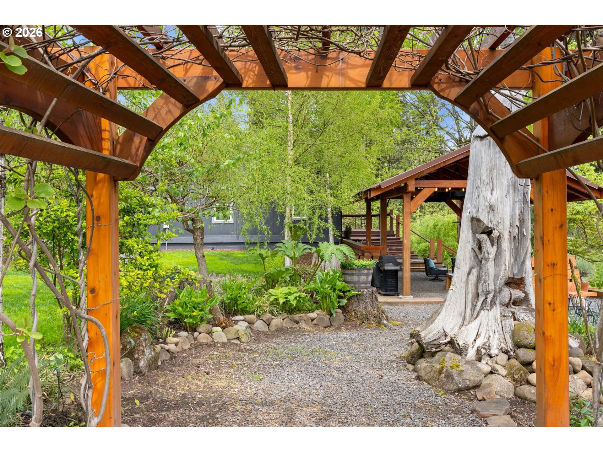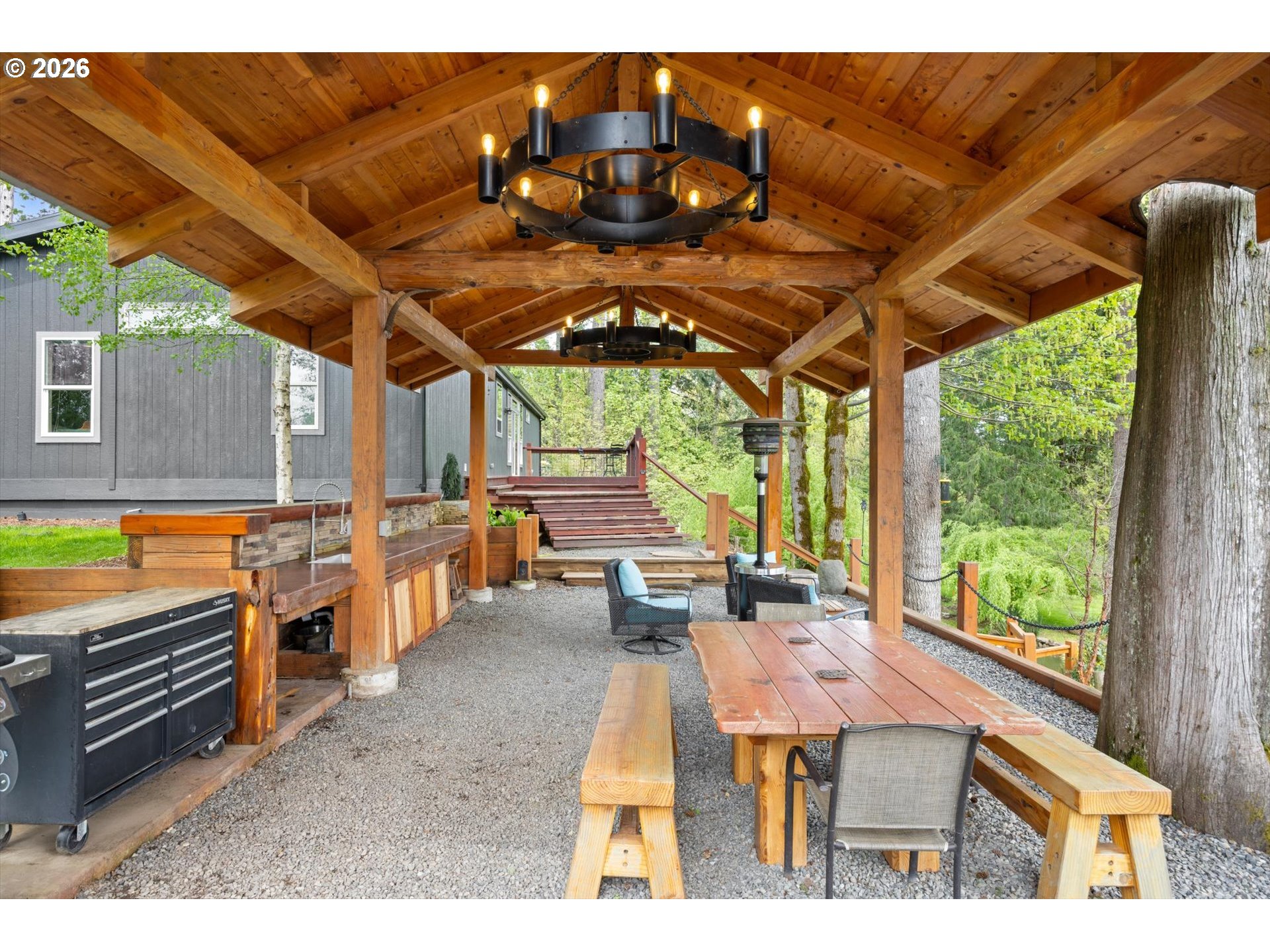 (503) 893-8874Positioned on a rare stretch of the Clackamas River with approximately 450 feet of frontage, this 2.7-acre riverfront home in Oregon City offers a unique blend of privacy, usable land, and direct access to one of the area’s most sought-after waterways. Ideal for buyers searching for Oregon City real estate with acreage, this property delivers a true Pacific Northwest lifestyle with space to spread out, entertain, and enjoy year-round outdoor living. The grounds are the focal point—featuring mature landscaping, terraced garden beds, established grapevines, and a peaceful pond—creating multiple gathering areas designed to capture river views, surrounding wildlife, and select sightlines toward Mount Hood. Thoughtfully improved for both everyday living and hosting, the property includes custom timber-framed structures such as a covered outdoor kitchen, bar area, and shaded seating spaces that extend the living experience well beyond the home itself. With direct river access, this acreage property is perfectly suited for fishing, boating, swimming, and outdoor recreation right from your backyard. Inside, the home offers a light-filled and functional layout with skylights, durable flooring throughout, and a central living space anchored by a cozy woodstove. The kitchen features a gas range, island, and eat bar, opening to a dining area with access to an elevated deck overlooking the land and river. The primary suite includes generous closet space and a walk-in shower. A 20x30 outbuilding provides flexibility for shop use, storage, or equipment, while a separate driveway offers additional access and future shop potential. This riverfront property also includes access to a community park and boat launch, along with a renewable agreement with the Oregon Fishing Club, making it an exceptional opportunity for buyers seeking a private, recreation-focused retreat with acreage in Oregon City.