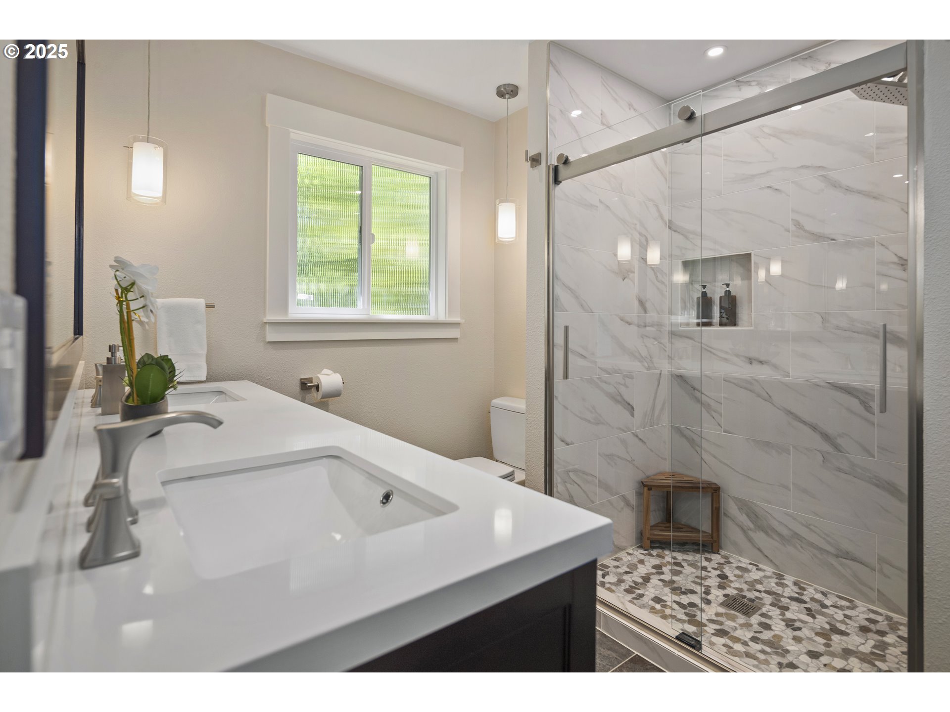 (503) 893-8874Lake Oswego Daylight Ranch – Remodeled to Perfection. This exquisitely updated 3-bedroom, 3-bath daylight ranch offers 3,408 sq ft of refined living space with exceptional attention to detail throughout. Thoughtful upgrades and luxurious finishes create a home that blends style, comfort, and functionality. The gourmet kitchen features custom cherry cabinets, slide-out shelving, slab granite counters, 6-burner cooktop, double convection ovens and microwave, ultra-quiet exhaust system, 3 dishwashers, fireplace, elegant entertainment lighting. The kitchen opens to a bright family room with gas fireplace, expansive windows and patio door opening to a large deck. The main level includes the primary and second bedrooms, each featuring fully updated baths, hardwood floors and a stairway leading to the lower level with a spacious family room, custom-built bar, insulated wine cellar, third bedroom with a remodeled full bath, versatile media/exercise room, and a gas fireplace perfect for cozy gatherings. Recent 2024/2025 updates include: new decking on two decks, fully updated bathrooms with quartz counters, tile floors, new vanities, and tile-bottom showers, new roof, gutters, new lower level windows and patio doors, solid core interior doors, baseboards & trim, and new exterior paint. The large, wooded backyard offers privacy, serenity, and outdoor enjoyment. Move-in ready, this Lake Oswego daylight ranch embodies timeless craftsmanship and modern luxury, offering versatile living spaces and sophisticated upgrades throughout. Every detail has been carefully curated, from the gourmet kitchen and beautifully appointed fireplaces to the fully updated bathrooms and resurfaced decks. Situated within the highly regarded Lake Oswego school district and the Greentree Pool boundary, this extensively remodeled home presents a rare opportunity to enjoy elegance, comfort, and functionality—perfect for entertaining or everyday living in one of Lake Oswego’s most desirable neighborhoods.
