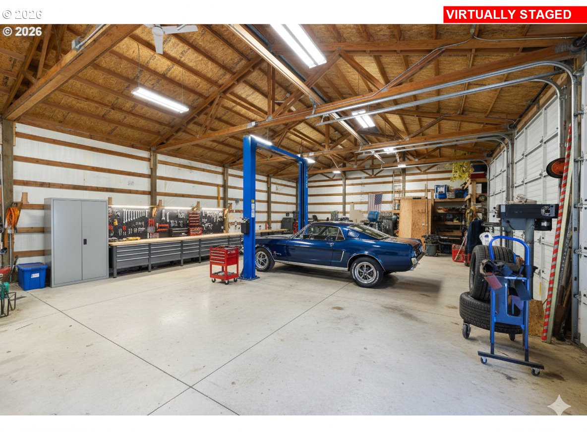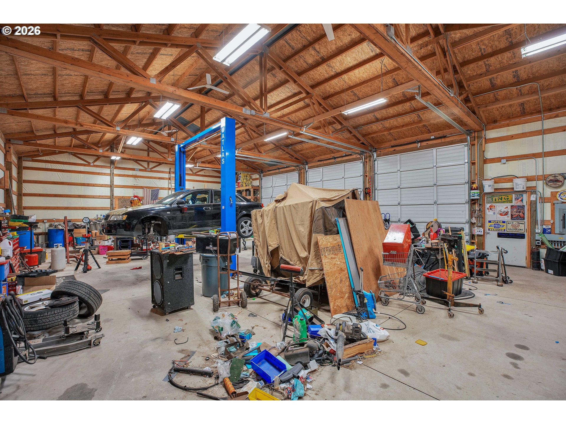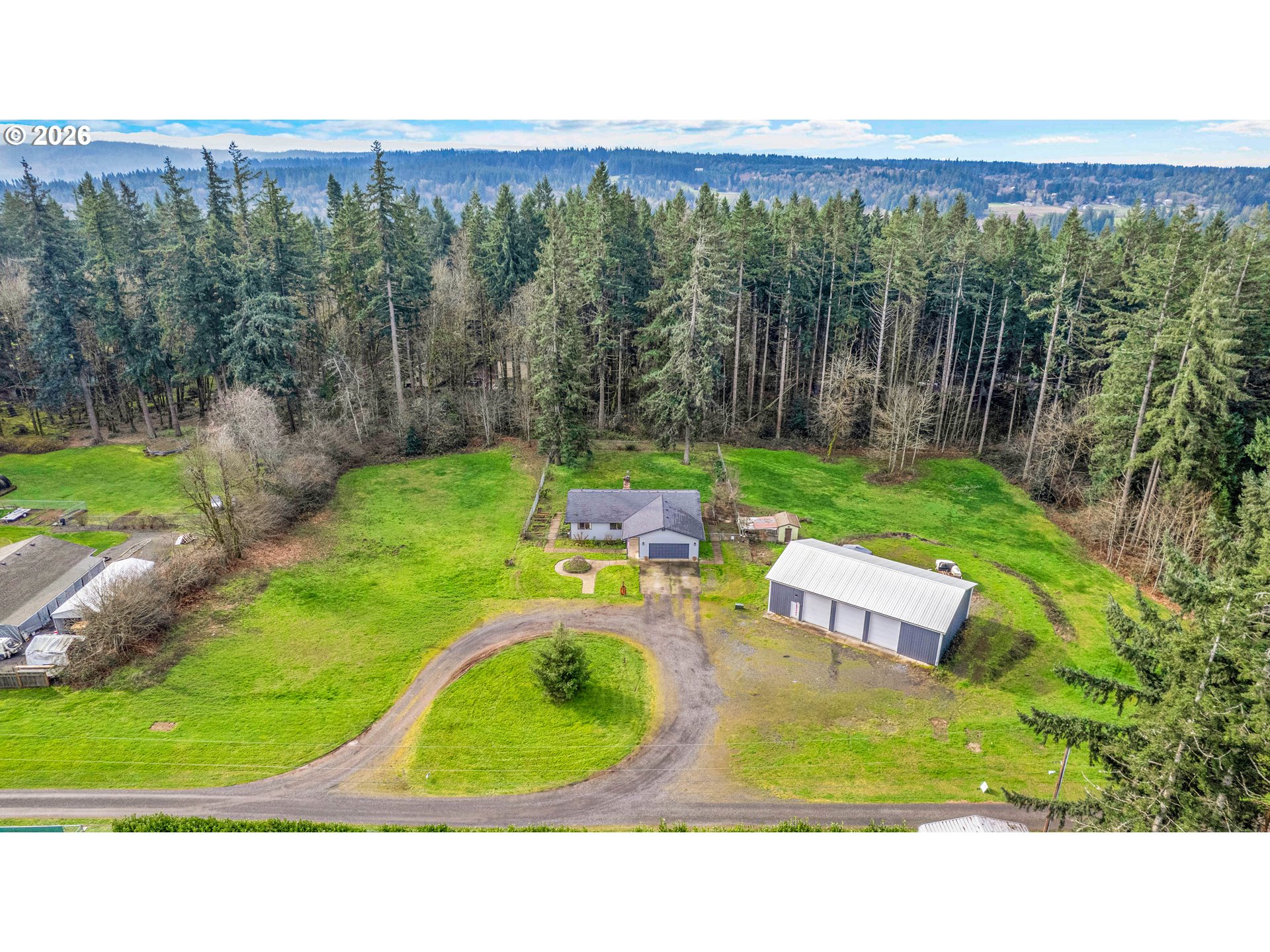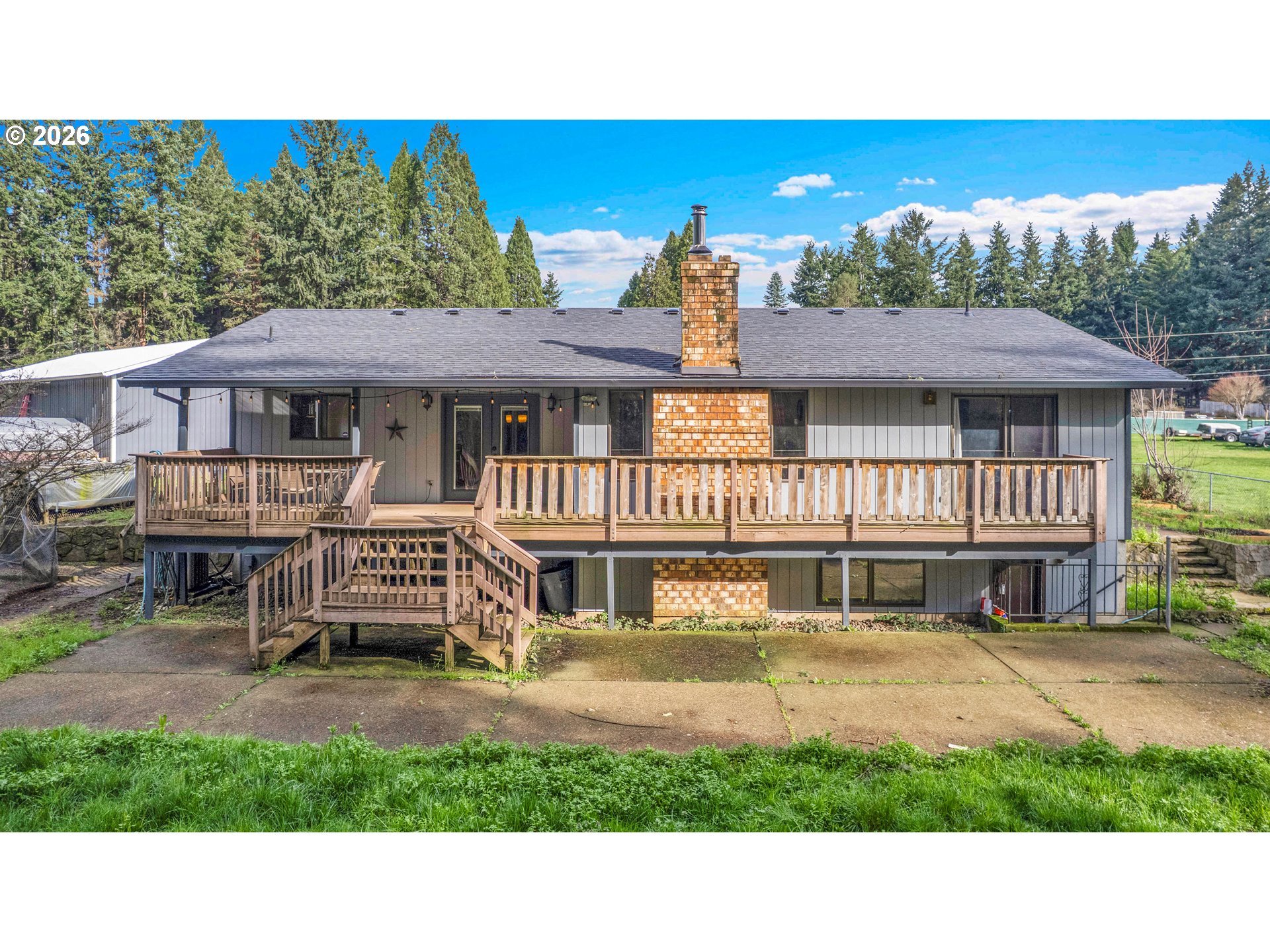 Tucked away on three secluded acres in the desirable Redland area of Oregon City, this spacious ranch-style home offers a rare blend of peaceful rural living and exceptional utility. Boasting over 3,000 square feet of versatile space, the residence features a wide-open floor plan on the main level (1,725 sq. ft. est.) and a full, partially finished basement (1,300 sq. ft.) that presents a perfect opportunity for a future ADU, separate living quarters, or instant equity through finishing.The home is designed for seamless indoor-outdoor living, with an expansive deck spanning nearly the entire length of the house. This elevated retreat leads down to a private rear patio and a massive backyard, completely shielded from neighbors. Interior highlights include a functional kitchen with an eating area and pantry, along with a large utility room for everyday convenience.For those with a vision for a "live/work" lifestyle, the property is a dream. In addition to the oversized two-car garage, the estate features a massive 36' x 60' workshop equipped with a vehicle lift (rated up to 10,000 lbs), offering unparalleled space for hobbies, mechanical work, or a home business.
