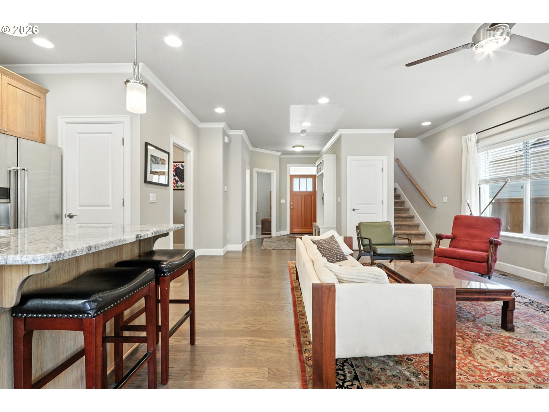 (503) 893-8874Come see this bright and spacious 4-bedroom, 3-bath home in Oregon City. The main level has high ceilings, an open kitchen with granite countertops, stainless steel appliances, an island, and lots of storage. There’s also a bedroom and a full bath on the main floor, great for guests or an office.Upstairs, the primary suite features vaulted ceilings, a walk-in closet, and a private bath. Two additional bedrooms share a convenient Jack and Jill bathroom.The fully fenced backyard has a new awning and patio cover, plus a sprinkler system for easy maintenance. Laundry is located on the main floor. A detached garage with alley access makes parking simple. This move-in-ready home is close to parks, schools, and shopping.