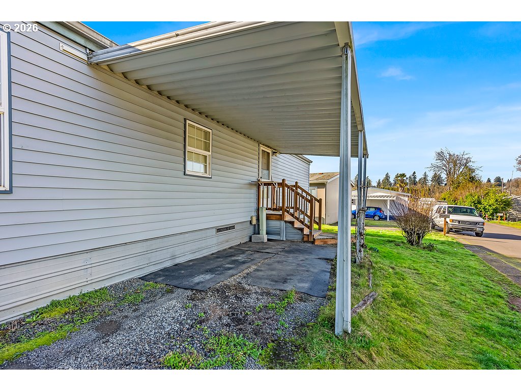 Welcome to this charming 2 bedroom, 1 bath, 672sqft single wide mobile home in an all-ages community. Tucked away in a secluded back corner of the park, this home offers added privacy and a quiet setting that’s hard to find. Inside, you’ll find a spacious living room with plenty of room to relax or entertain, a full kitchen with ample cabinet space, 2 bedrooms, full bath and the convenience of in-home laundry included. The layout is functional and inviting, making it easy to move right in. While the home is fully livable as-is, it could benefit from some light cosmetic repairs; fresh paint, new flooring, and minor updates that creates an excellent opportunity for instant equity for the next owner willing to put in a little work. The community features affordable lot rent and is centrally located close to freeway access, shopping, schools, and next to the beautiful Willamette River. Space rent is $895/month.