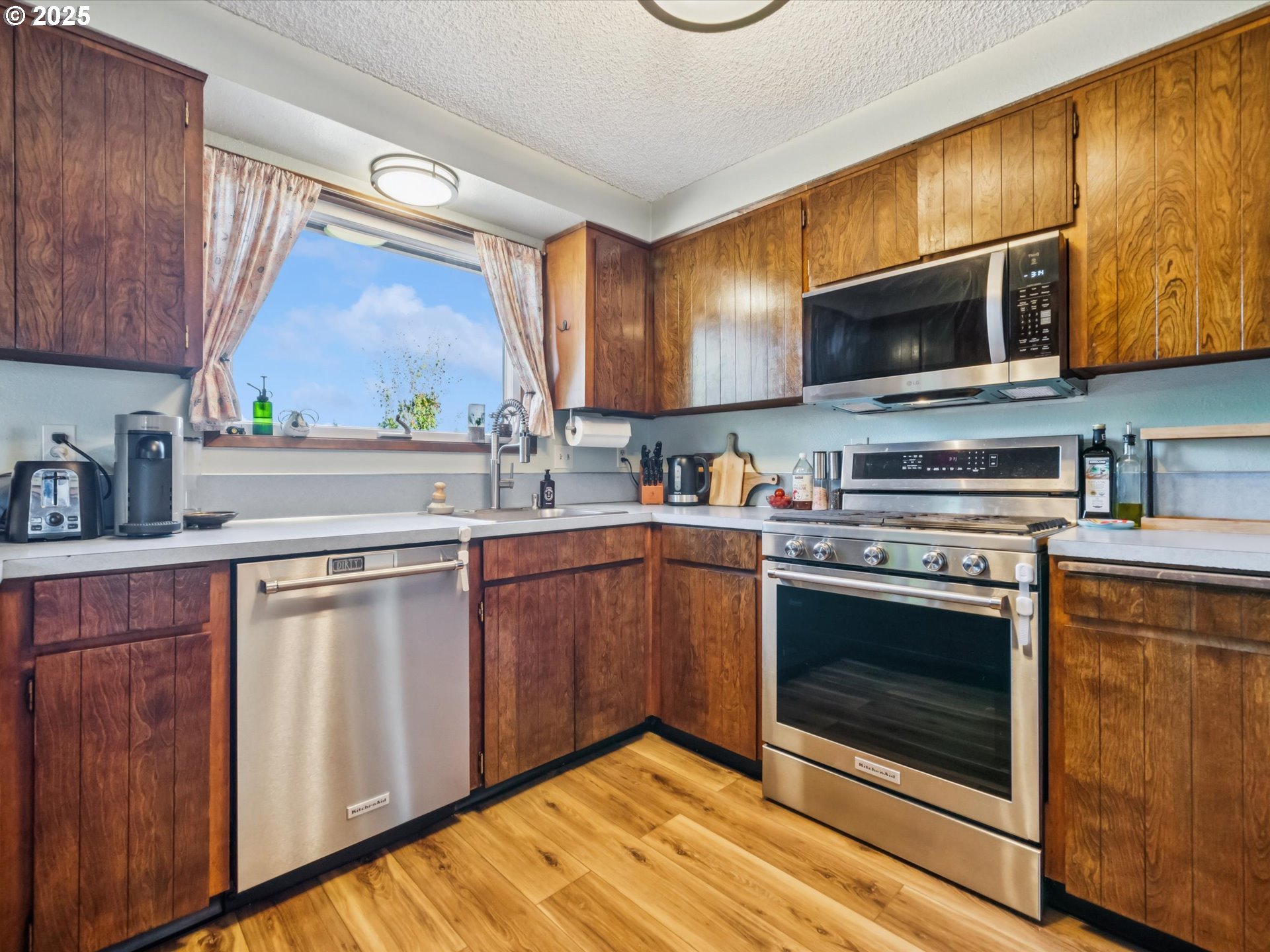 (503) 893-8874Beautifully Renovated Split-Level on a Spacious Lot! Open House Sunday 10-12pm This well maintained home features an opened up kitchen with stainless steel appliances, laminate flooring, and access to the renovated deck with garden views. Cozy living room with wood burning fireplace and large windows overlooking trees and the park. Downstairs offers a large bonus room with access to the covered patio and includes another fireplace, new flooring, and a recently renovated laundry room/bathroom with built in cabinets and a fully tiled shower.Enjoy the oversized 2 car garage with new doors, new opener, built-in cabinets with sink, and workbench. Additional upgrades include a tankless water heater and upgraded below-slab sanitary drain system. The fully fenced backyard has RV parking and includes a large garden shed, wood storage, new retaining wall, and a fenced hobby garden with raised garden beds and built-in irrigation.Great neighborhood with park across the street, Chapin Park within walking distance, and top rated schools just minutes away!