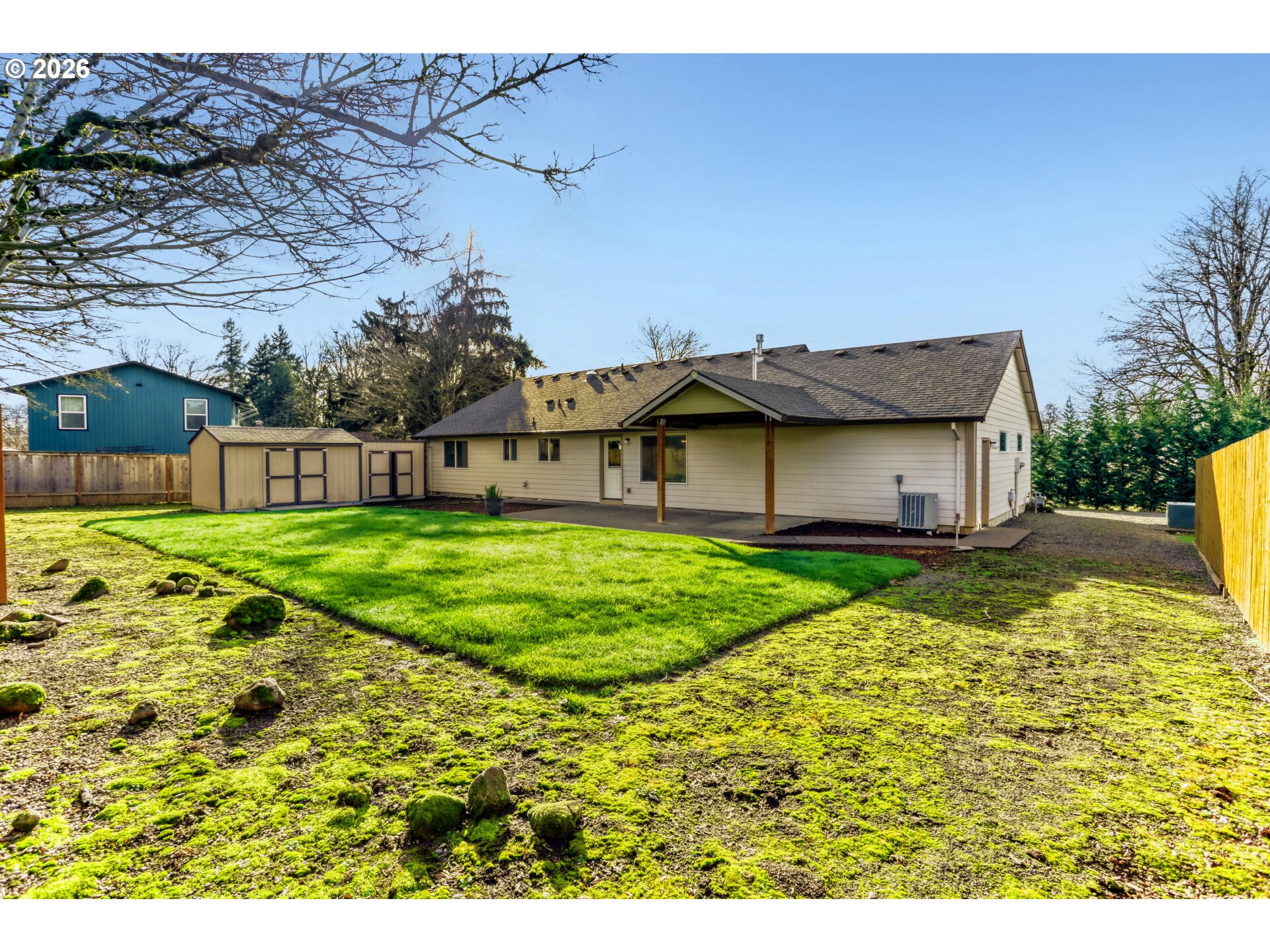 Immaculate Single-Level Home on a 1/4 Acre in Oregon City~Built in 2013, this beautifully maintained 3-bedroom, 2-bath home sits on a ¼-acre lot and offers the perfect blend of modern construction, functional space, and pride of ownership. Designed with 2×6 construction, the home features an open floor plan, vaulted ceilings, and abundant natural light throughout.~The kitchen and living areas flow seamlessly—ideal for everyday living and entertaining—while the private primary suite provides comfort and separation from the secondary bedrooms. The home has never had pets, reflecting its exceptional condition.~Outdoor living shines with a covered patio and expansive yard, plus RV parking, two storage sheds, and a spacious 22' × 29' garage—perfect for vehicles, hobbies, workshop or additional storage.Additional highlights include: Heat Pump, central A/C, 1,704 sq ft of living space, Quiet rural feel with convenient access to Oregon City amenities, Ample space for toys, tools, and future possibilities. This beautifully landscaped, move-in-ready property offers space, quality construction, and versatility.