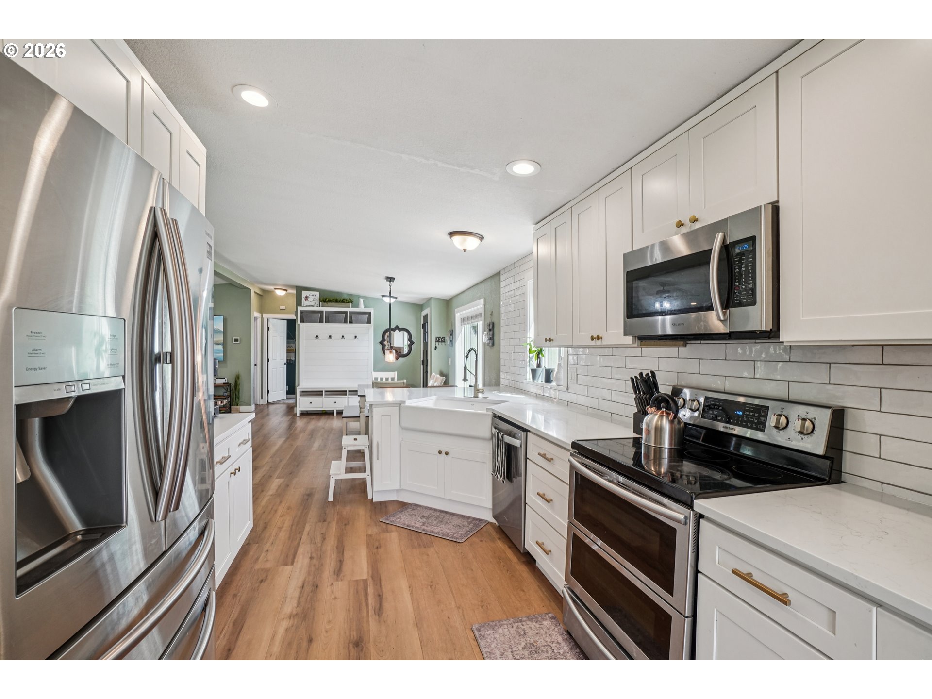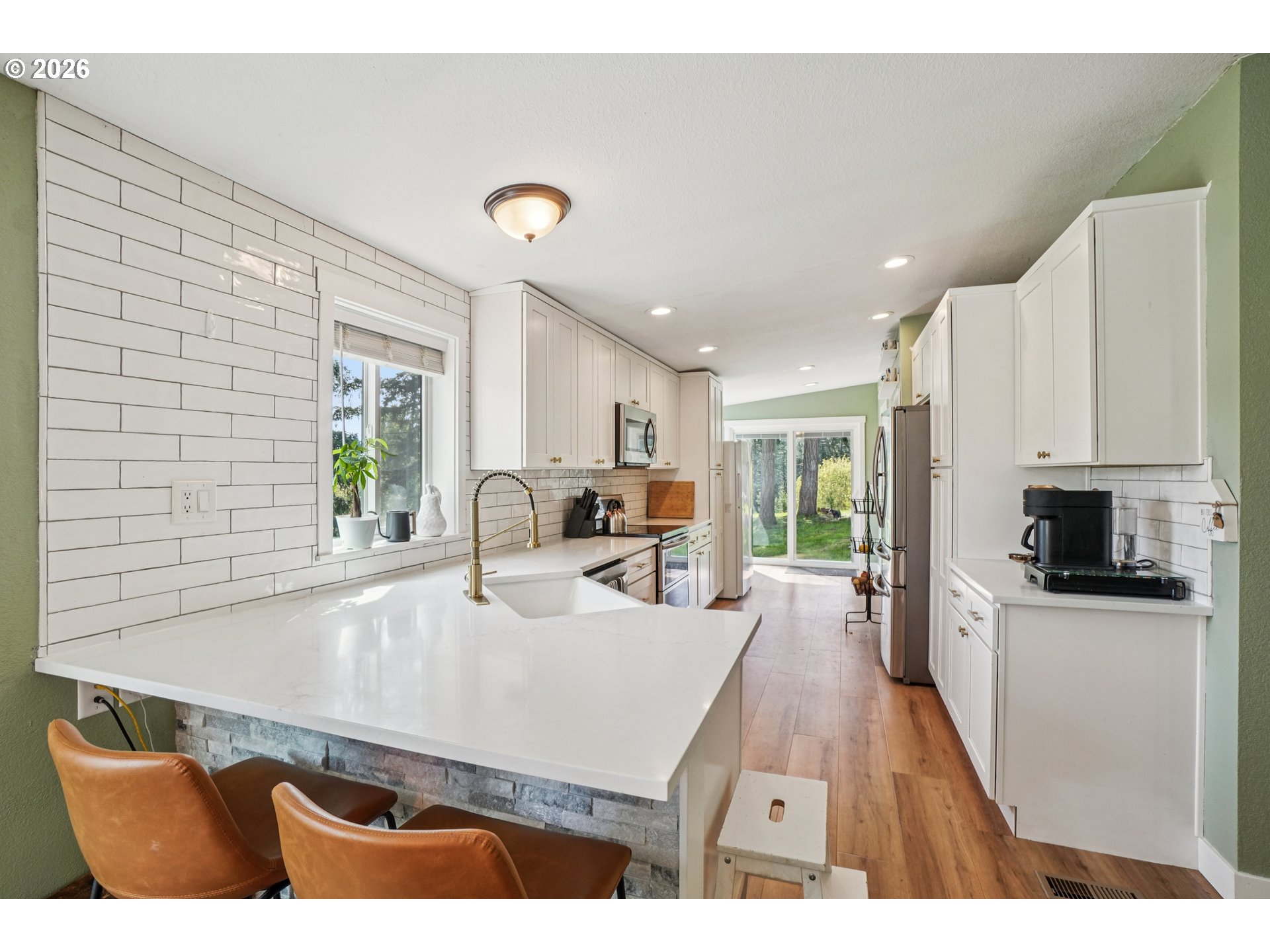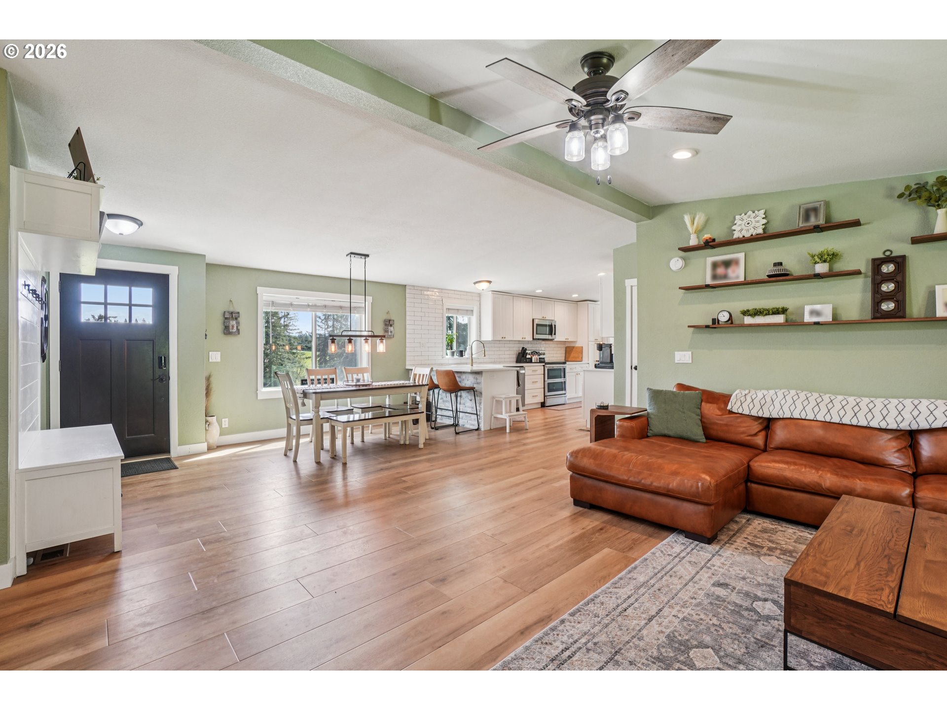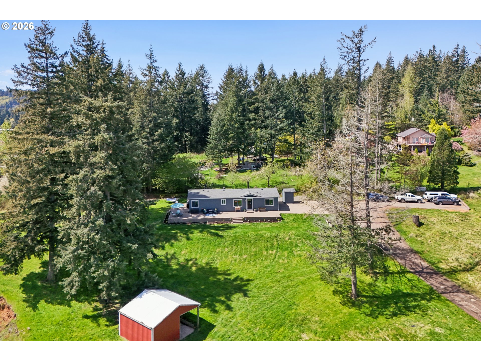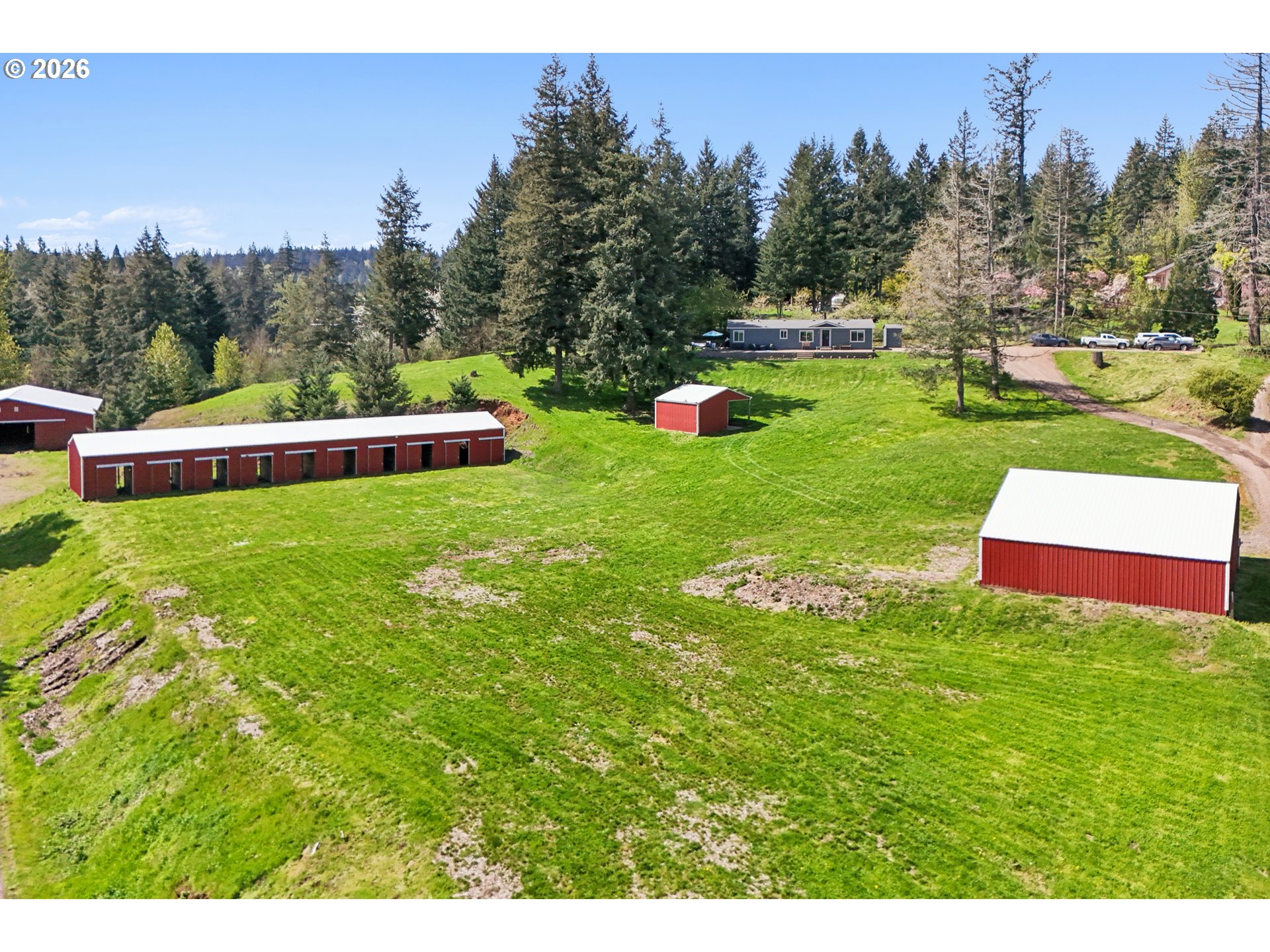 Extremely rare 5 acre horse property with views, updates, and all the outbuildings you'll need! Serene and private feel yet minutes away from Oregon City. Home has been completed remodeled with new flooring, siding, windows, electrical, paint, water heater and more. Updated kitchen with new cabinets, quartz counters, trim, fixtures, and stainless steel appliances. Fantastic primary suite with walk-in shower, double vanities, and soaking tub. Vaulted ceilings in the living room with cozy woodstove. Newer roof and new huge concrete patio wrapping around half the home. A horse owner's dream with an indoor 72X72 arena with 4 stalls, wash rack, and tack room. An additional 10 stall barn, chicken coop, plus another large detached shop. Tons of parking with parking area near main home and large additional parking down by the arena, plenty of space for RV and boat parking. This property has been thoughtfully updated and upgraded, absolutely a must see!