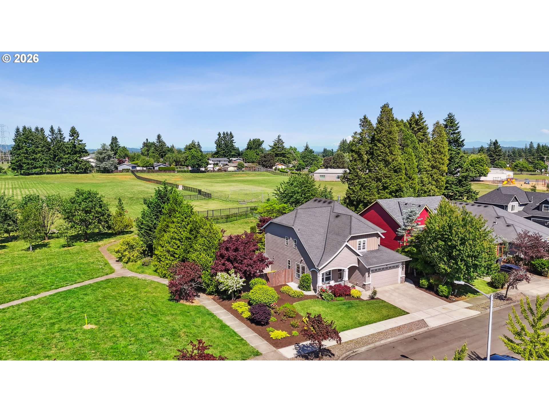 There's nothing else like this home! Tucked away on a private lot in one of Oregon City’s most desirable neighborhoods, this beautifully maintained 3 bedroom, 2.5 bathroom craftsman home offers a unique blend of privacy, charm and flexible living space. With only one neighbor and green space on the other side, plus a backyard that borders an elementary school, this home is a true suburban sanctuary! It has a darling front porch and a rose-filled front yard inviting you inside. The main floor has hardwood floors and a flexible room at the entry that's perfect for a home office, den, or playroom. The open-concept kitchen features stainless steel gas appliances, rich wood cabinetry, an island and a spacious pantry for ample storage. The adjoining dining space opens to the backyard through patio doors, while the expansive living room has tall ceilings, natural light, custom built-ins and a cozy gas fireplace. Upstairs, you'll find three bedrooms, two full bathrooms and a huge bonus room- ideal as a media room or additional living space! The primary suite is a peaceful retreat with a large window, a jetted tub, dual vanities, a walk-in shower, and a generous walk-in closet. The large upstairs laundry room has a sink and built-in storage making laundry so convenient. Step outside to your private backyard! It's fully fenced with mature landscaping, raised garden beds with a water drip system, a large tool shed and a patio perfect for entertaining or relaxing. The privacy this lot offers is hard to find and rare in the suburbs! An oversized garage adds extra storage and utility space, making this home as practical as it is beautiful. THIS IS A MUST SEE!