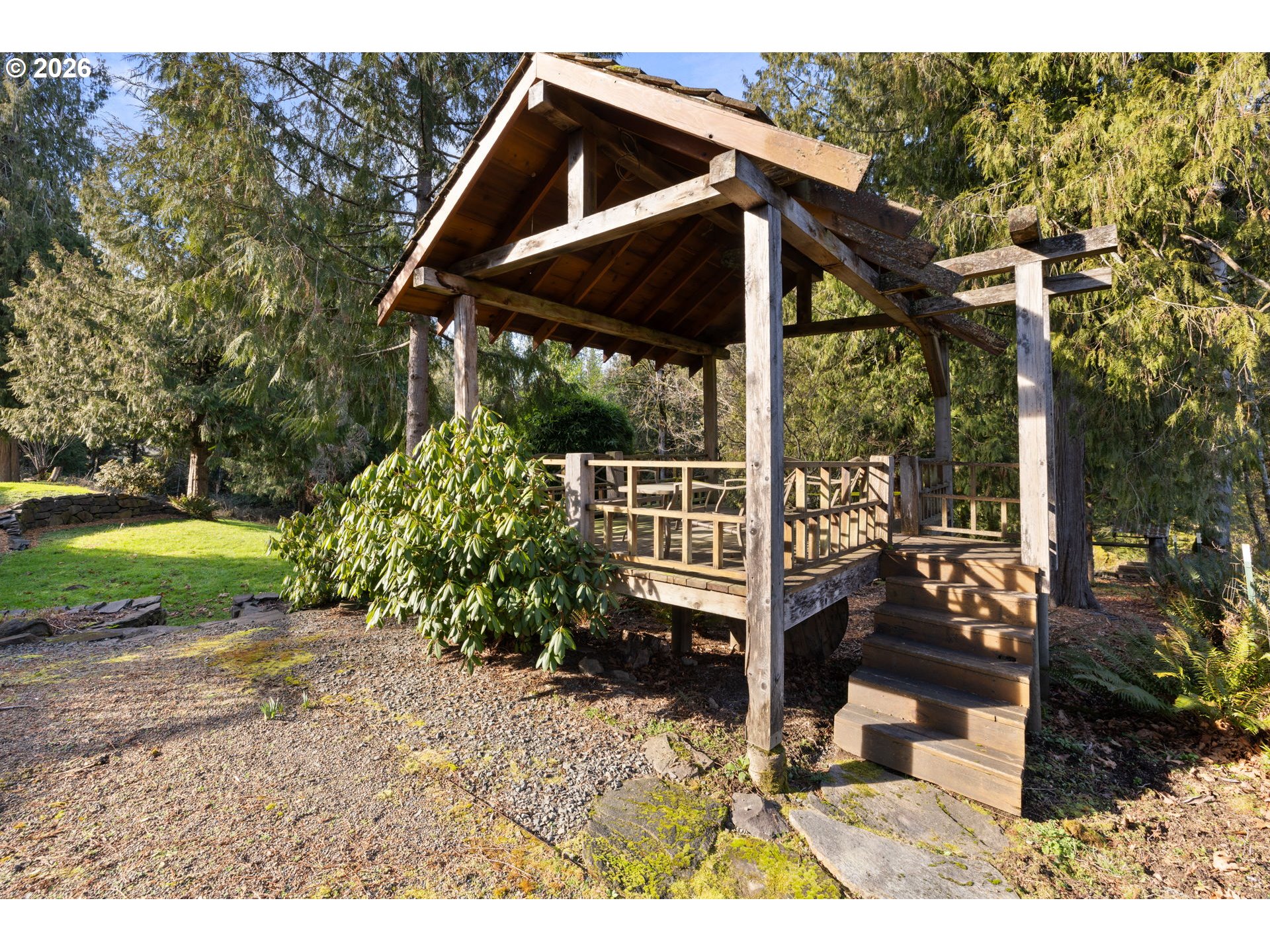 Deck, Gazebo, Outbuilding, Porch, PrivateRoad, Yard