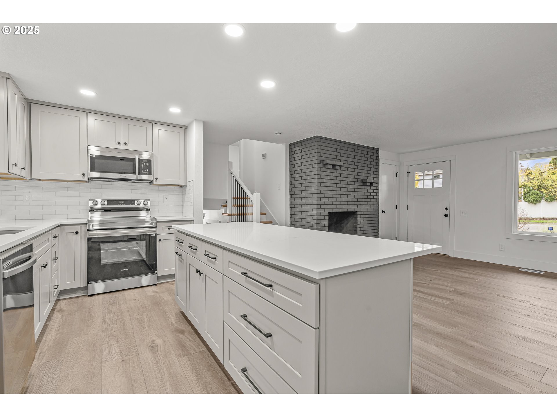 Welcome to this stunning, fully renovated tri-level home in the desirable Hillendale neighborhood. Sitting on an expansive lot, this property features a spacious 33x28 shop with 220v power plus an additional 18x16 shop, perfect for hobbies, storage, or small business needs.The gated driveway offers abundant parking for RVs, boats, and multiple vehicles, while the parklike, fully fenced yard with towering trees creates a peaceful retreat from the bustle of daily life. Inside, you’ll find meticulous updates and quality finishes throughout. The inviting living room features a cozy wood-burning fireplace and flows seamlessly into the beautifully updated kitchen and dining area, complete with access to the backyard—ideal for entertaining. Upstairs, there are three comfortable bedrooms and a full bathroom. The lower level, with its own exterior access, is perfect for multi-generational living or guest quarters, featuring a fourth bedroom, second bathroom, and a large family room with another wood-burning fireplace. Conveniently located near parks, shopping, major highways, and the historic downtown Oregon City, this home offers both comfort and convenience.Notable 2025 Updates: Full Interior & Exterior Paint; New Kitchen Cabinets & Quartz Countertops with Subway Tile Backsplash; Updated Bathroom (toilets, sinks, bathtub, vanity, mirrors); New Lighting Fixtures Throughout; Millwork; New Luxury Vinyl Plank Flooring & Carpet; New Stainless Steel Dishwasher, Range, & Microwave