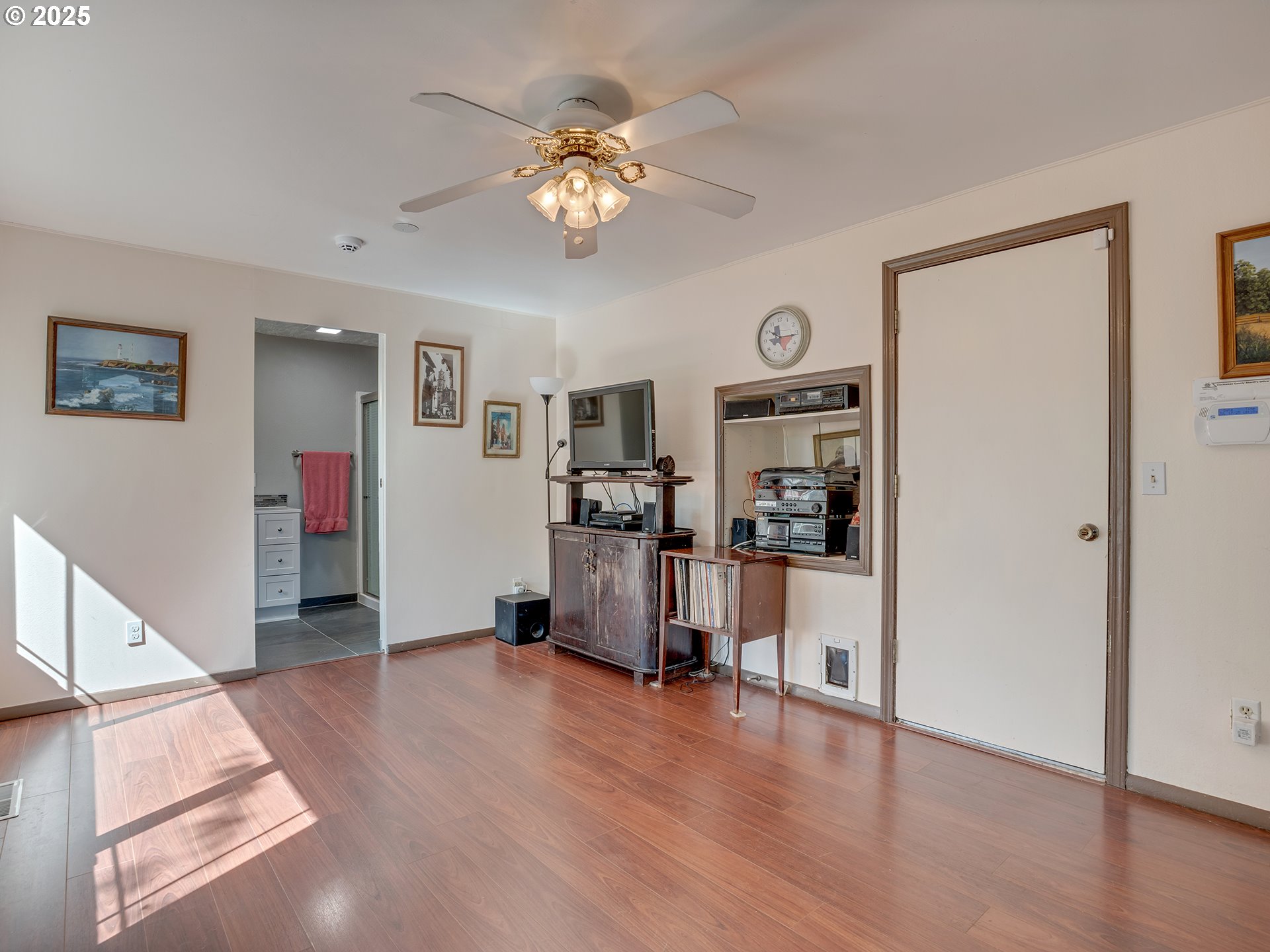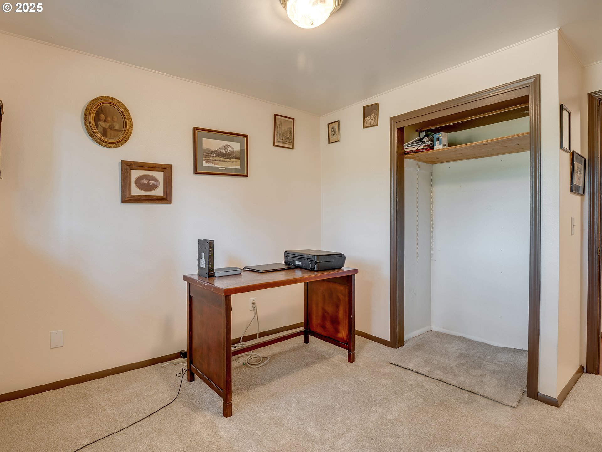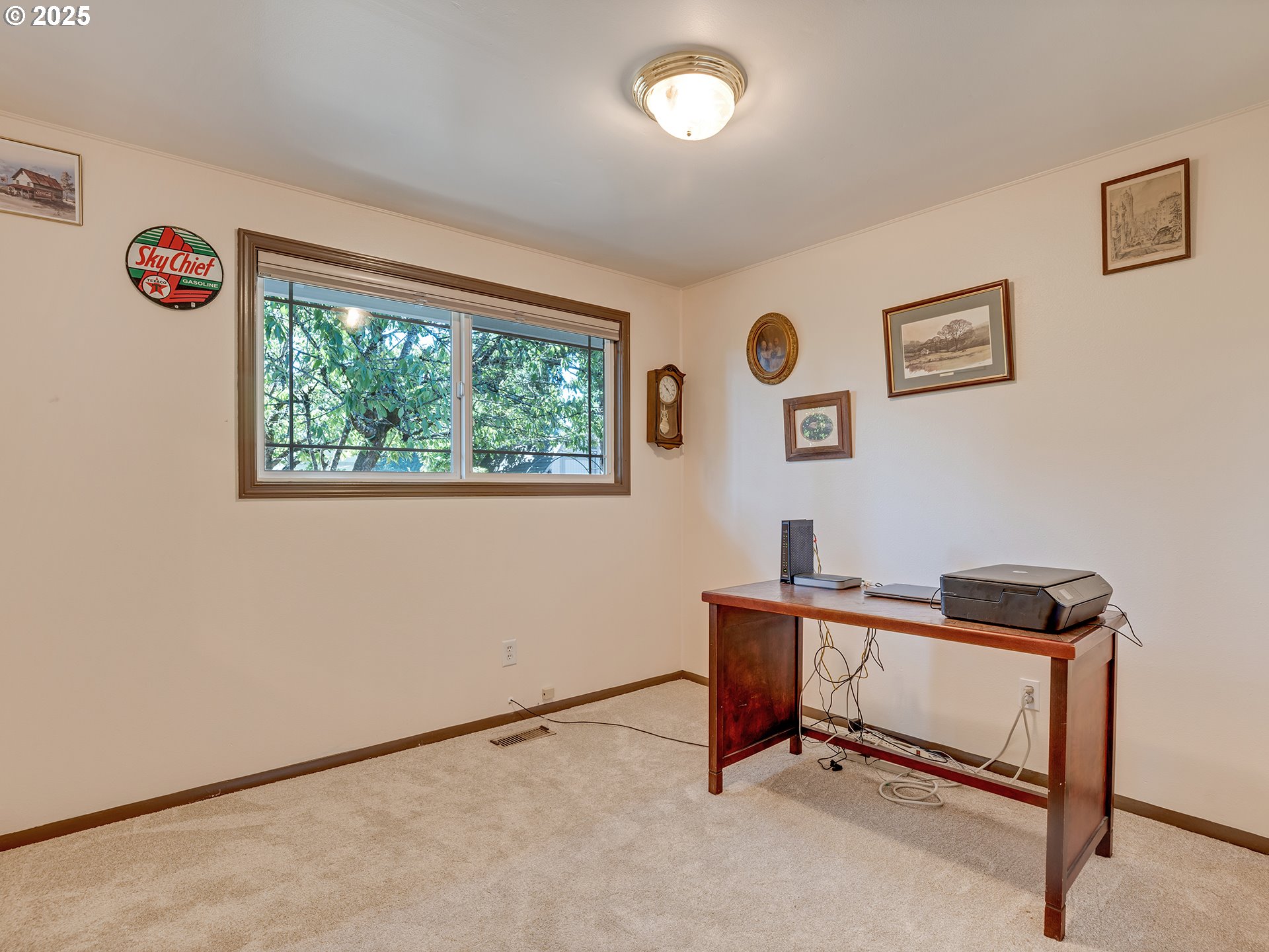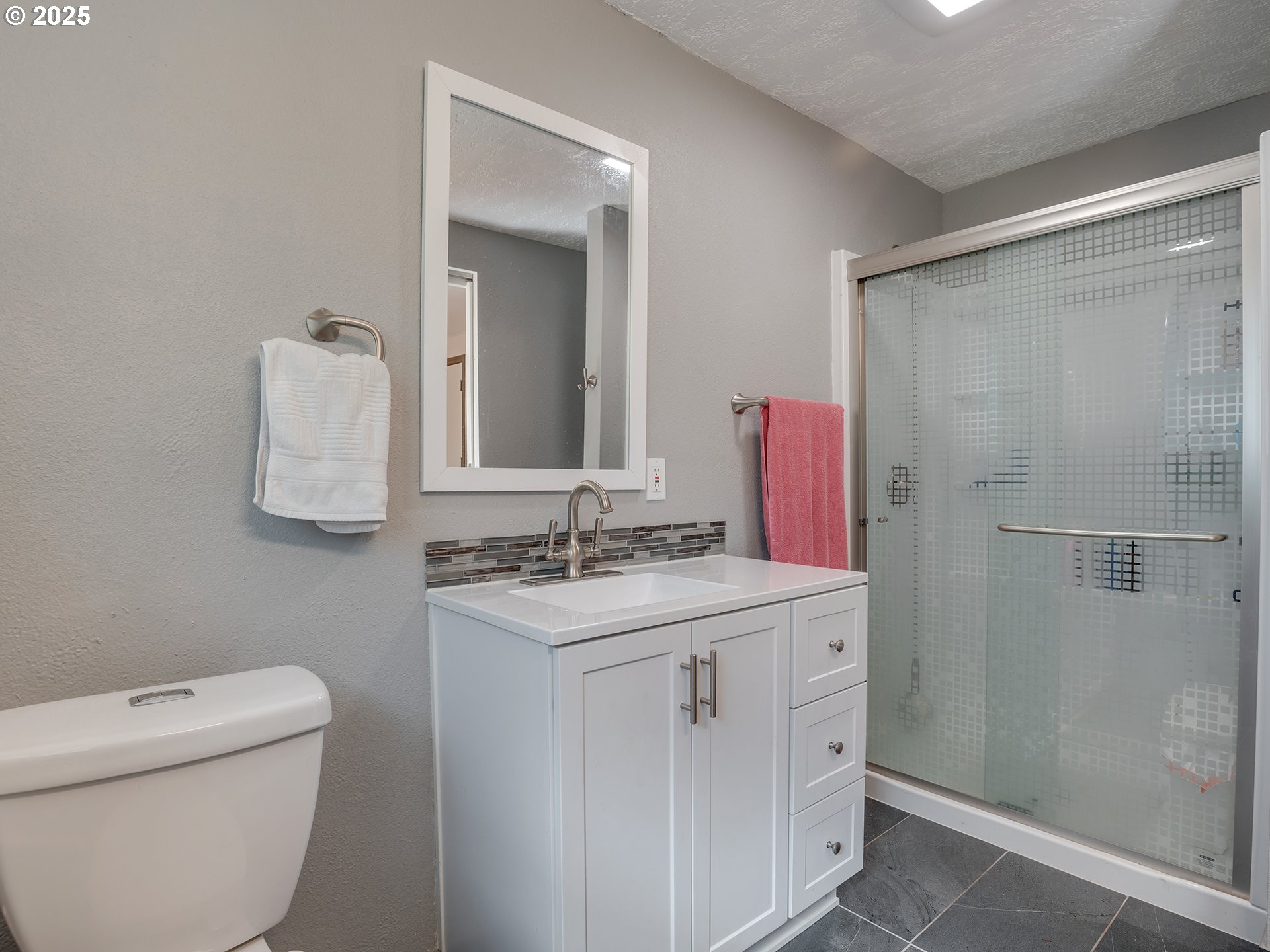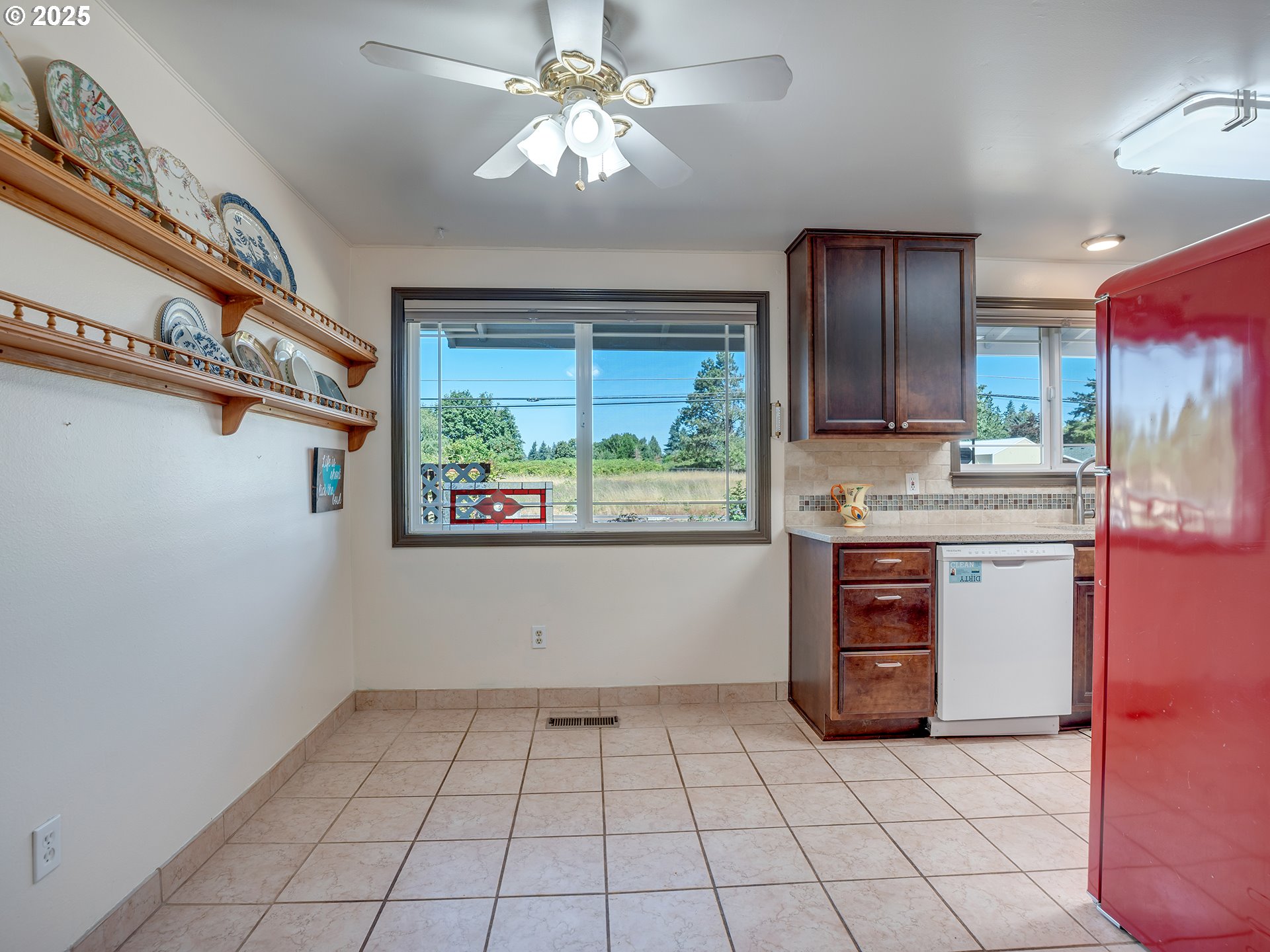 Excellent single level home in the popular Finnegans neighborhood on a wonderful, lusciously landscaped large (0.28 acre) private lot surrounded by greenspace on three sides and with flowers galore and multiple fruit trees including apples, plums, cherries, a grape arbor and a filbert tree! This bountiful lot also has the convenience of a circular driveway, backyard patio and two sheds (12x16 & 12x8) for ample outdoor storage. Inside the easy flow floorplan consists of three bedrooms (two with new carpeting as of June 2025), two bathrooms, an extended kitchen for either additional work/storage space or an eat-in option. Use the center room for either a living room or dining room with a cozy fireplace and the additional room as you wish for bonus space. Other features include mostly solid surface floors, double paned vinyl windows with newer blinds throughout (approx 2019), updated kitchen in 2019 (with quartz countertops, soft close cabinets and drawers and pull out shelves), updated bathroom in 2025, water heater approx 6yrs old, HVAC (with central A/C) approx 4yrs old, newer roof (2025), updated paint inside and out (approx 2019), updated canned lighting added in 2024, crawlspace refresh including Visqueen vapor barrier and insulation (2024). Home also comes with a newer Generac generator and is part of the Clackamas River Water District. Annual HOA dues of $79/year are for greenspace and park/rec facility maintenance only.