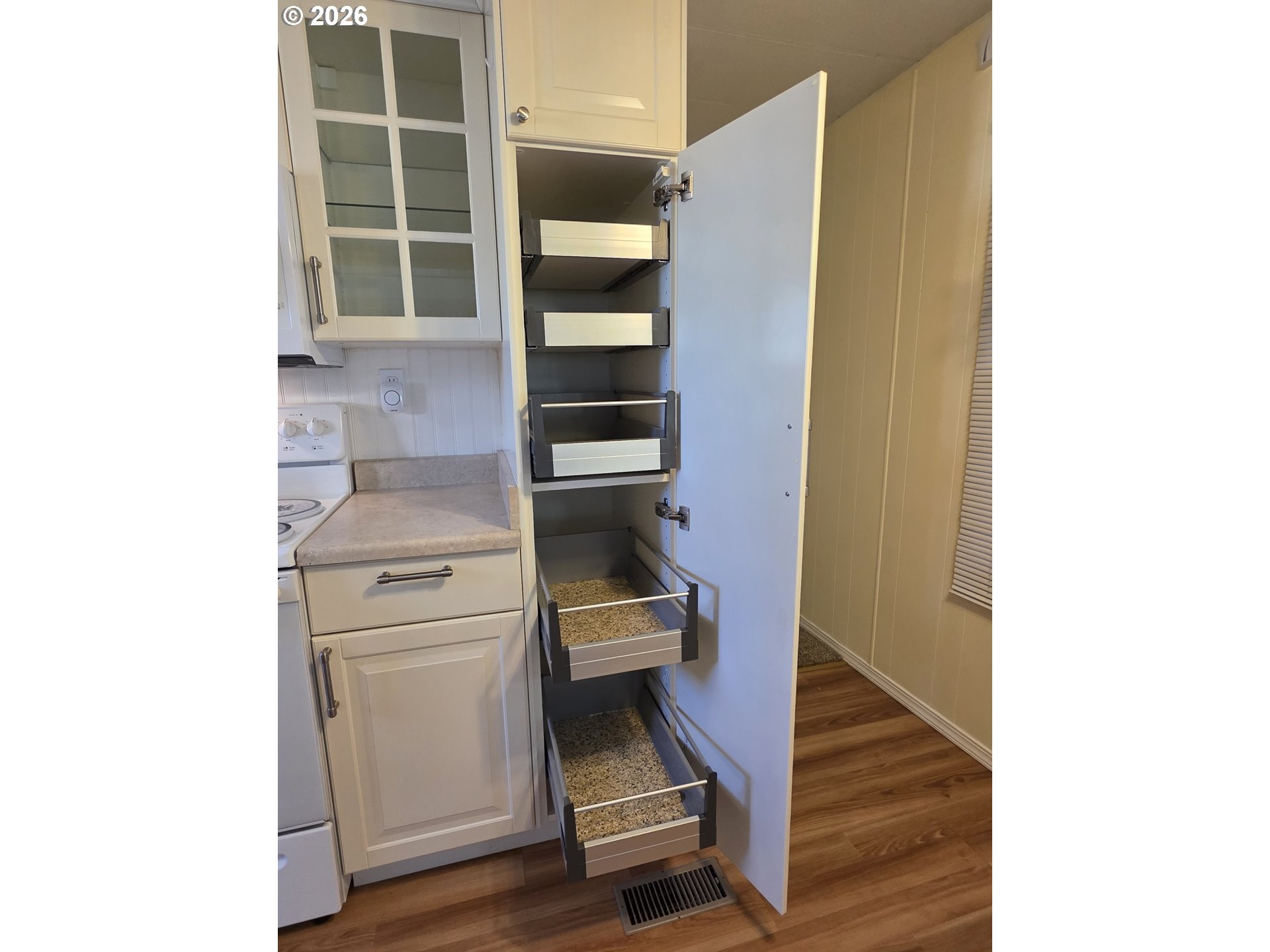 Beautifully upgraded 2-bedroom home with a spacious layout and thoughtful features throughout. The large, expanded living room offers an open, airy feel and lives much larger than expected. The kitchen is beautifully updated and fully equipped with all appliances, including convenient pull-out drawers for easy storage. A bright, enclosed cedar-lined front porch provides a cozy space to relax year-round. The home features newer vinyl windows and an updated, oversized bathroom with a newer tub surround. A stackable washer and dryer add everyday convenience. Outside, enjoy a fully fenced yard with a charming she shed, plus an additional garden shed for storage. A small vegetable garden bed and a perennial garden promise seasonal beauty, while the patio is perfect for warm summer days. Located in a fabulous community offering activities, a clubhouse, and a seasonal pool, this home combines comfort, functionality, and an inviting lifestyle.