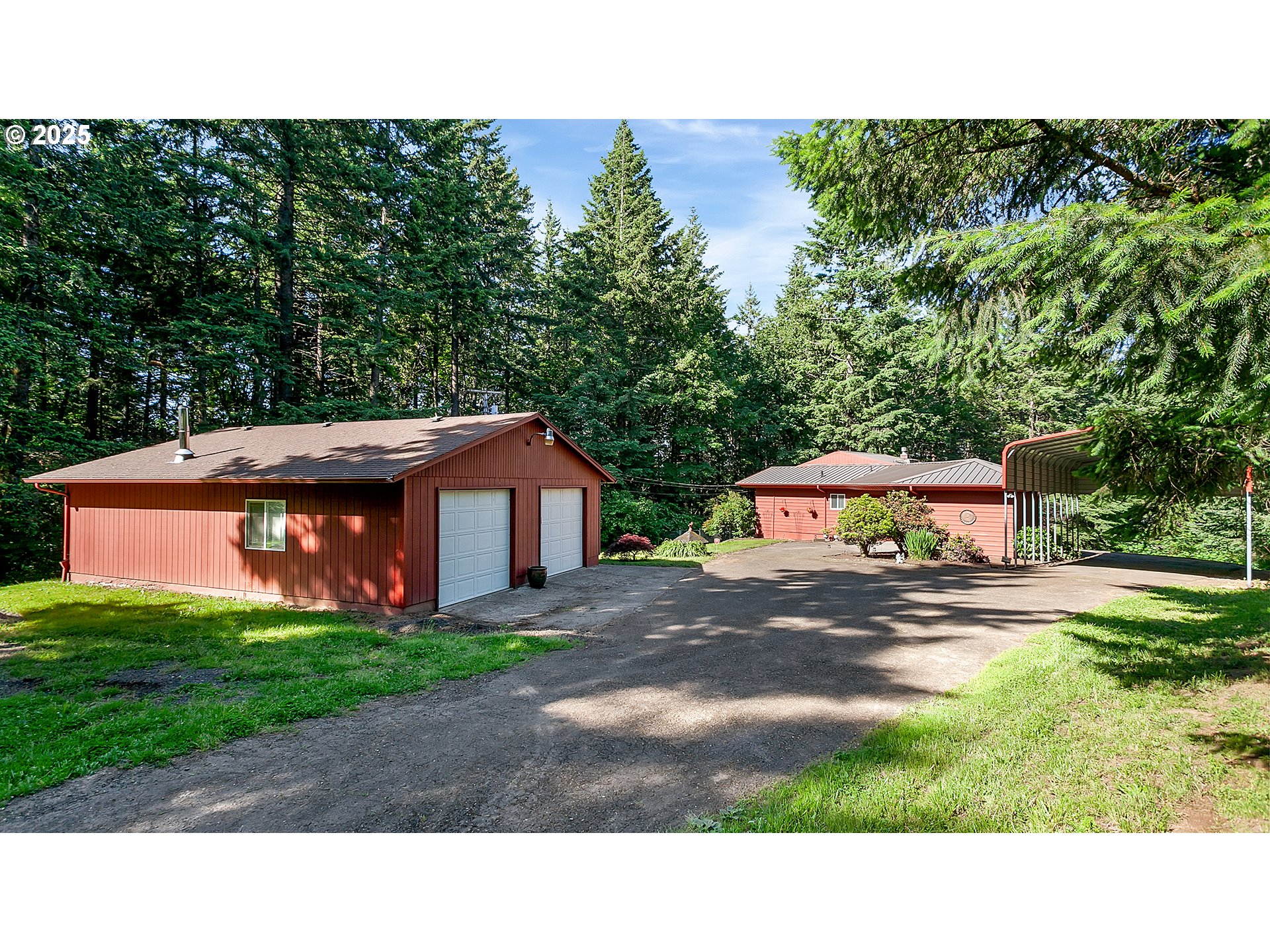 Incredible opportunity to own a tranquil, private, wooded, and grassy retreat on 5 acres with 3 bedroom, 2 bath, 2,076 square feet with a 3-acre buildable lot.Minutes from Gresham, Happy Valley, and Damascus.Daylight basement home on 1.9 acres nestled among towering evergreens. Large windows allow for lots of natural light.Main floor: Living room with three-sided floor to ceiling rock fireplace with slate hearth situated between living room and kitchen. One bedroom and full bath. Kitchen features 12’ ceilings, stainless steel appliances, granite and large island. Slider opens to large 50’ covered wrap-around deck for year-round use and beautiful views.Daylight basement features large family room with floor to ceiling brick fireplace with gas insert. 2 bedrooms, bathroom, large utility room. Slider off family room leads to wrap-around patio and access to fenced yard.Newer updates include HVAC high-efficiency gas furnace, heat pump, and gas hot water heater, most plumbing lines replaced with PEX water lines.Wood laminate flooring in most areas.High quality, low maintenance metal roof.Detached 28’ X 36’ garage/shop with room perfect for crafts, studio, office, etc. and separate entrance.41’ L x 14’ W x 16’ H covered RV parking with 50 amp and RV dump. Perfect for largest RVs.Carport with attached shed with electricity and built-in shelves.Room to breathe, space to grow, and flexibility to fit your future.Owned by one family for 50 years, truly must see property to fully appreciate.View by appointment only. Seller offering 1 Yr APHW warranty with acceptable offer. Call for details. OPEN SUNDAY 11/30 2-4PM