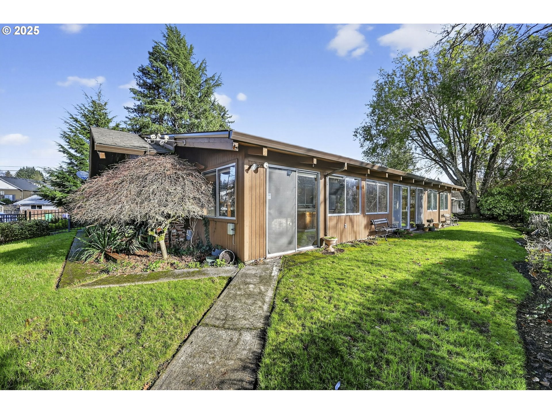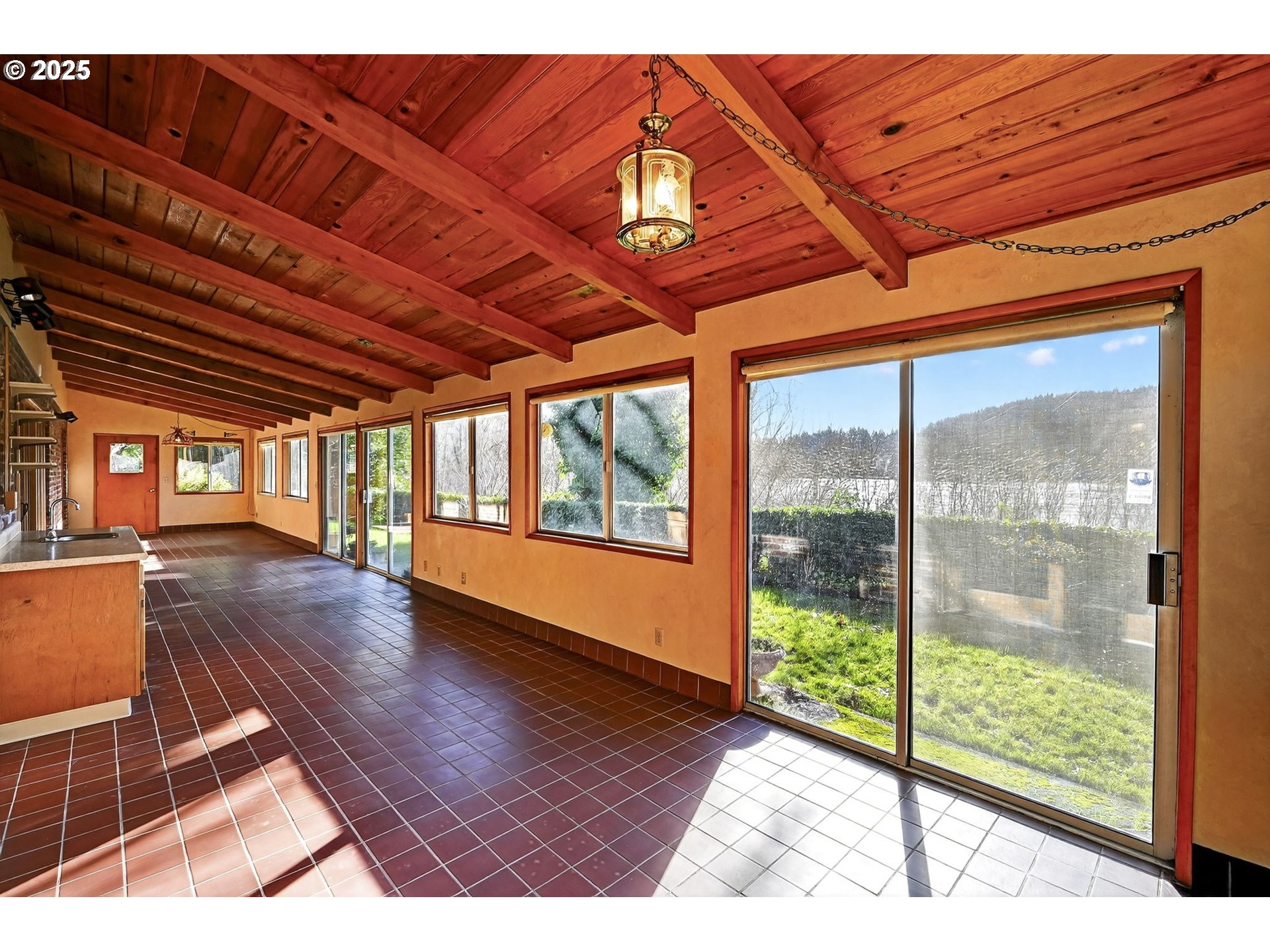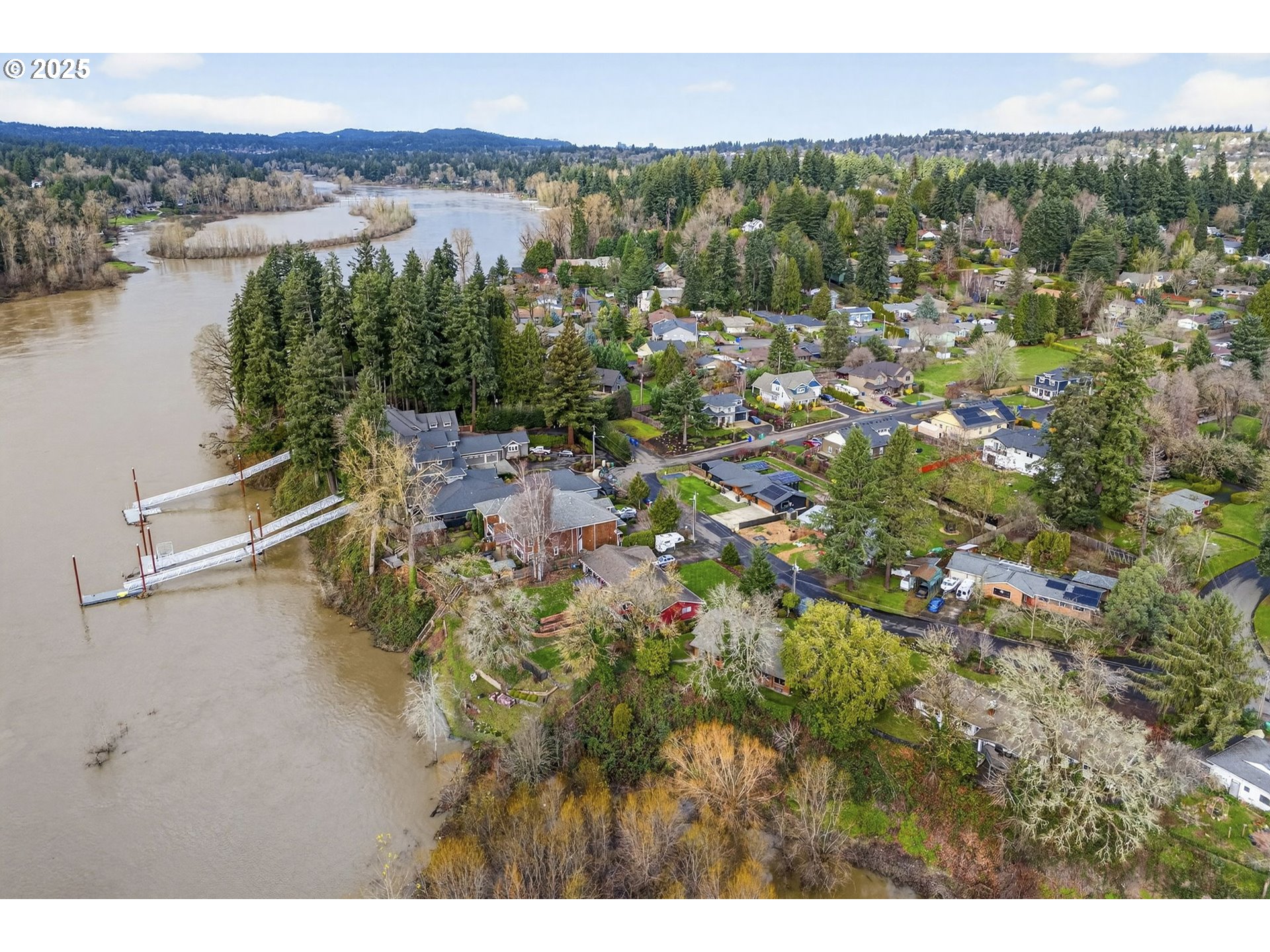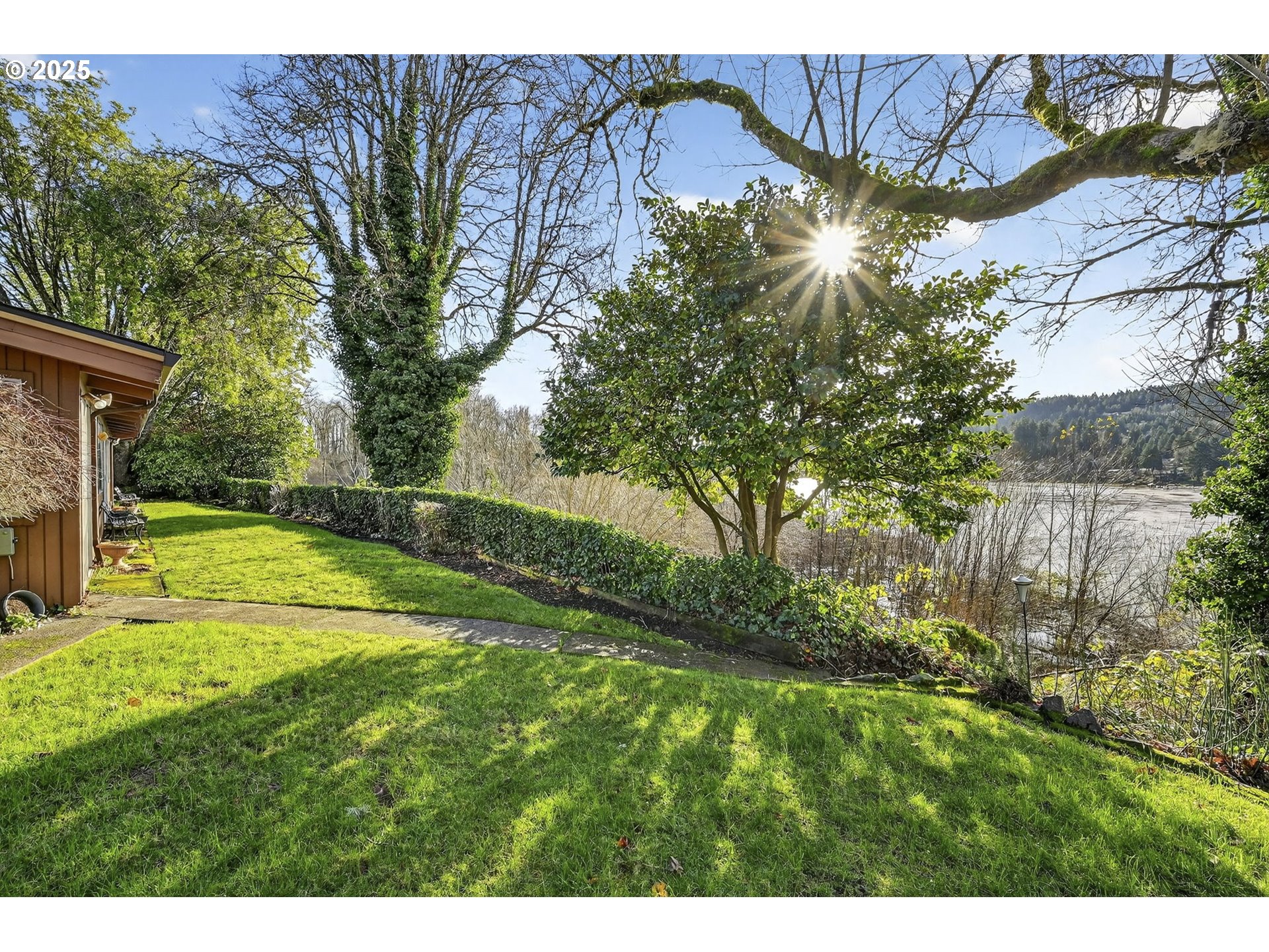 A rare riverfront gem full of opportunity. As you enter the home, you’re greeted by views of the Willamette River straight through the back windows. Vaulted tongue-and-groove ceilings span the entire home, including the bedrooms, adding character and warmth throughout. A well-designed layout features dual living spaces highlighted by a grand brick fireplace in the heart of the home. Original hardwood floors are underneath the carpet! From the backyard, stairs lead directly down to the river—perfect for enjoying the summer months. With solid bones and an unbeatable setting, this home is ready for someone to bring their vision and make it their own. This house is also equipped with a Generac generator ensuring uninterrupted power and added peace of mind. Roof, furnace, water heater, plumbing, Generac & electrical panel all newer.