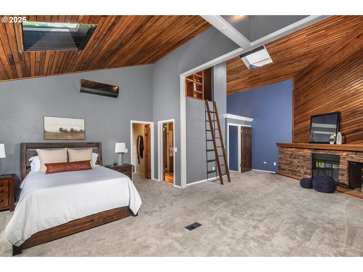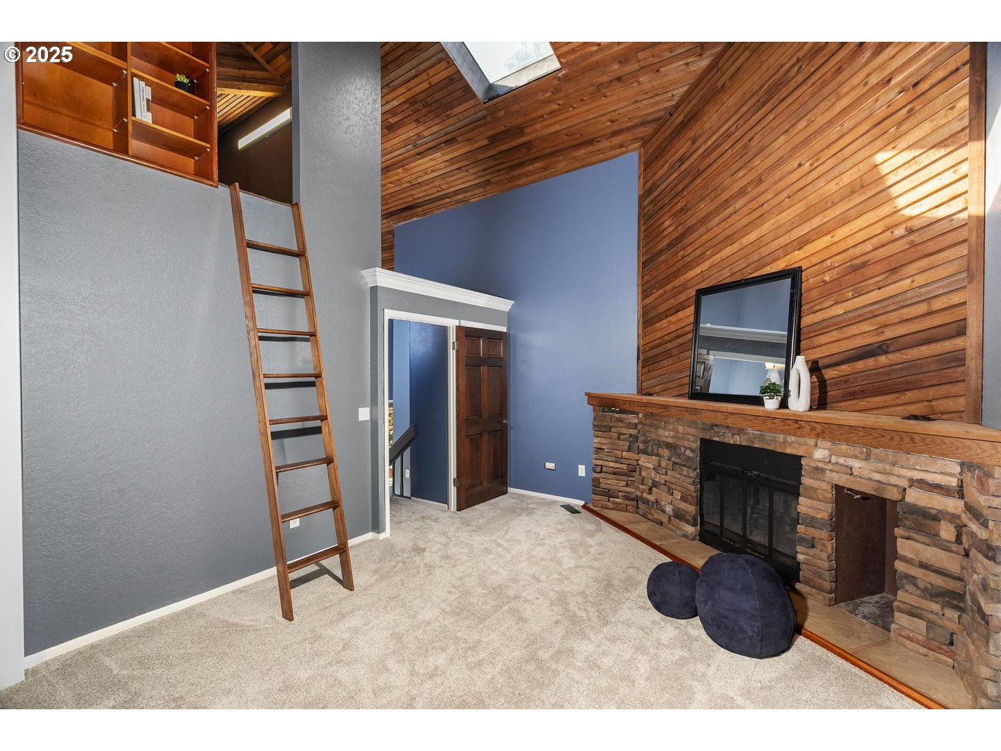 Nestled in a tranquil, forest-like setting, this meticulously cared-for Northwest Contemporary seamlessly blends modern luxury with natural serenity. Located just minutes from downtown Portland, Lake Oswego, and West Linn’s vibrant amenities, this home offers the perfect blend of privacy and convenience. Inside, the impressively high ceilings in both the living room and the primary suite are crafted from natural cedar, creating a warm and inviting atmosphere. Expansive floor-to-ceiling windows bring nature indoors, bathing the space in natural light. The living room, with its soaring cedar ceiling and striking stone fireplace, sets a welcoming tone. The upper level is dedicated to a luxurious primary suite, featuring its own fireplace, a private balcony, and a cozy den—an idyllic retreat among the treetops. Each floor boasts a deck, enhancing the indoor-outdoor living experience. Recent updates ensure a turnkey experience, blending contemporary finishes with timeless charm. Enjoy the best of both worlds: modern comfort and the tranquility of nature, all just moments away from city conveniences.