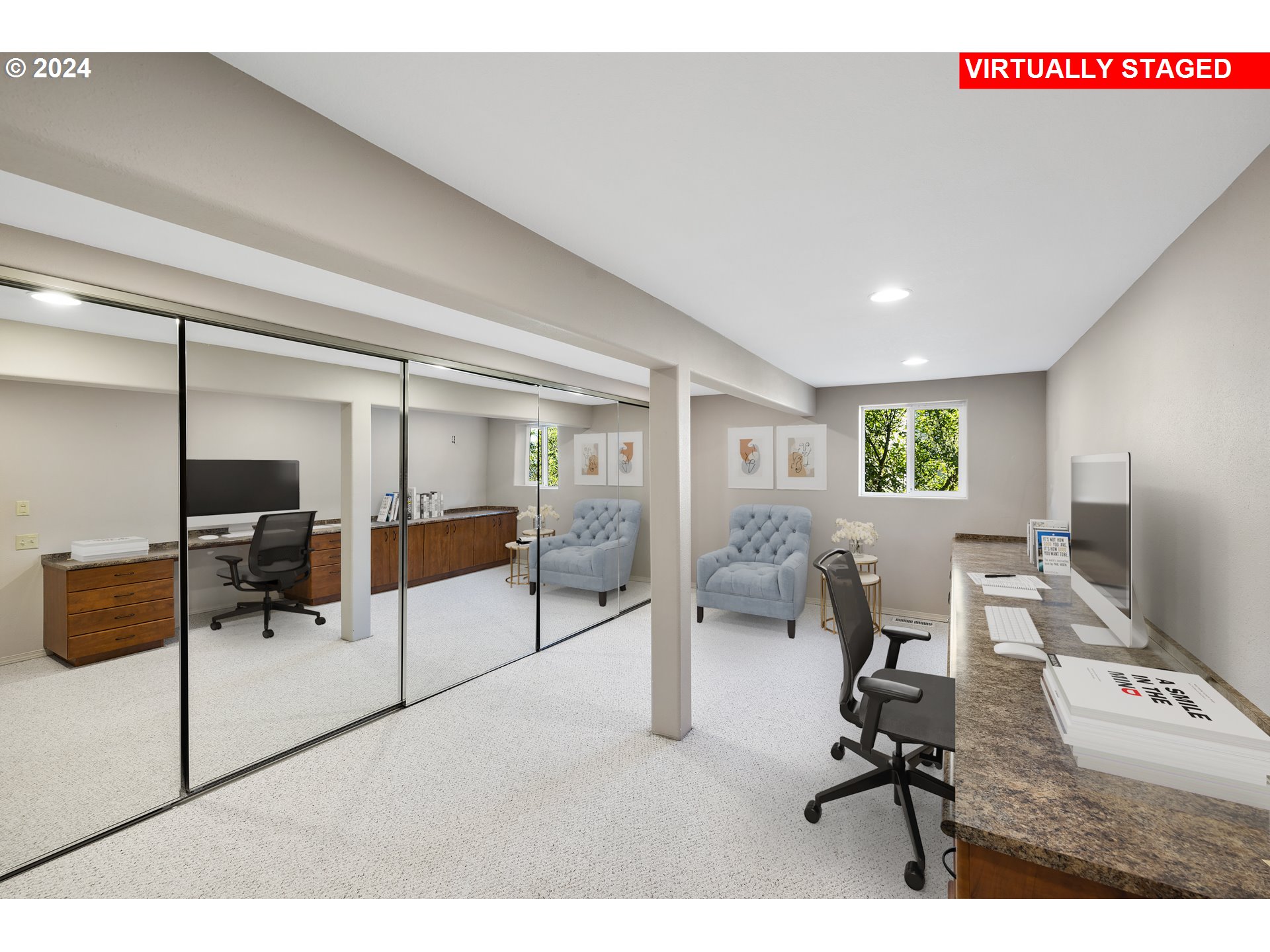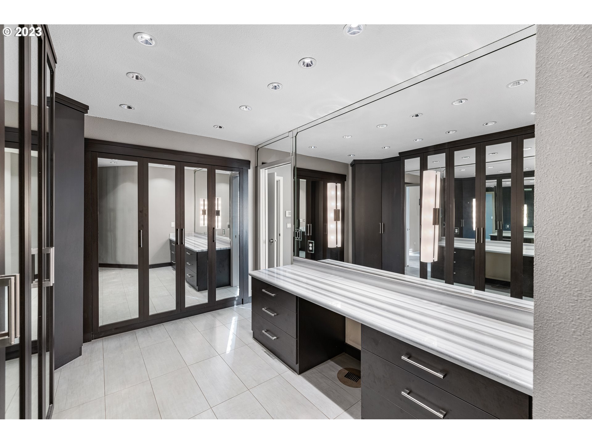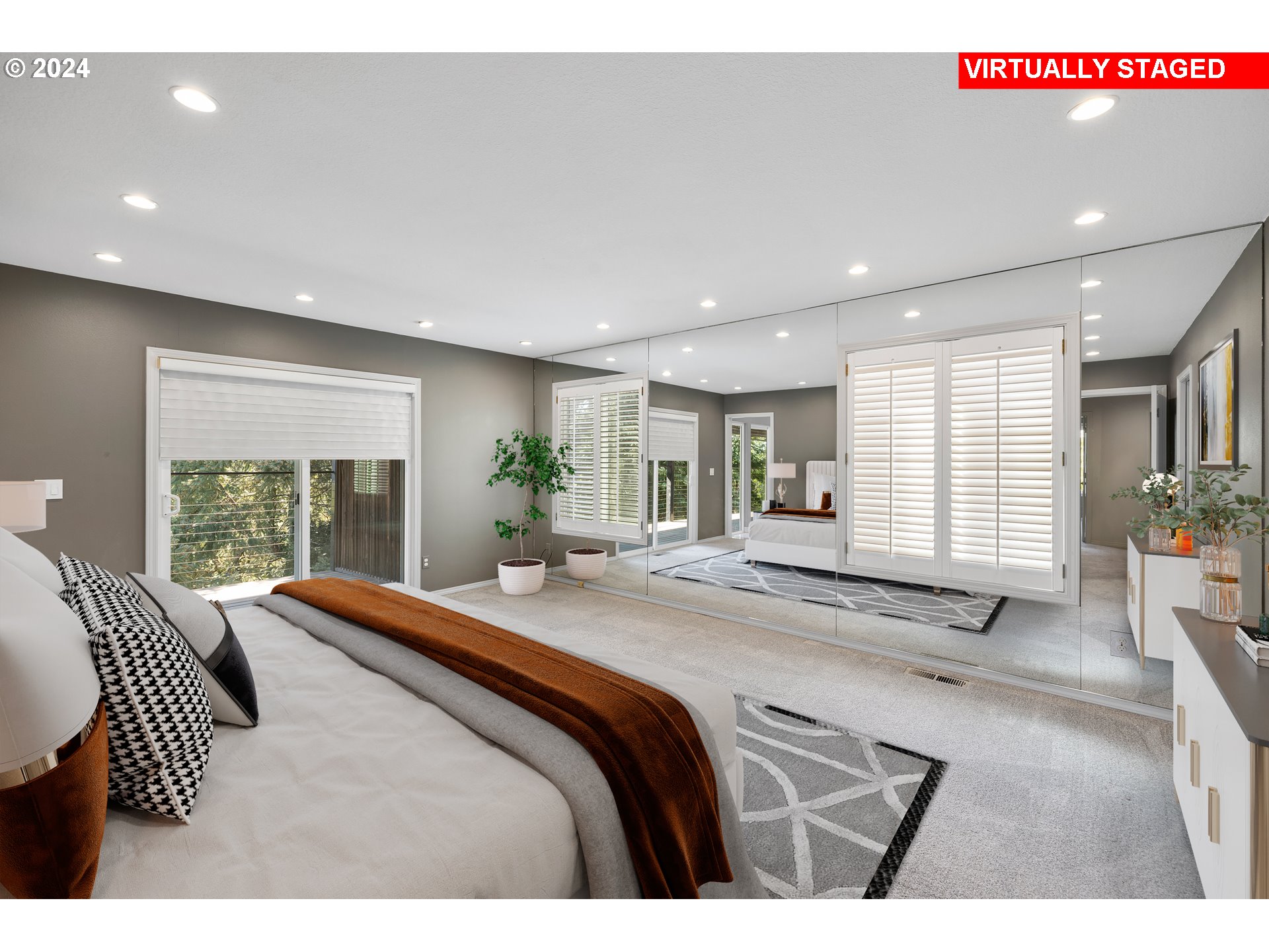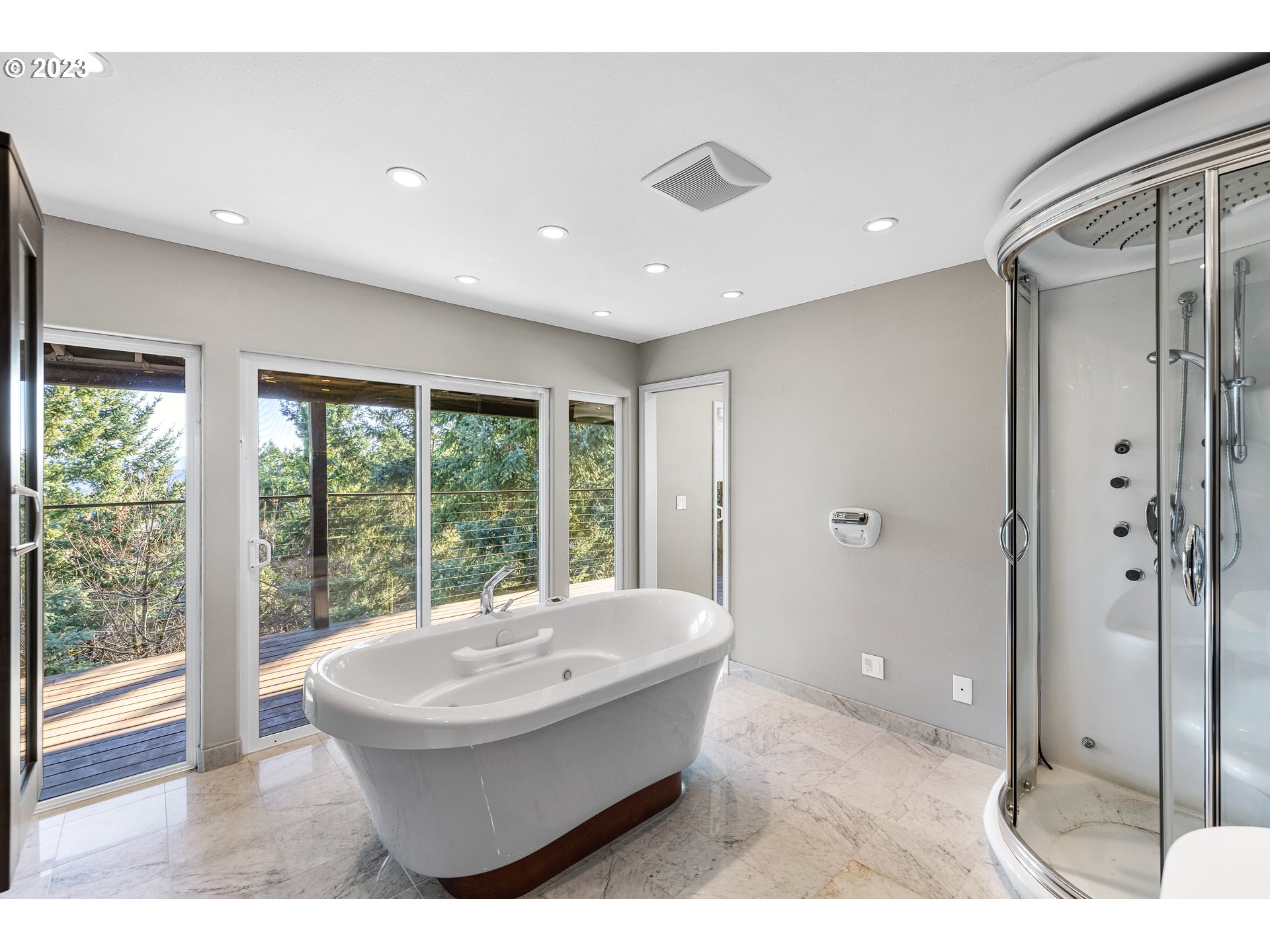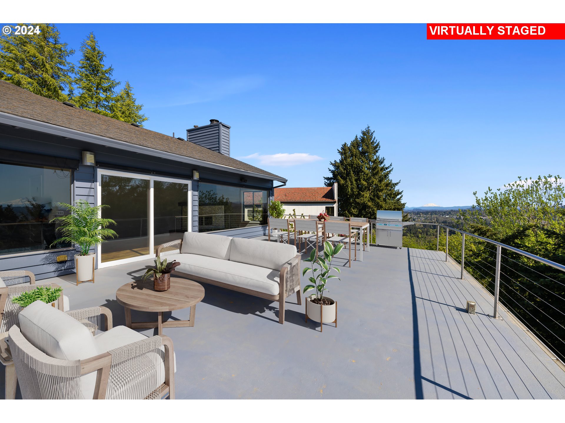 Welcome to this classic custom contemporary home. New exterior paint. Newer 95+ gas furnace and air conditioning unit. Vaulted ceilings flood the main level with natural light. Large powder room off entry. Spacious kitchen with stainless steel appliances and eating area. Enter into the formal dining and living room with engineered hard wood floors. Gas fireplace and wall of windows. Exit out sliding door to expansive new deck with fabulous views of Mt Hood, Mt St Helens and Valley. Lower level includes family room and three bedrooms. Owners' suite with dressing room and wall of mirrored closet doors designed by California Closets. En-suite bath with jetted tub and shower with marble heated floors. Sliding door to outside and covered deck. 2nd bedroom ensuite with walk in closet and 2nd full bath. 3rd bedroom with mirrored double closet doors and desk with built ins, this could be office as well. Large Laundry room with newer washer and dryer. Sound system throughout house and upper deck. Double car garage epoxy floor and built in cabinets. Home warranty paid by sellers.
