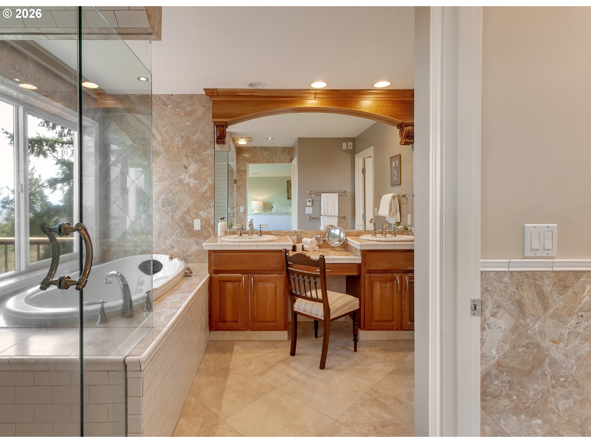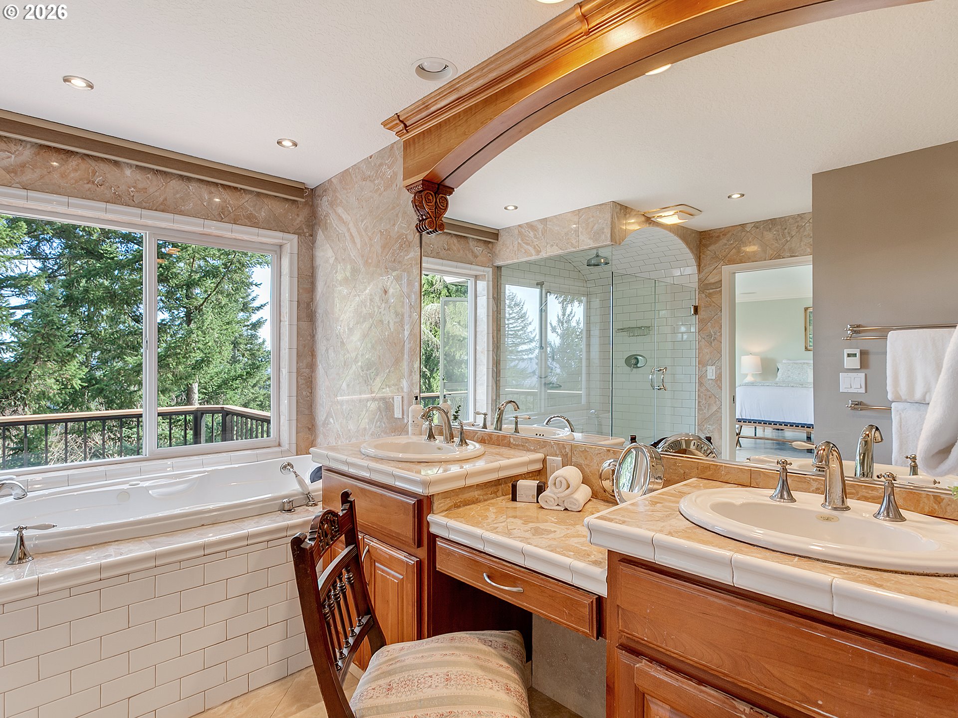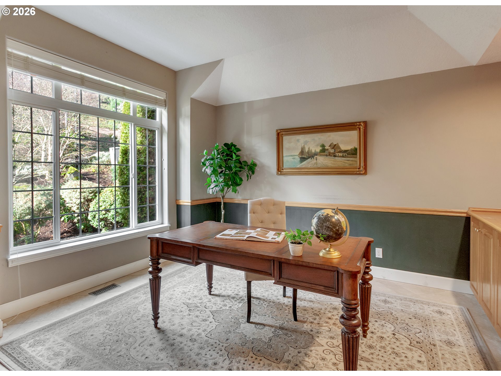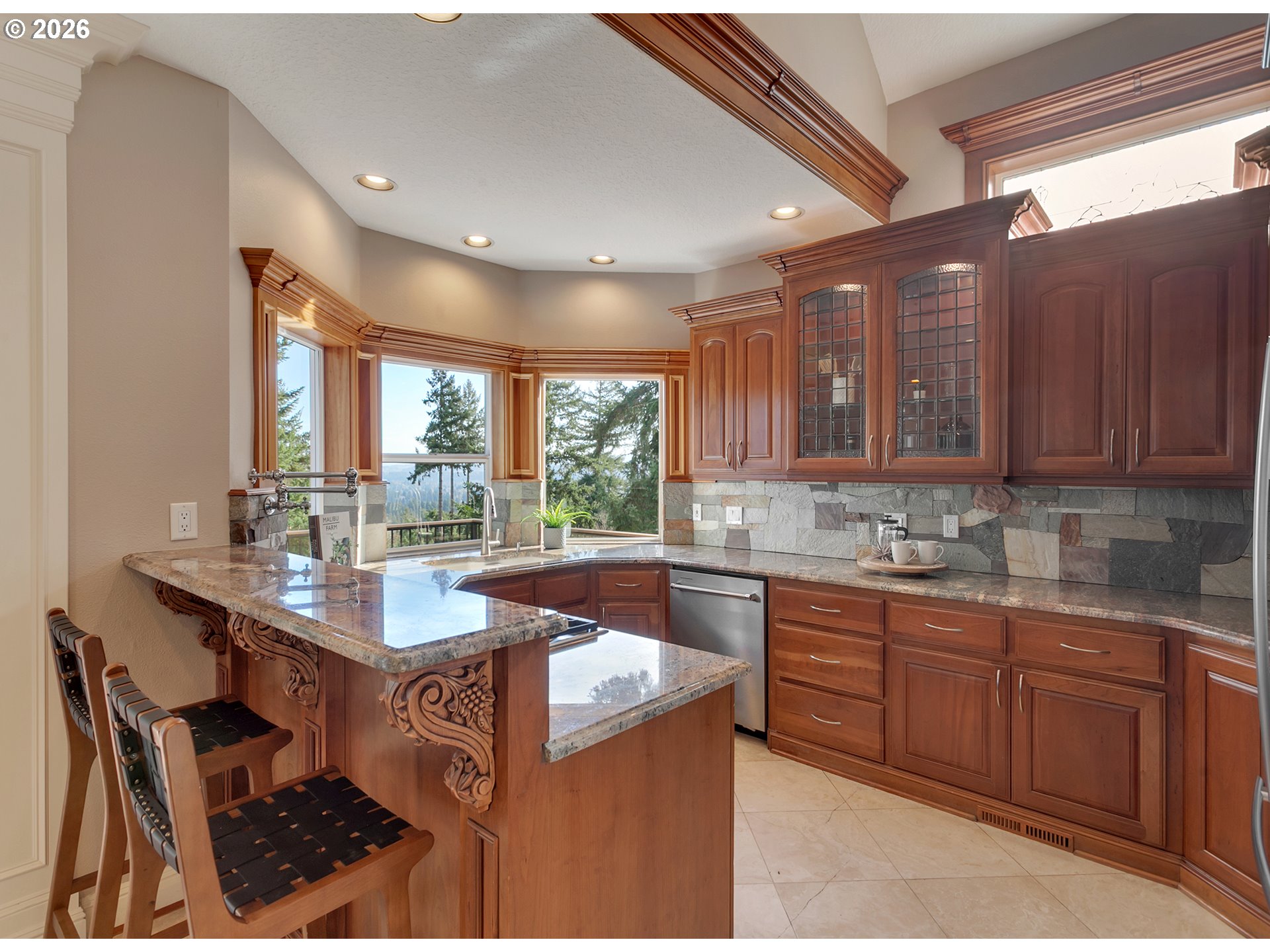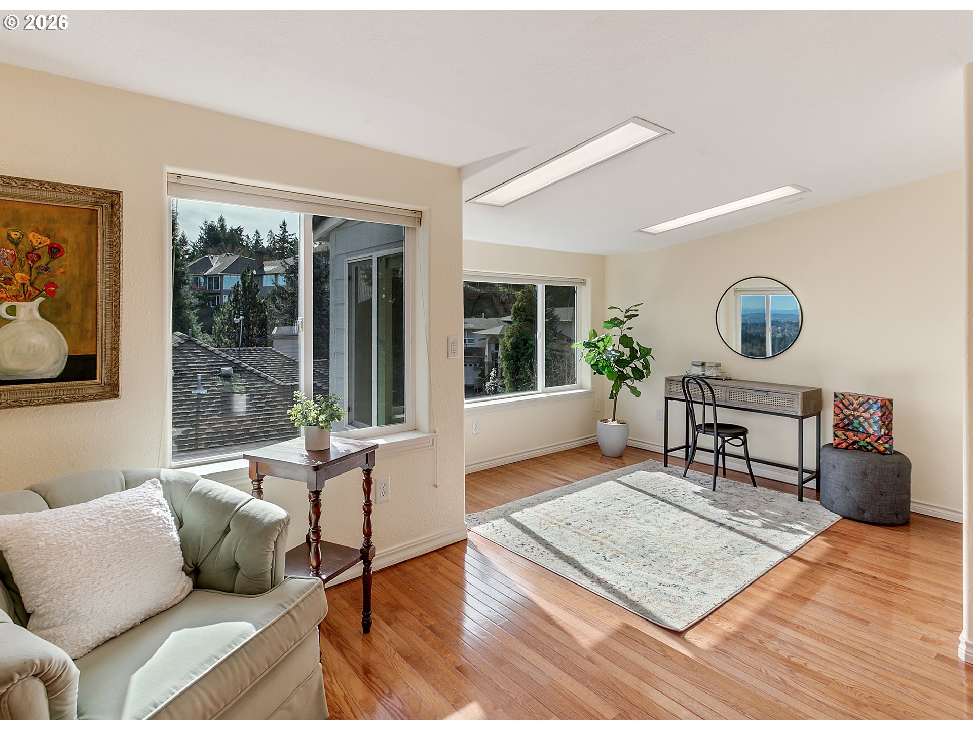 OPEN SUNDAY 3/8 FROM 12-2 PM! Perched in a peaceful, elevated setting with sweeping 180-degree mountain, valley, and city views, this beautifully maintained home blends timeless architecture with exceptional livability. A dramatic two-story entry welcomes you into expansive living spaces framed by oversized windows that flood the home with natural light while capturing the surrounding trees and skyline. The spacious great room showcases a striking stone fireplace and flows seamlessly into the dining area and kitchen, while French doors open to an impressive oversized deck, creating the perfect environment for entertaining or quiet mornings taking in the view.The kitchen features rich wood cabinetry, quality finishes, a walk-in pantry, and a bay window with a view. Retreat to the luxurious primary suite occupying the entire upper level, complete with panoramic windows, a spa-inspired bath, private deck, and generous space for the ultimate closet design, with washer and dryer hookups already in place. Flexible bonus and office spaces provide room to live, work, and host with ease, while abundant storage inside and out keeps everything effortlessly organized. Perfectly landscaped lighted trails wind down the property for exploring and enjoying the natural Oregon beauty. With its private feel, thoughtful layout, and rare view presence, this home captures the very best of Northwest living.
