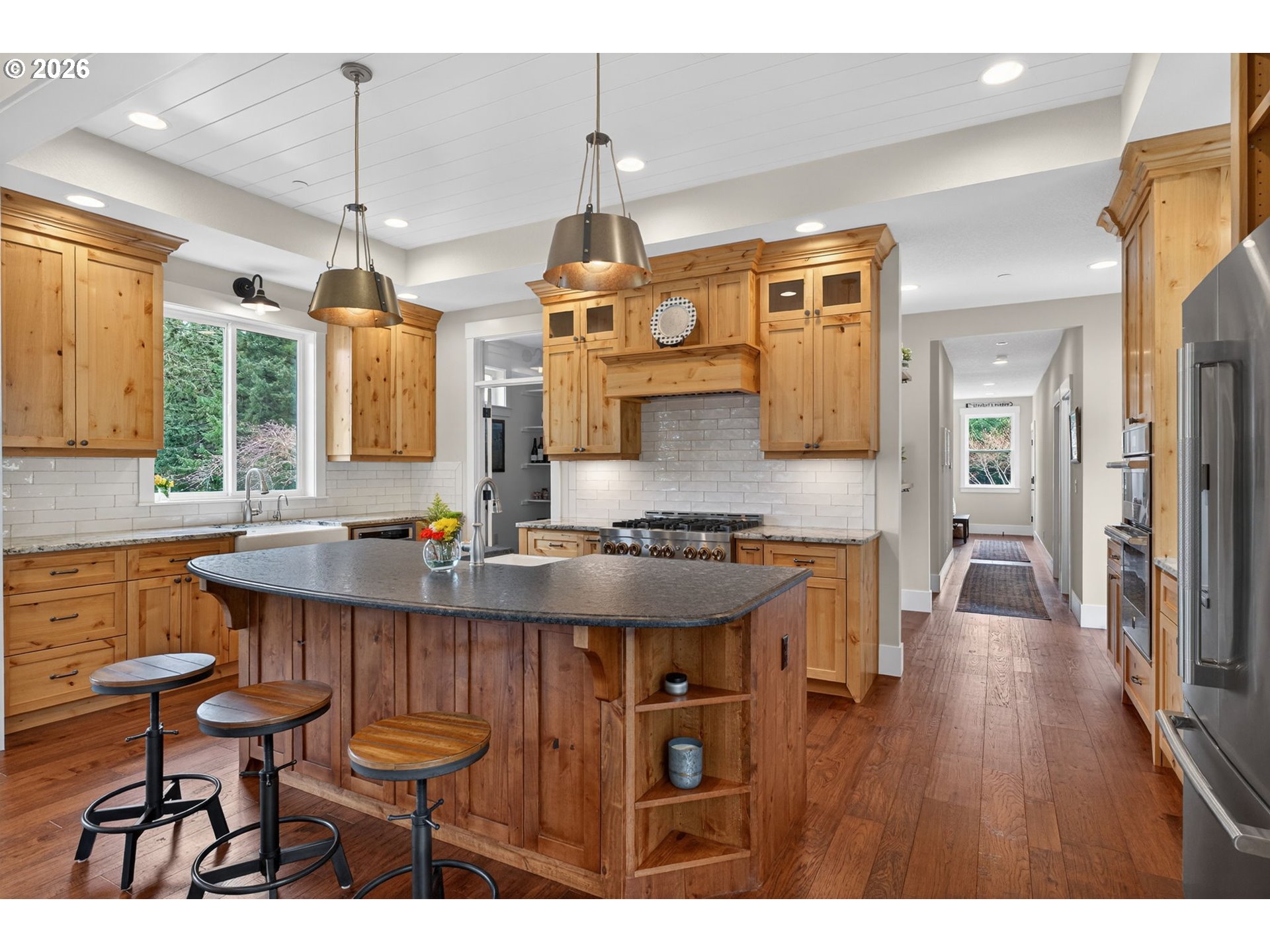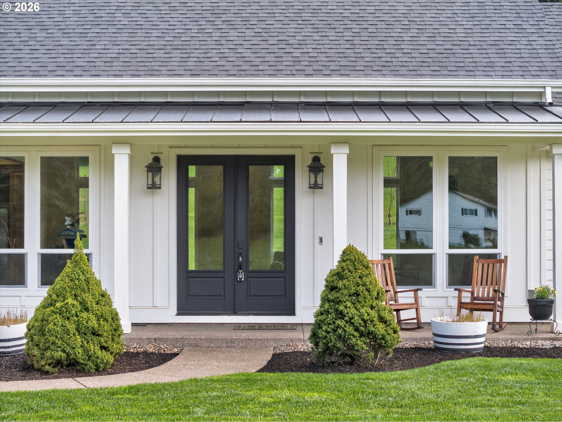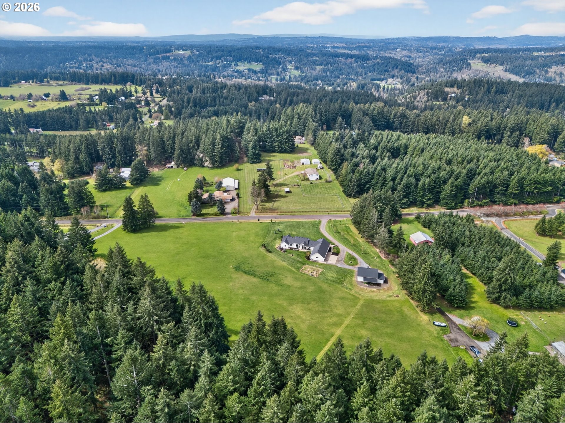 (503) 893-8874OPEN HOUSE this Saturday, April 11, 1pm-3pm!!! Custom design/build of this New England style expanded Cape Cod, all on one level, beautifully placed on almost 5 acres. Picture perfect covered front porch leads to vaulted great room with walls of windows. True flexible living with well-proportioned living room anchored by custom brick fireplace, open to expandable dining room, with easy access to sliding doors out to covered back patio overlooking the sprawling yard, garden, and trees. The chef's kitchen offers custom cabinets, honed granite, large cooking island, 6-burner stove, oversized pantry, and ample storage. You'll find the primary suite sitting just beyond the den, which creates a great library or TV room. Vaulted primary offers nice views, walk-in closet, custom vanity with high-end fixtures, and walk-in shower. Two additional matching bedrooms share a Jack-and-Jill bathroom. Separate office space can be easily used for a guest room or fourth bedroom with closet. Complete with third full bathroom down the hall from large laundry room with sink and storage. Oversized 3-car garage with storage loft, EV charger, and wired for whole house generator. Detached 1300 sq ft shop with car lift, hoist, storage, and office space — great for your hobby, the car enthusiast, or workshop. Don’t miss this rare small-acreage hobby farm with newer custom home in an idealistic setting.