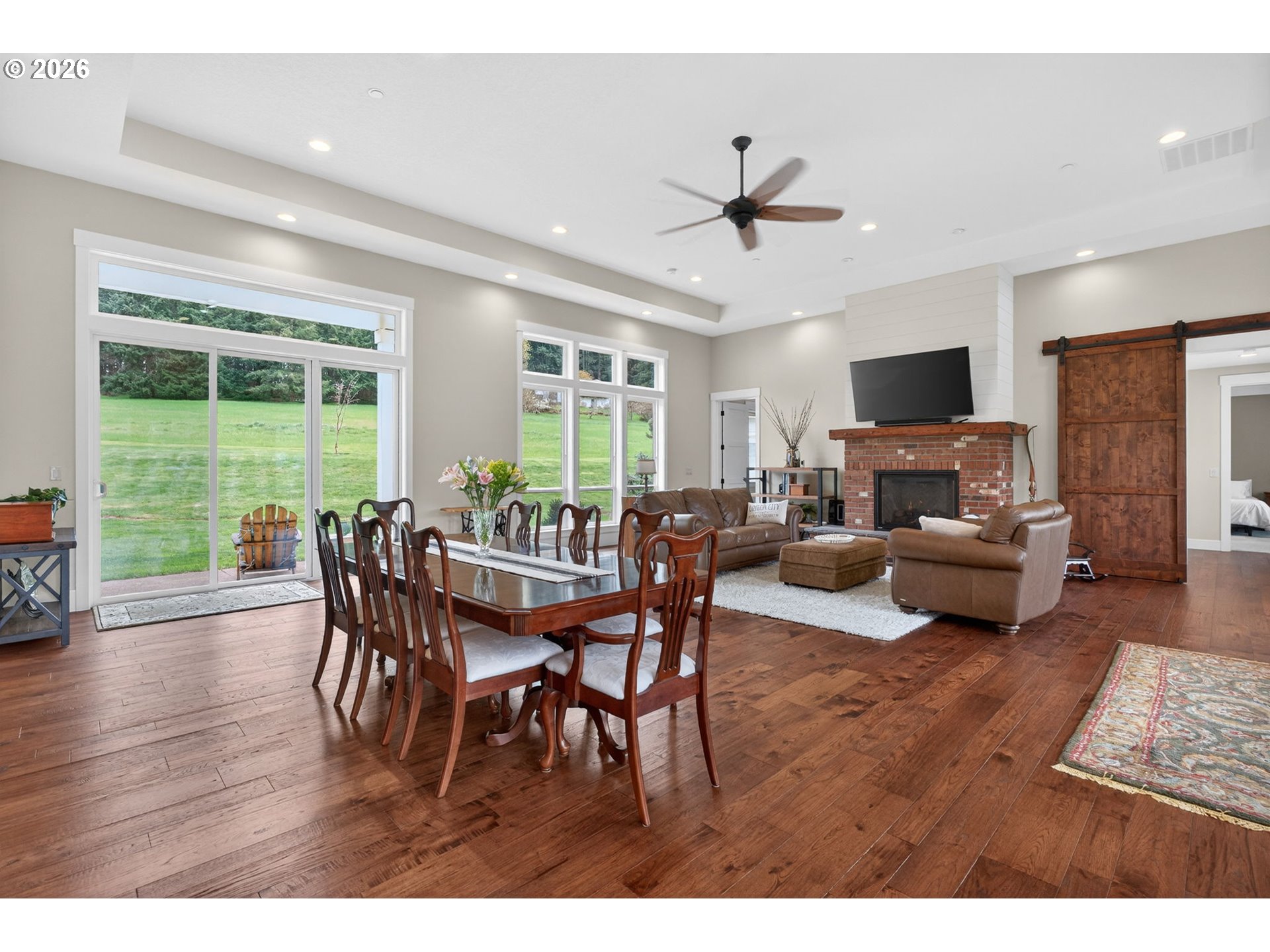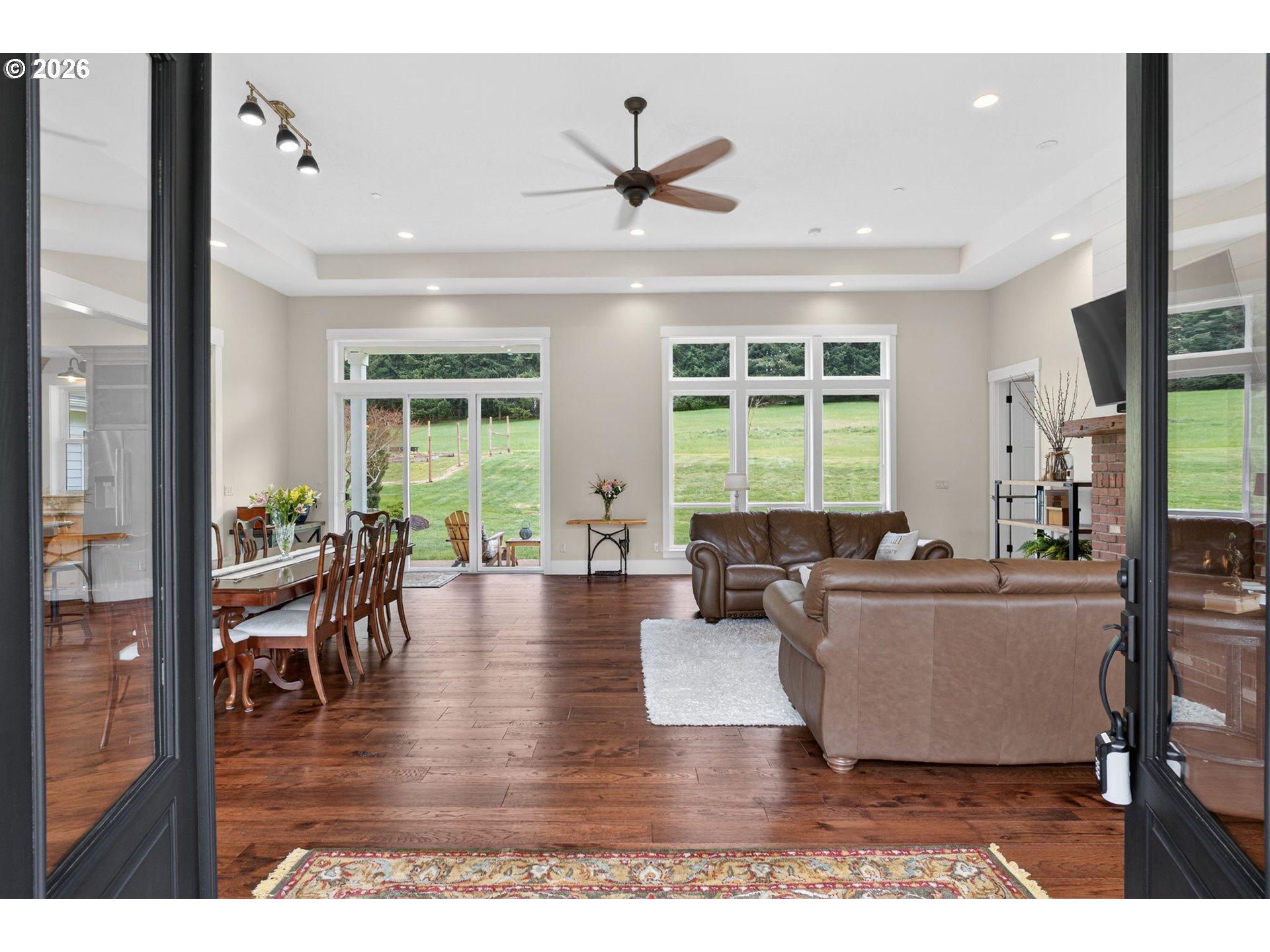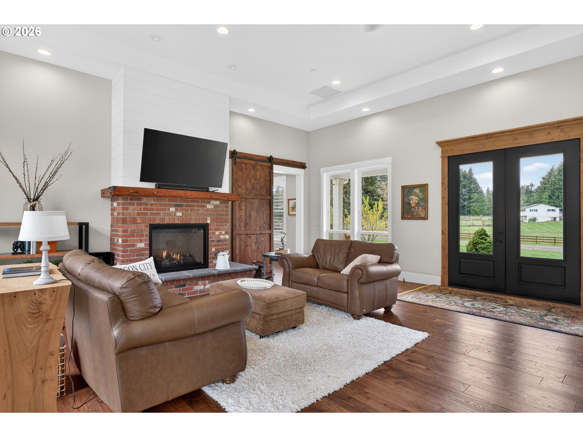 (503) 893-8874OPEN HOUSE this Saturday, April 11, 1pm-3pm!!! Custom design/build of this New England style expanded Cape Cod, all on one level, beautifully placed on almost 5 acres. Picture perfect covered front porch leads to vaulted great room with walls of windows. True flexible living with well-proportioned living room anchored by custom brick fireplace, open to expandable dining room, with easy access to sliding doors out to covered back patio overlooking the sprawling yard, garden, and trees. The chef's kitchen offers custom cabinets, honed granite, large cooking island, 6-burner stove, oversized pantry, and ample storage. You'll find the primary suite sitting just beyond the den, which creates a great library or TV room. Vaulted primary offers nice views, walk-in closet, custom vanity with high-end fixtures, and walk-in shower. Two additional matching bedrooms share a Jack-and-Jill bathroom. Separate office space can be easily used for a guest room or fourth bedroom with closet. Complete with third full bathroom down the hall from large laundry room with sink and storage. Oversized 3-car garage with storage loft, EV charger, and wired for whole house generator. Detached 1300 sq ft shop with car lift, hoist, storage, and office space — great for your hobby, the car enthusiast, or workshop. Don’t miss this rare small-acreage hobby farm with newer custom home in an idealistic setting.