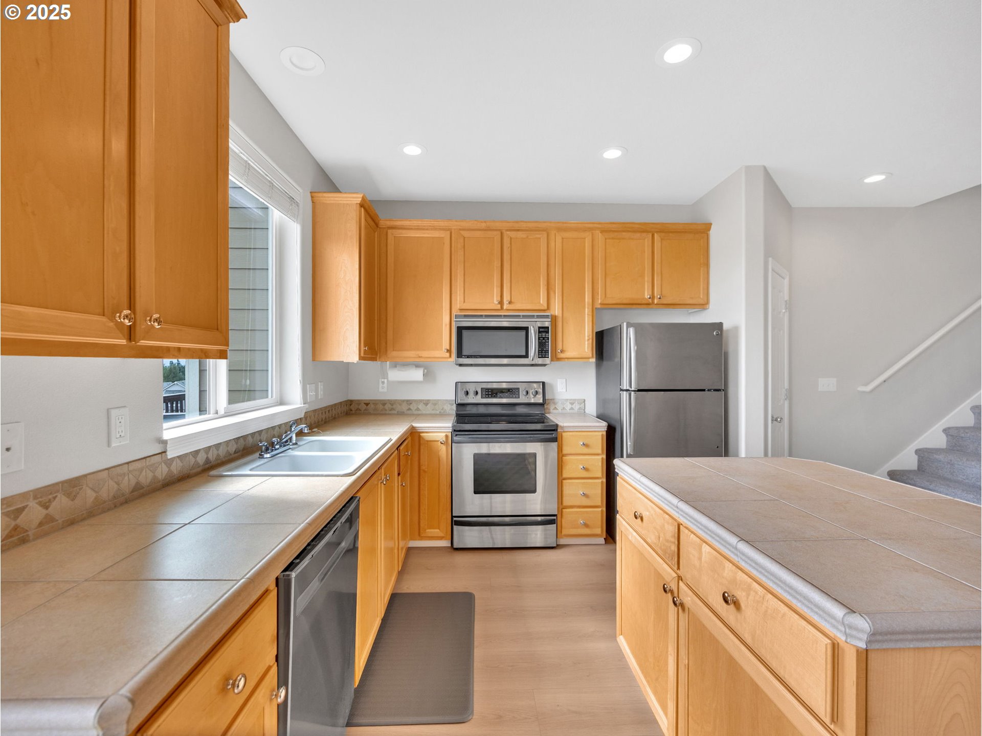 *Vacant and move-in ready* Nestled in the hills of West Linn, this charming townhome offers sweeping views of the town below and a picture-perfect backdrop of Mount Hood from both the kitchen and master bedroom. Two spacious decks invite you to relax and soak in the scenery, whether it’s a quiet morning coffee or a glowing sunset at the end of the day. With over 2,200 square feet, the home features 3 bedrooms on the upper level, 2.5 baths, and an additional perfectly sized room on the main floor that can easily serve as an additional bedroom or private office. Open concept main floor with gas fireplace. The lower level offers a large finished bonus area with exterior door to lower deck, along with a spacious two-car garage boasting sleek finished walls and coated flooring, perfect for a workshop or a spotless place to park. The home shines with thoughtful updates, including fresh laminate flooring, plush carpet, new paint, and crisp baseboards bringing a modern, refreshed feel throughout. Additional updates include new furnace and newly added air conditioning in 2025 and water heater replaced in 2019. Outside, you’ll find space to plant a small garden, adding a touch of nature to your own backyard retreat. With the middle school just across the street and shops, coffee houses, and restaurants all within walking distance, this home perfectly combines comfort, convenience, and stunning views.