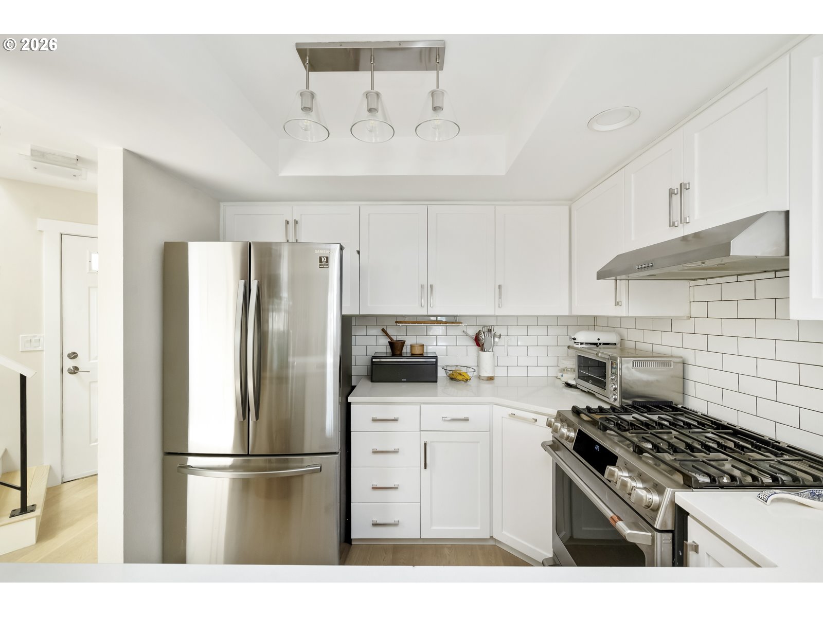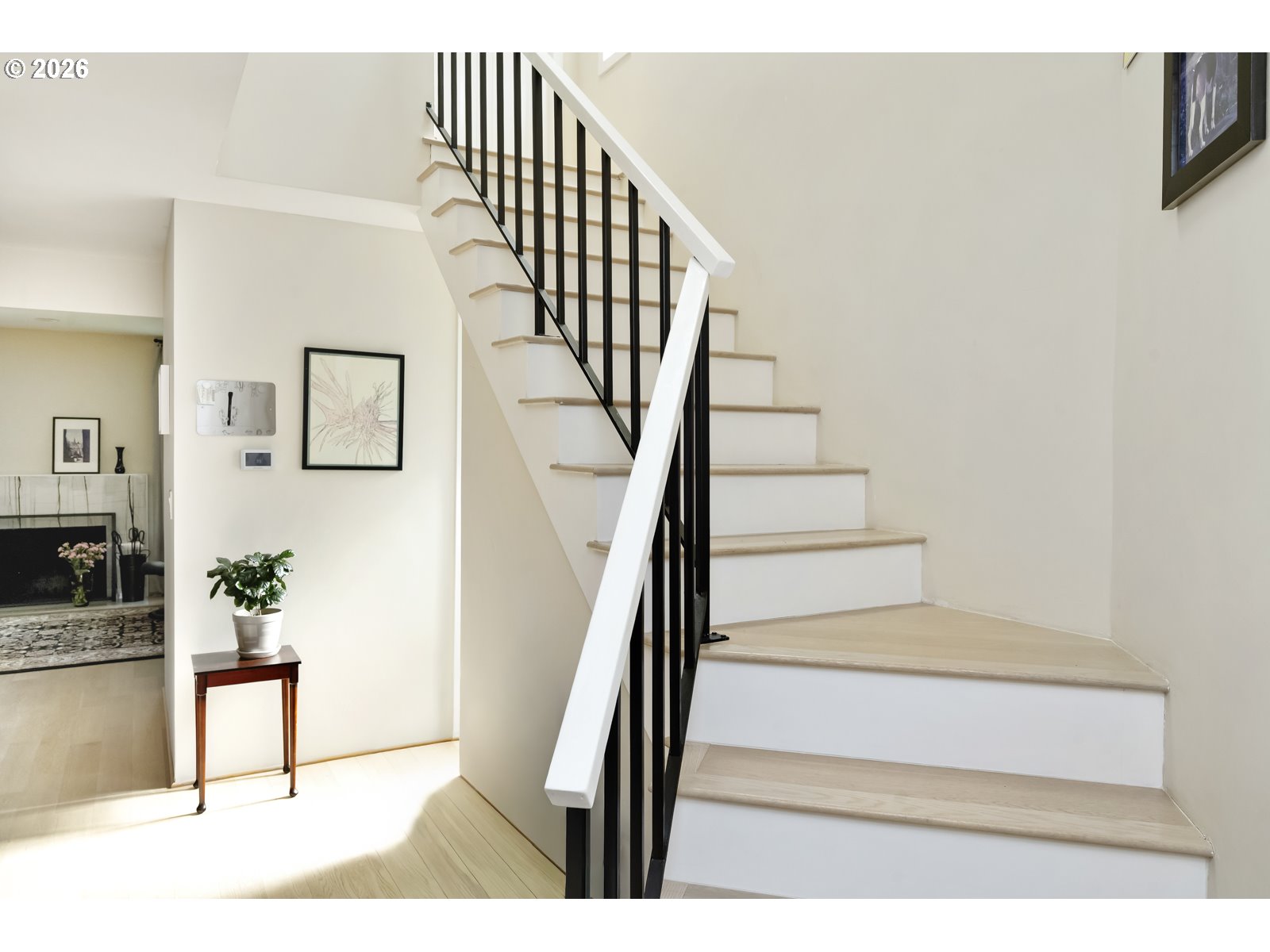 This upgraded townhome offers elegant luxury at an affordable price! Step through the front door and immediately notice the care and attention to detail, with updated engineered wood flooring, smooth-finished walls, and a beautifully tiled fireplace adjacent to your private backyard access! The yard is a rarity for this property type, and it is meticulously landscaped, wonderfully inviting, and includes a patio for al fresco dining during the summer months. The kitchen features newer appliances, quartz countertops, and a convenient breakfast bar for entertaining while you cook. Upstairs, find two spacious bedrooms, each with a recently remodeled ensuite bath featuring sophisticated designer finishes. System updates include: newer Milgard windows (2021), a newer furnace and a/c (2020), and a newer hot water heater (2024). Enjoy living in this excellent West Linn location, with access to a community swimming pool, tennis courts, and pickleball courts. It's also just across the street from Sunburst Park, and a short drive from charming shopping and dining options on Historic Willamette Main Street.