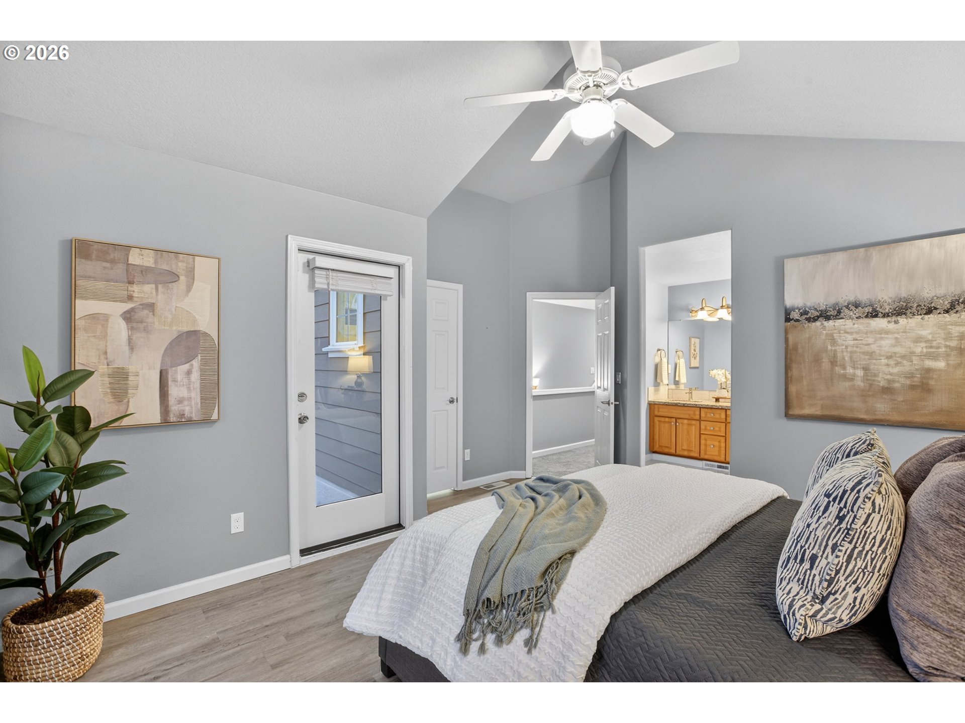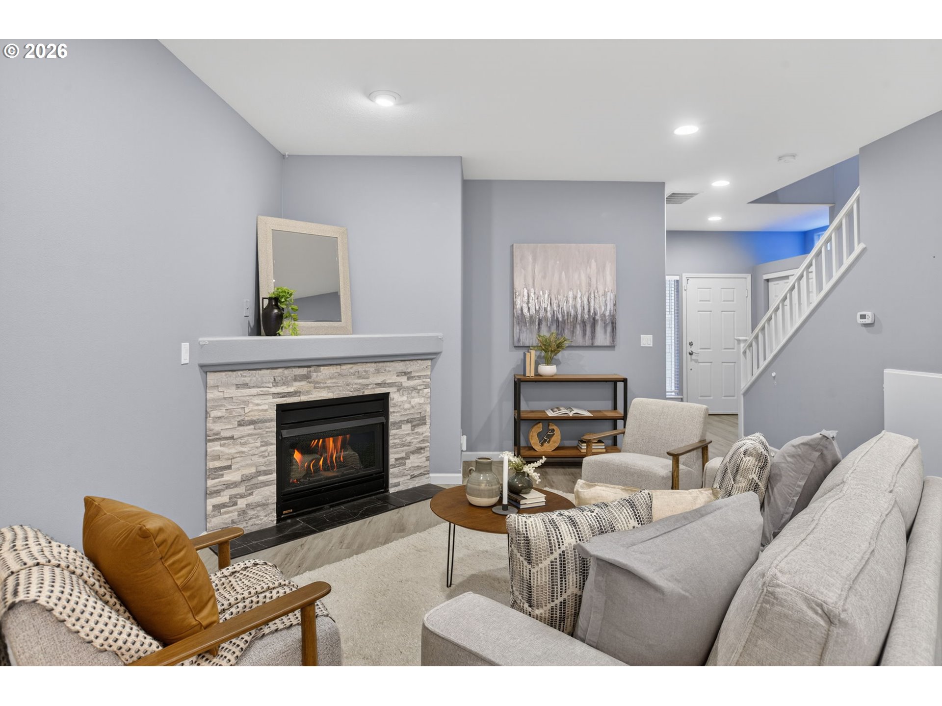Rare 3 BD, 2.5 BA end-unit townhouse in West Linn's Hoodview Estates offers one of the largest backyards in the development and a wonderful blend of privacy, elevated design and effortless living! Please watch HOME TOUR VIDEO to see how large this lot is! Upon entering, the open floor plan and gas fireplace in the family room create a cozy atmosphere that just feels like home. And the extensive renovation work completed in the recent past still feels fresh and new! No detail was overlooked from luxury flooring to gorgeous granite countertops, custom backsplash tile, stainless steel appliances and more. The subtle feeling of luxury extends into the large primary suite with vaulted ceilings, great natural light, a dazzling ensuite bathroom with dual vanity, large walk-in shower, premium fixtures, surfaces and materials. It truly lives like your own retreat with a private patio that offers lovely territorial views and makes a great place to enjoy your morning coffee or a glass of Pinot as the sun goes down! Step into the back and you'll discover a covered patio and fenced yard that may be the largest one in the community! There's plenty of space for entertaining, kids, pets and more, plus an attached garage with storage and dedicated driveway. Exterior maintenance and improvements include newer roof, paint, gutters and more. Top West Linn schools, summer concerts at Tanner Springs Park, shopping and freeway access are all just a short distance away from this truly special townhouse you'll love to call home!