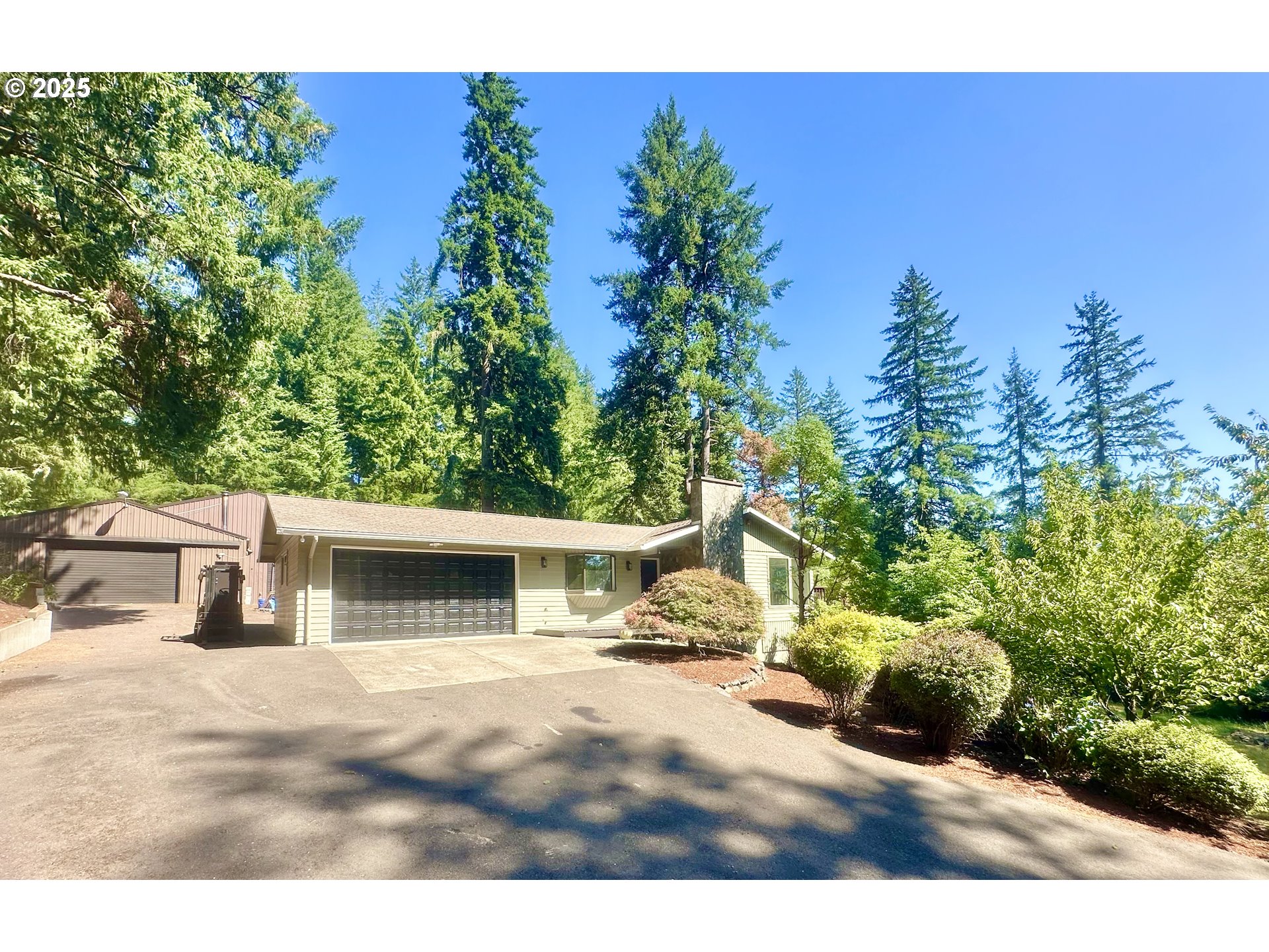 Huge price reduction! Escape to this cozy country home nestled on 4.55 picturesque acres of land. This enchanting Ranch with daylight basement home offers the perfect blend of comfort, space, and breathtaking scenery. This property is a dream come true for those seeking a tranquil rural lifestyle without sacrificing modern conveniences. Featuring 4 spacious bedrooms & 3 bathrooms, this home has lots of room for everyone. Beautiful slate entryway leads to open living room with custom stone fireplace and sliding door to balcony. Master suite with double closets. Lower-level family room with wet bar, cozy wood stove and sliding door to patio, 4th bedroom, bonus room and amazing storage room. Relax in the incredible sauna room with soft lighting and sauna rocks. New paint through interior and exterior, Upgraded quartz countertops in the kitchen and bathroom. New carpet in the basement family room and bedroom. Incredible 3900 sq foot shop! Multiple outdoor living areas with several decks, fire pit, covered area. Fruit trees, apple trees, blueberries, garden. Enjoy peace of mind with two secure entry gates controlling access to this private estate. Such a beautiful property!
