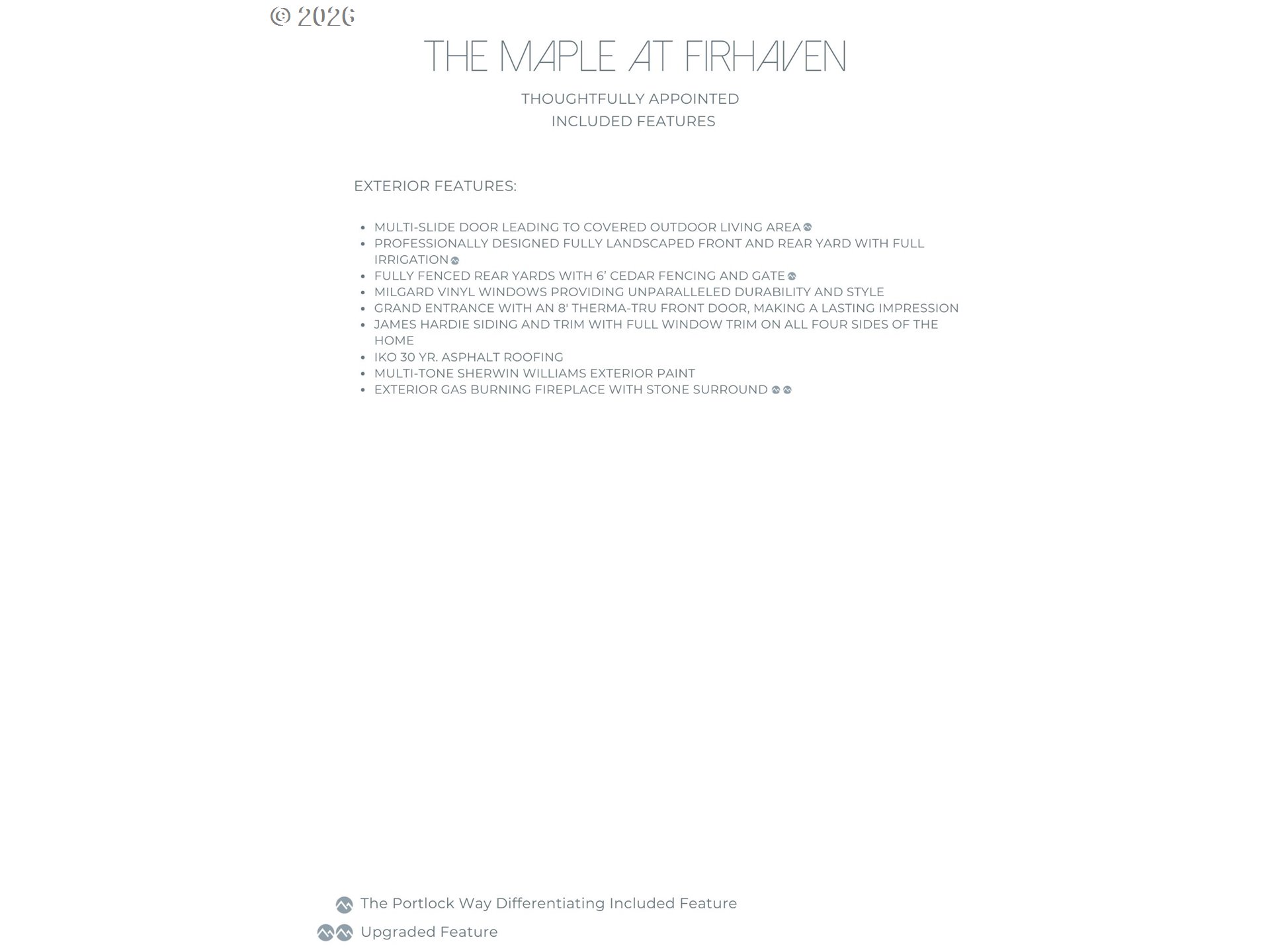 Introducing The Maple at Fir Haven — the second of two luxury homes by The Portlock Company in West Linn’s highly desirable Willamette neighborhood. The open-concept main level includes a gourmet kitchen with large pantry, cozy breakfast nook, formal dining, and a great room with multi-slide door that opens to a covered outdoor living space with inviting outdoor fireplace. A main-level bedroom and full bath with walk-in shower offer flexibility for guests or multi-generational living, along with a convenient mudroom off the garage. Upstairs you'll find a spacious primary suite with spa-inspired ensuite and walk-in closet, a second bedroom with its own ensuite, two more generous sized bedrooms that with shared full bath, a large bonus room with vaulted ceilings, and a functional laundry room connected directly to the primary closet. This thoughtfully designed home also features a hard to find three-car garage. Expect quality craftsmanship and high-end finishes throughout. Prime location close to top-rated schools, parks, restaurants, and everyday conveniences. Ready-To-Live October 2026.