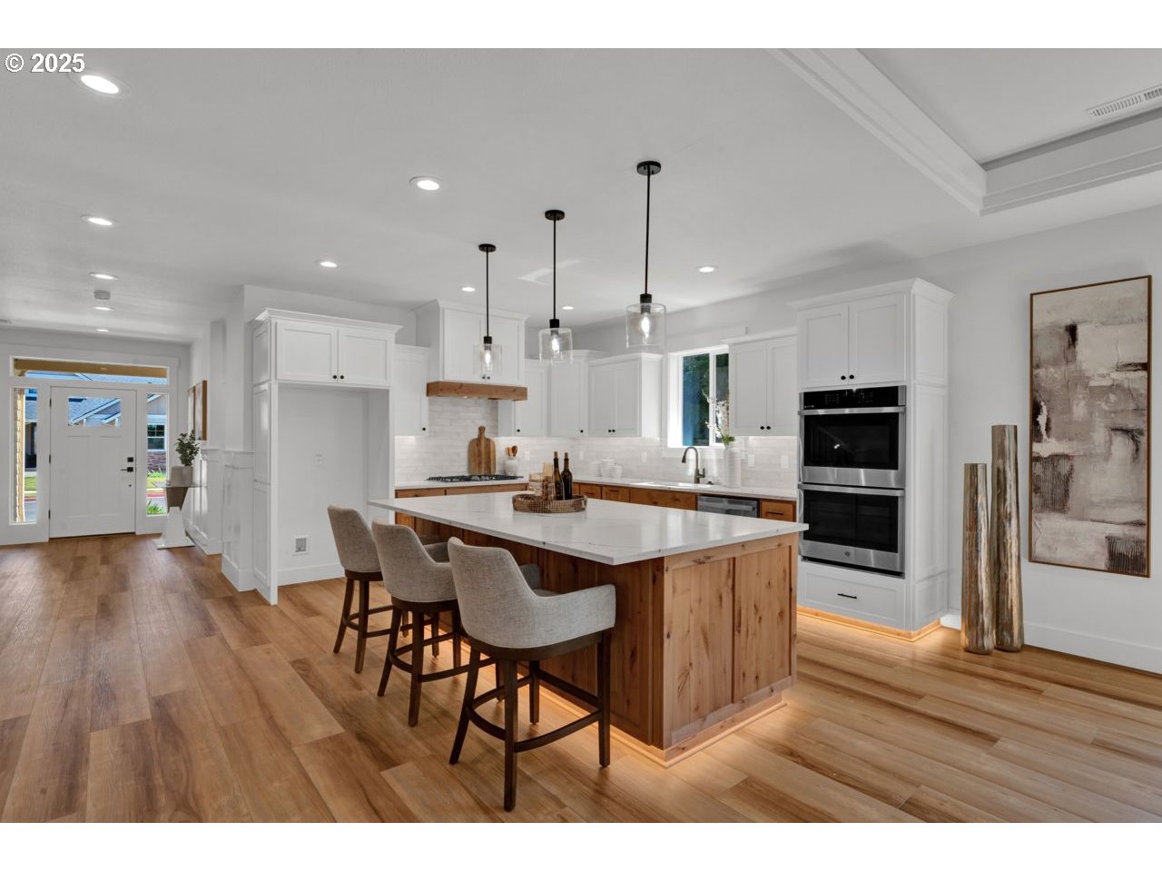 (503) 893-8874Seller is motivated and offering in closing costs, also willing to plant Leyland Cypress trees or Arborvitaes along the rear fenceline. Primary bedroom on main floor. New home with builder's 1yr warranty. This is the most elegant home you'll find, a true gem in the Canby area, and best of all, NO HOA FEES! Located on the tranquil edge of North Canby, this exquisite residence is just steps away from a scenic walking trail along the Willamette River. Spanning 2,850 sq. ft., the home features 4 spacious bedrooms and 3 luxurious bathrooms. The culinary-inspired kitchen boasts custom cabinets with under-cabinet lighting, elegant quartz countertops, a stylish tile backsplash, a generous island, and state-of-the-art stainless-steel appliances, including a gas cooktop and double oven. The inviting main floor showcases charming wainscoting and seamlessly connects the primary bedroom with two additional bedrooms. Head up to the upper level to find a versatile bonus/family room and a fourth bedroom, all enhanced by beautifully crafted custom handrails. Throughout the home, high-quality luxury vinyl plank (LVP) flooring adds to its sophistication. Retreat to the expansive master suite, featuring a recessed ceiling with lighting and ample natural light. The master bathroom is a serene oasis with custom tile work, a soothing steam-room/shower, a comforting soaker tub, and a stylishly lit mirror. Enjoy organized living with bespoke closet organizers in every room. The impressive 20-foot deep garage includes two 8-foot tall doors—ideal for a lifted full-size pickup. There is also room for an RV on the left side of the home. Outside, the fully landscaped yard offers privacy with fencing, a covered back patio, and a charming front sitting area—perfect for relaxation or entertaining. Experience the best of both worlds: the tranquility of Canby with easy access to Oregon City, I-205, and I-5. This extraordinary home is unique in Canby.