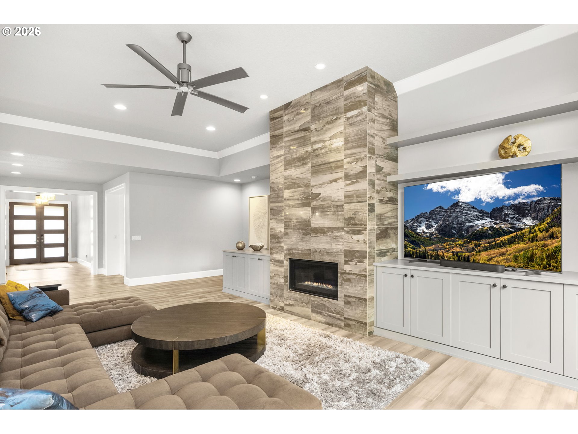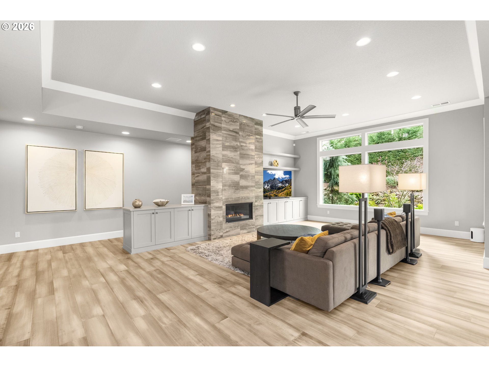 OPEN HOUSE WEDNESDAY 3/25, 4:00-7:00 pm. Stunning main-level luxury living in a like-new Silver Oak custom home in Lake Oswego’s coveted Uplands neighborhood, set on a tranquil and quiet lot with beautiful, thoughtfully designed landscaping. Designed for both entertaining and everyday comfort, the expansive great room features soaring ceilings, walls of windows that flood the space with natural light, and a striking floor-to-ceiling fireplace, creating a warm and sophisticated focal point.The gourmet kitchen is a true showpiece with a large island, premium finishes & appliances, walk-in pantry, and seamless flow to the spacious dining area and covered outdoor living space. The covered patio overlooks the serene, level, fenced yard, offering exceptional privacy and lush landscaping, ideal for gatherings or peaceful outdoor relaxation.The luxurious primary suite offers a serene retreat with a spa-inspired bath, heated floors, and a generous walk-in closet with direct access to the laundry room. A main-level den with large windows provides an ideal work-from-home setup with space for two. Two additional guest bedrooms complete the main level.The versatile lower level features a private guest suite with wet bar & wine refrigerator, perfect for a home theater, family room, or gym, plus a mudroom and abundant storage. A rare double-deep tandem garage accommodates up to four cars.Enjoy lake access via the Uplands swim and boat easement. A beautifully crafted home combining refined design, functional living, and exceptional amenities in one of Lake Oswego’s most desirable communities.