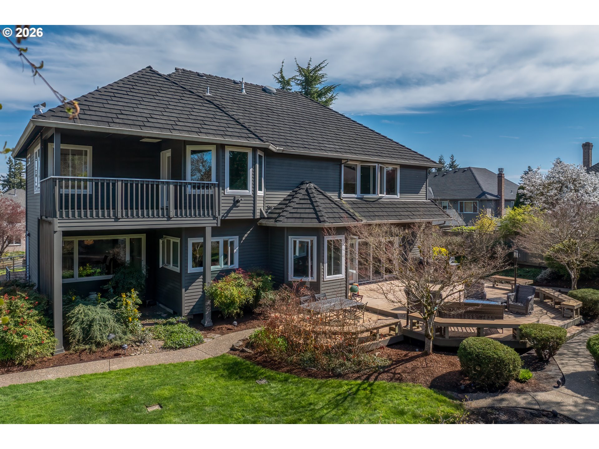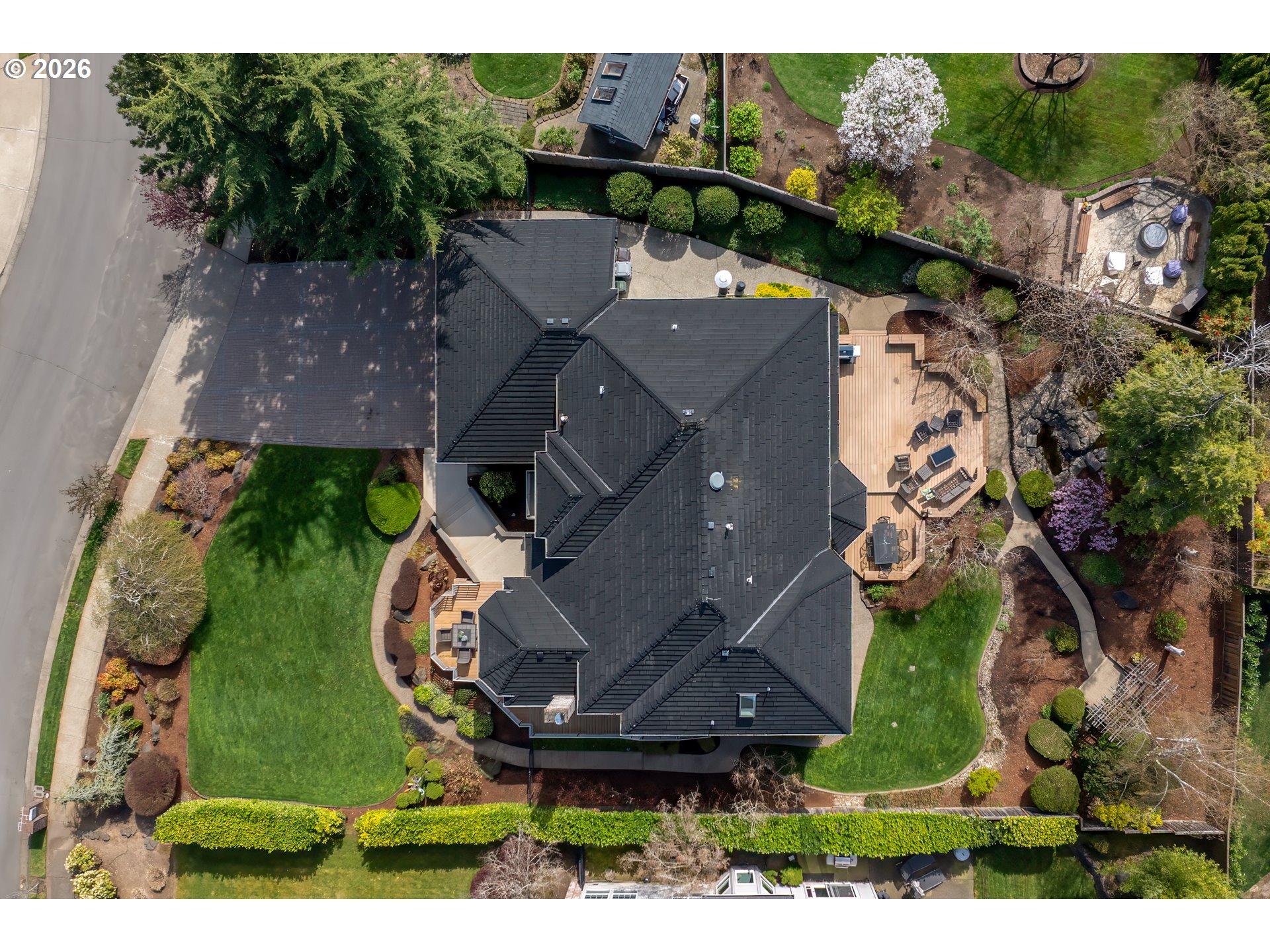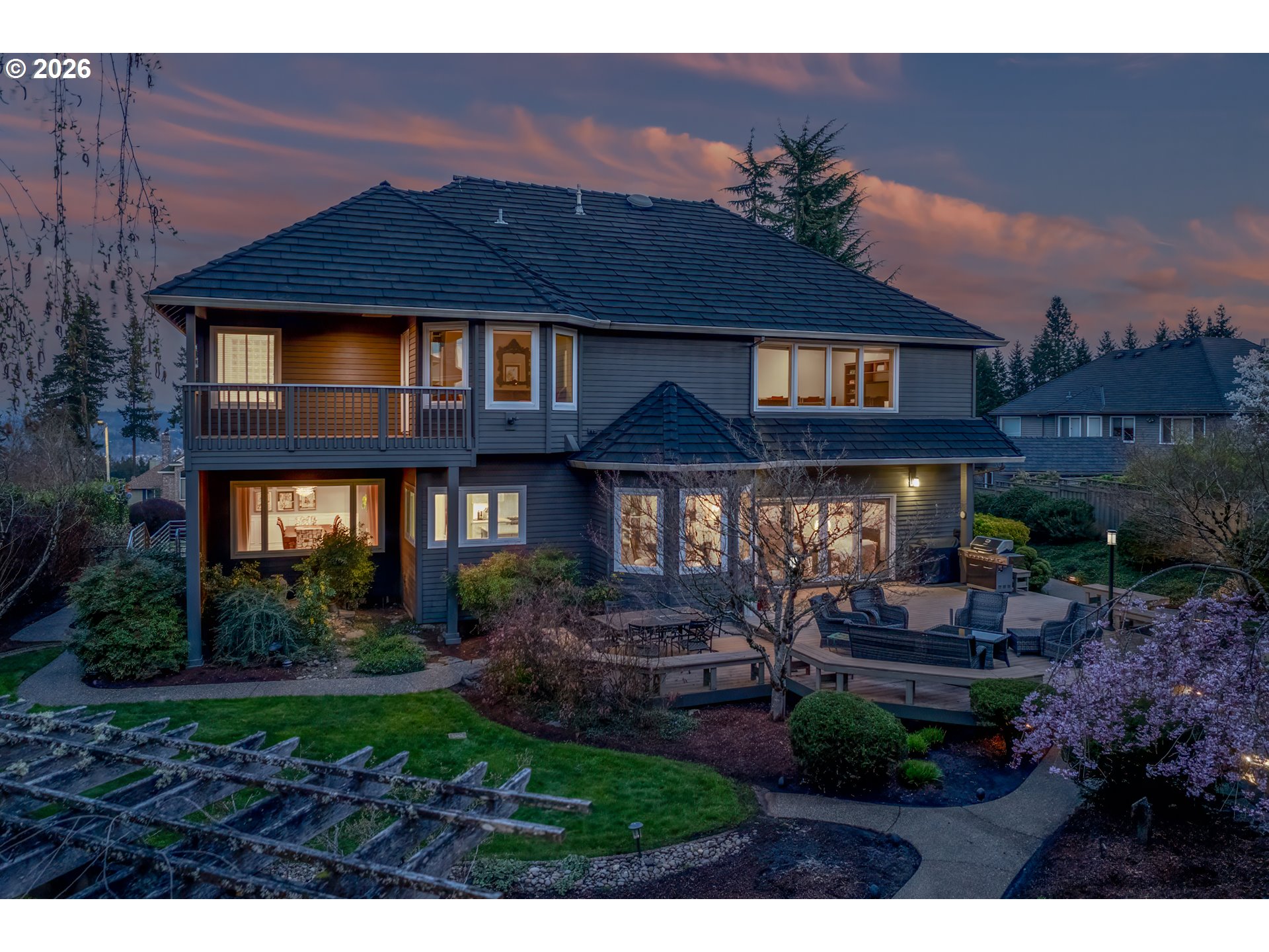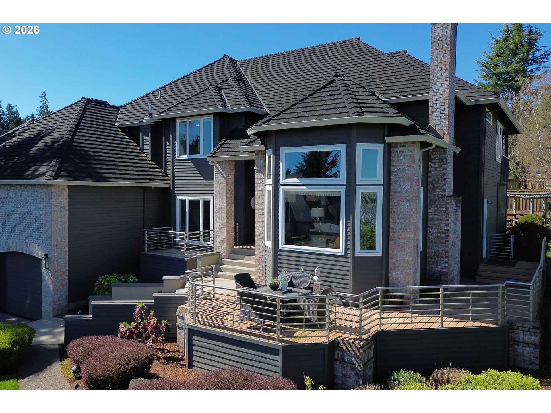 (503) 893-8874Located in the scenic hills of West Linn, this Northwest Contemporary home pairs thoughtful architectural detail with an extraordinary outdoor setting. An expansive Trex deck overlooks a private, impeccably landscaped backyard, where a winding path leads past a stone waterfall and blooming cherry tree to a garden pergola - a beautifully considered outdoor space equally suited to lively gatherings and quiet afternoons. Inside, a dramatic double-height entry sets the tone. The living room is warmed by a gas fireplace beneath soaring angled tray ceilings and flooded with natural light from a two-story bay window with mountain views. The family room, anchored by a second fireplace with sleek floor-to-ceiling porcelain surround, features french door access to the deck, a dry bar with wine cooler, and recessed tray ceilings that flow into the gourmet kitchen. The kitchen is as stylish as it is functional. Heated slate floors, a farmhouse sink, a quartzite island with additional prep sink, surrounding quartz countertops, and Wolf and Sub-Zero appliances complement a sun-drenched breakfast nook that opens to the back deck. The adjacent dining room, graced with elegant wainscoting and a large picture window, offers access to an additional east-facing deck for evening dinners al fresco with sweeping views of hills and mountains. A home office with a coffered ceiling, a powder room, and a laundry room complete the main floor. In addition to two bedrooms, a full bath, and a generous bonus space, the upper level hosts a spacious primary suite featuring angled tray ceilings, wainscoting, and a sitting area that leads to a private balcony. In the en suite bath, a double vanity complements a soaking tub, a shower with multi-head body spray system, and a walk-in closet. A three-car garage provides ample storage. West Linn is home to top-tier schools, celebrated wineries, and a charming historic main street, all within 30 minutes of downtown Portland.