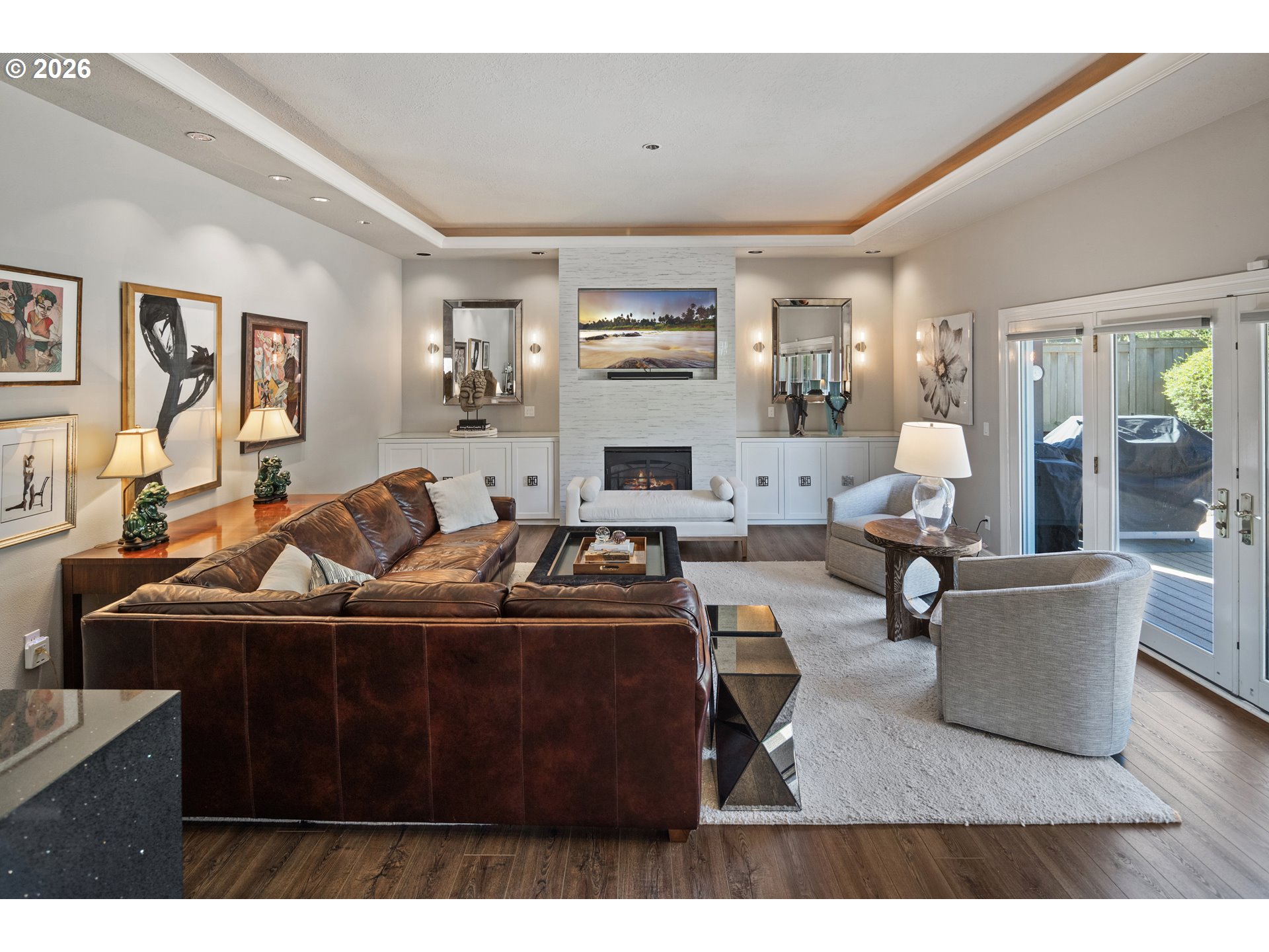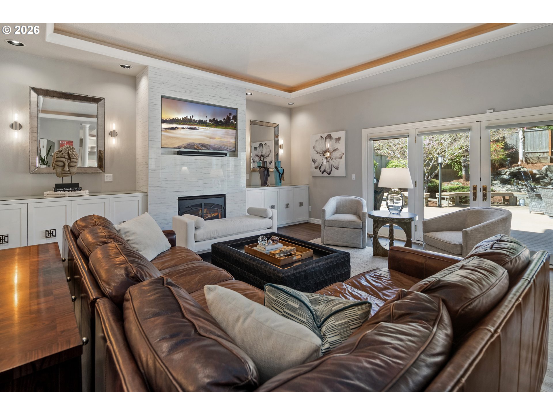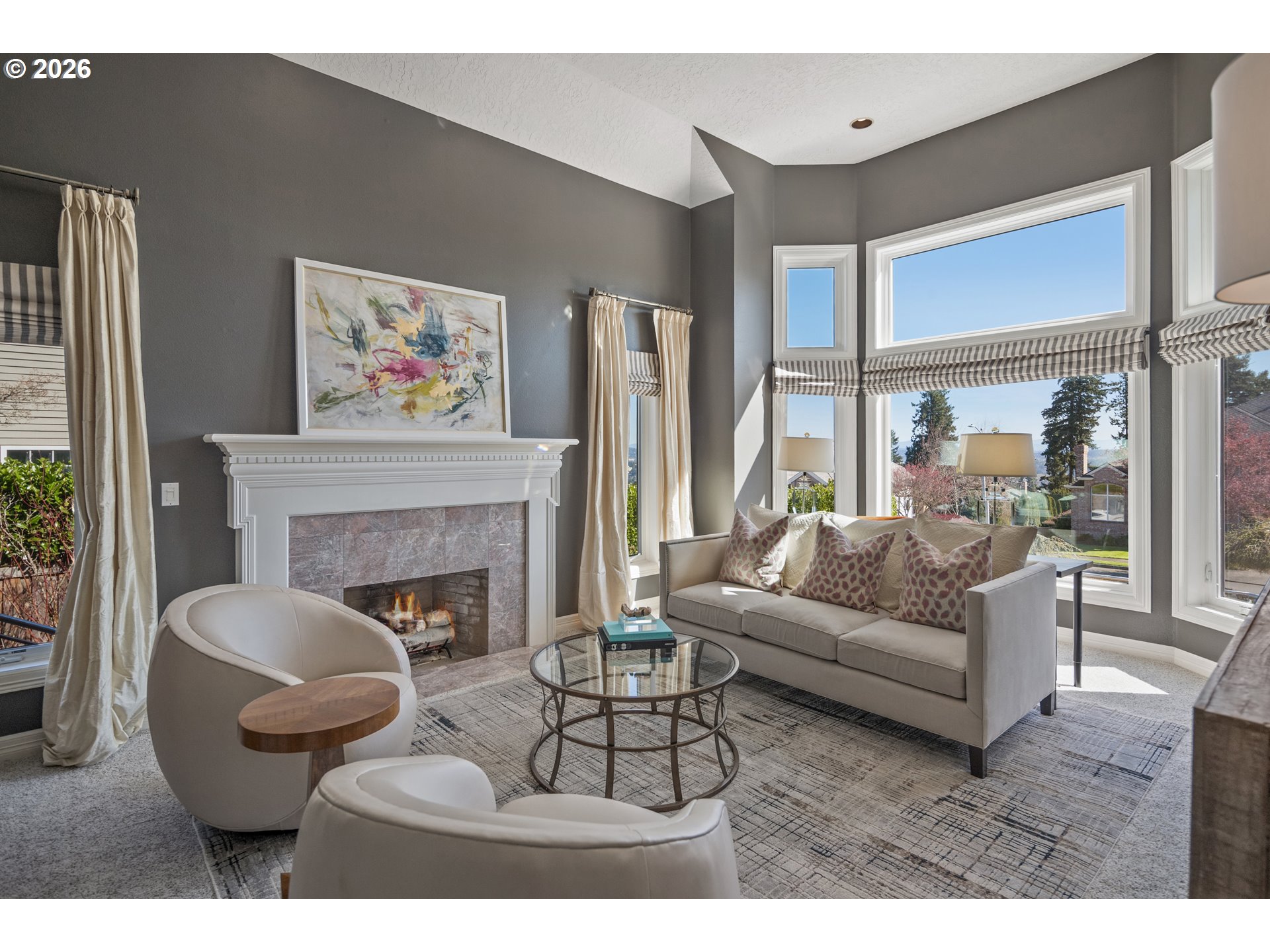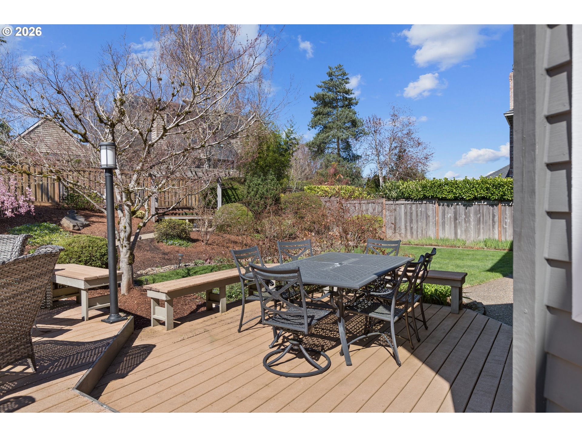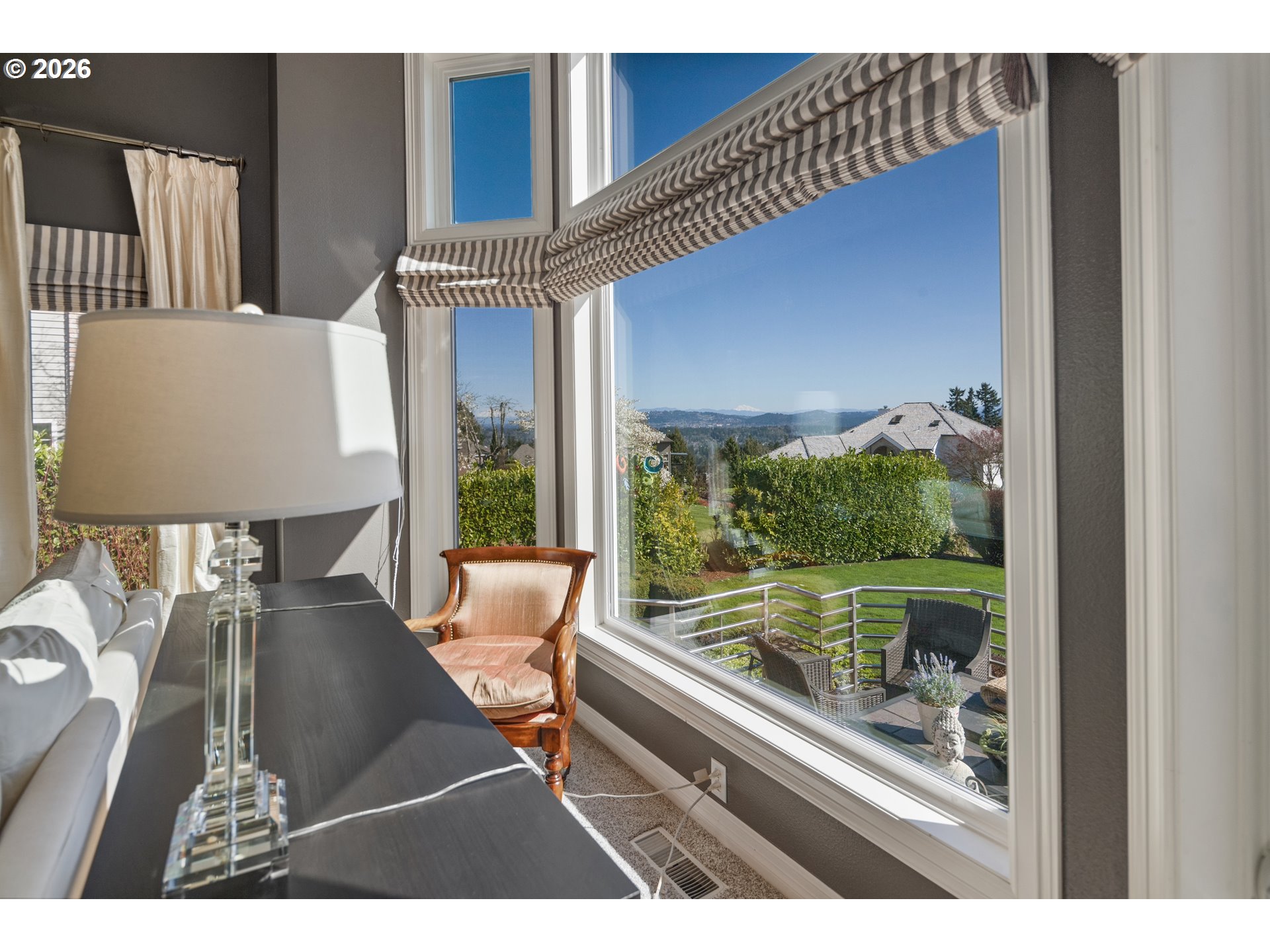 (503) 893-8874Located in the scenic hills of West Linn, this Northwest Contemporary home pairs thoughtful architectural detail with an extraordinary outdoor setting. An expansive Trex deck overlooks a private, impeccably landscaped backyard, where a winding path leads past a stone waterfall and blooming cherry tree to a garden pergola - a beautifully considered outdoor space equally suited to lively gatherings and quiet afternoons. Inside, a dramatic double-height entry sets the tone. The living room is warmed by a gas fireplace beneath soaring angled tray ceilings and flooded with natural light from a two-story bay window with mountain views. The family room, anchored by a second fireplace with sleek floor-to-ceiling porcelain surround, features french door access to the deck, a dry bar with wine cooler, and recessed tray ceilings that flow into the gourmet kitchen. The kitchen is as stylish as it is functional. Heated slate floors, a farmhouse sink, a quartzite island with additional prep sink, surrounding quartz countertops, and Wolf and Sub-Zero appliances complement a sun-drenched breakfast nook that opens to the back deck. The adjacent dining room, graced with elegant wainscoting and a large picture window, offers access to an additional east-facing deck for evening dinners al fresco with sweeping views of hills and mountains. A home office with a coffered ceiling, a powder room, and a laundry room complete the main floor. In addition to two bedrooms, a full bath, and a generous bonus space, the upper level hosts a spacious primary suite featuring angled tray ceilings, wainscoting, and a sitting area that leads to a private balcony. In the en suite bath, a double vanity complements a soaking tub, a shower with multi-head body spray system, and a walk-in closet. A three-car garage provides ample storage. West Linn is home to top-tier schools, celebrated wineries, and a charming historic main street, all within 30 minutes of downtown Portland.