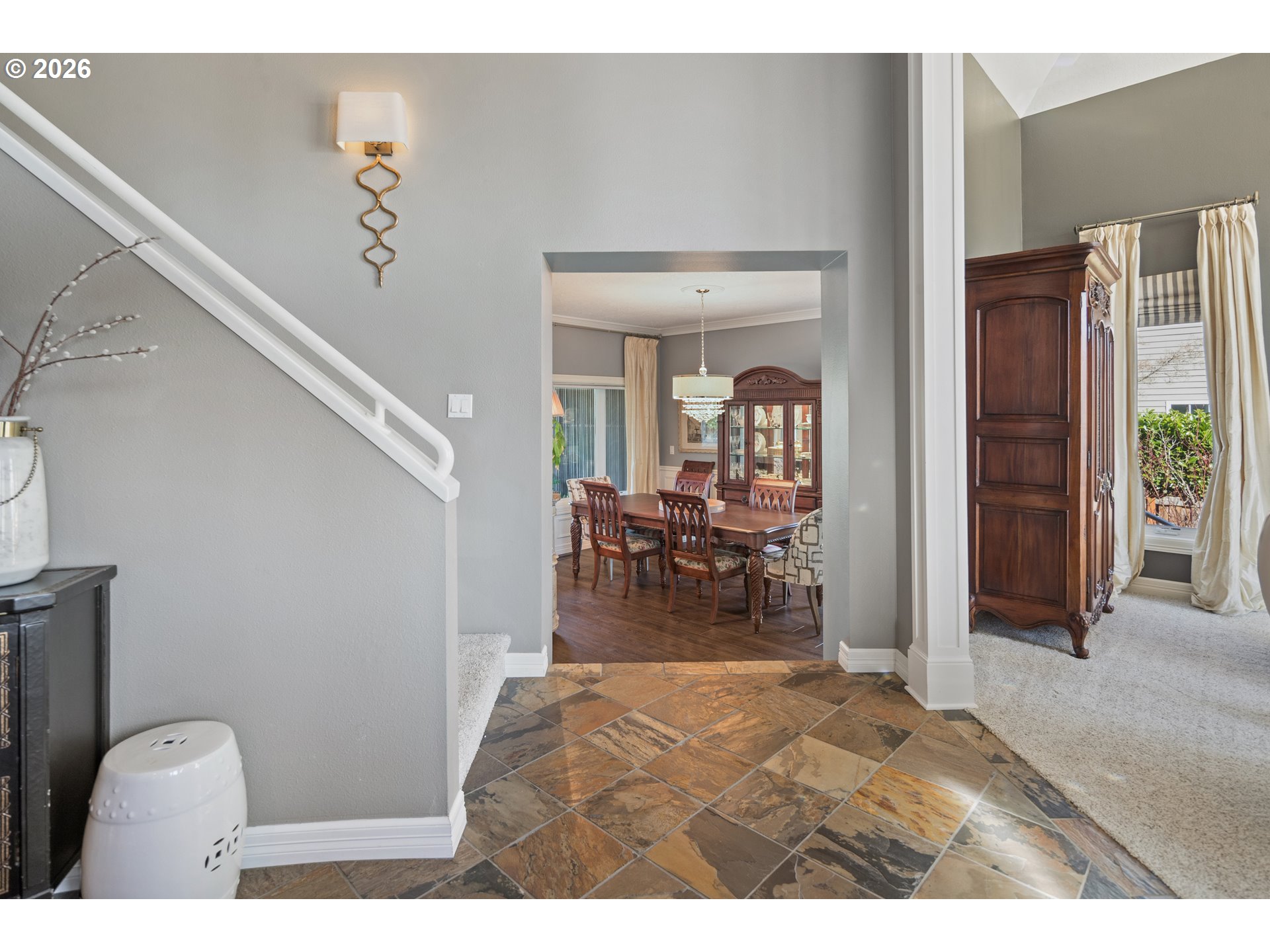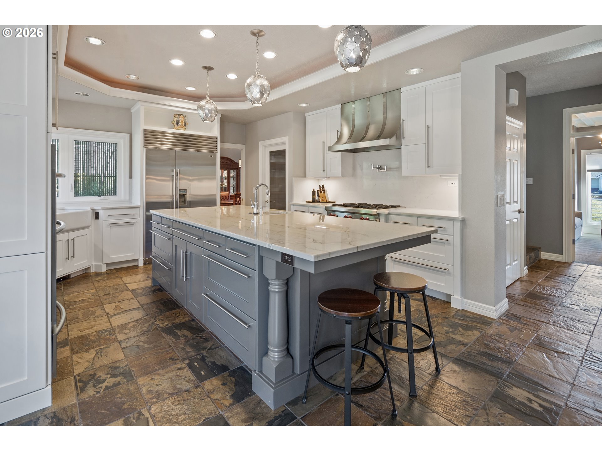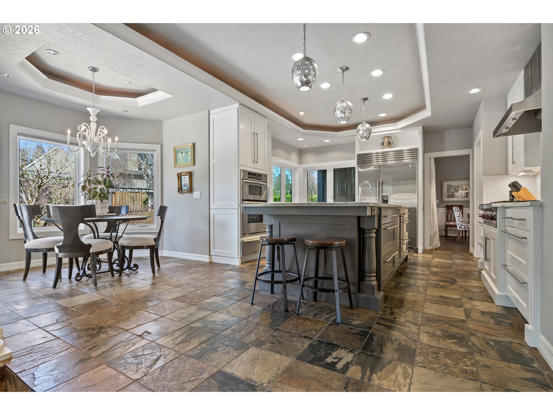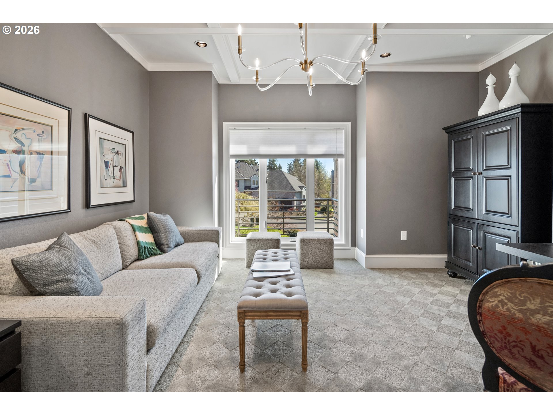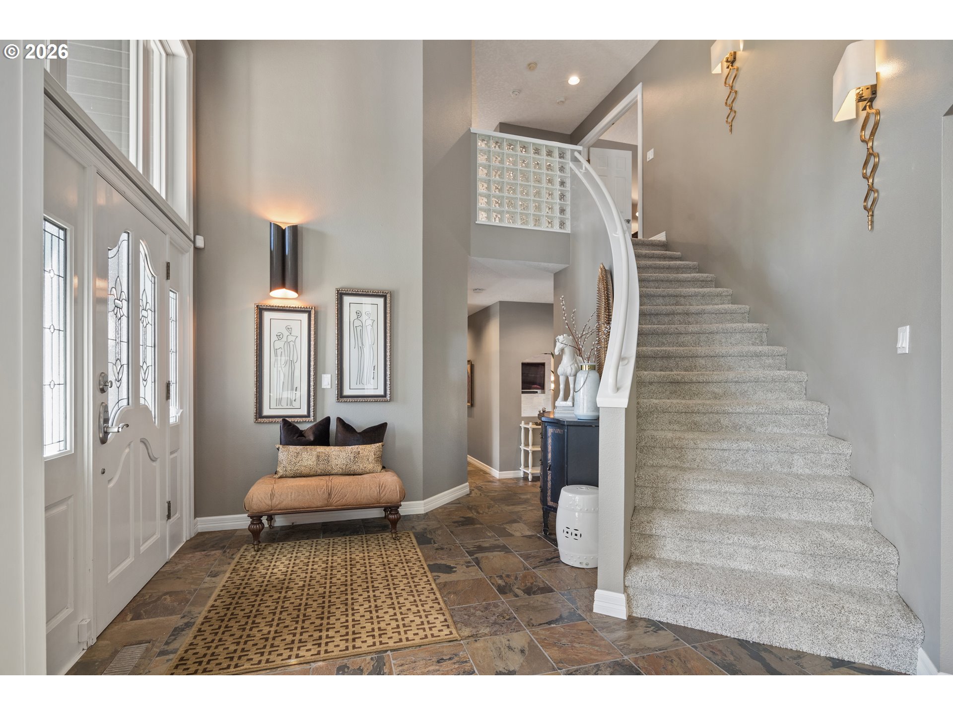 (503) 893-8874Located in the scenic hills of West Linn, this Northwest Contemporary home pairs thoughtful architectural detail with an extraordinary outdoor setting. An expansive Trex deck overlooks a private, impeccably landscaped backyard, where a winding path leads past a stone waterfall and blooming cherry tree to a garden pergola - a beautifully considered outdoor space equally suited to lively gatherings and quiet afternoons. Inside, a dramatic double-height entry sets the tone. The living room is warmed by a gas fireplace beneath soaring angled tray ceilings and flooded with natural light from a two-story bay window with mountain views. The family room, anchored by a second fireplace with sleek floor-to-ceiling porcelain surround, features french door access to the deck, a dry bar with wine cooler, and recessed tray ceilings that flow into the gourmet kitchen. The kitchen is as stylish as it is functional. Heated slate floors, a farmhouse sink, a quartzite island with additional prep sink, surrounding quartz countertops, and Wolf and Sub-Zero appliances complement a sun-drenched breakfast nook that opens to the back deck. The adjacent dining room, graced with elegant wainscoting and a large picture window, offers access to an additional east-facing deck for evening dinners al fresco with sweeping views of hills and mountains. A home office with a coffered ceiling, a powder room, and a laundry room complete the main floor. In addition to two bedrooms, a full bath, and a generous bonus space, the upper level hosts a spacious primary suite featuring angled tray ceilings, wainscoting, and a sitting area that leads to a private balcony. In the en suite bath, a double vanity complements a soaking tub, a shower with multi-head body spray system, and a walk-in closet. A three-car garage provides ample storage. West Linn is home to top-tier schools, celebrated wineries, and a charming historic main street, all within 30 minutes of downtown Portland.