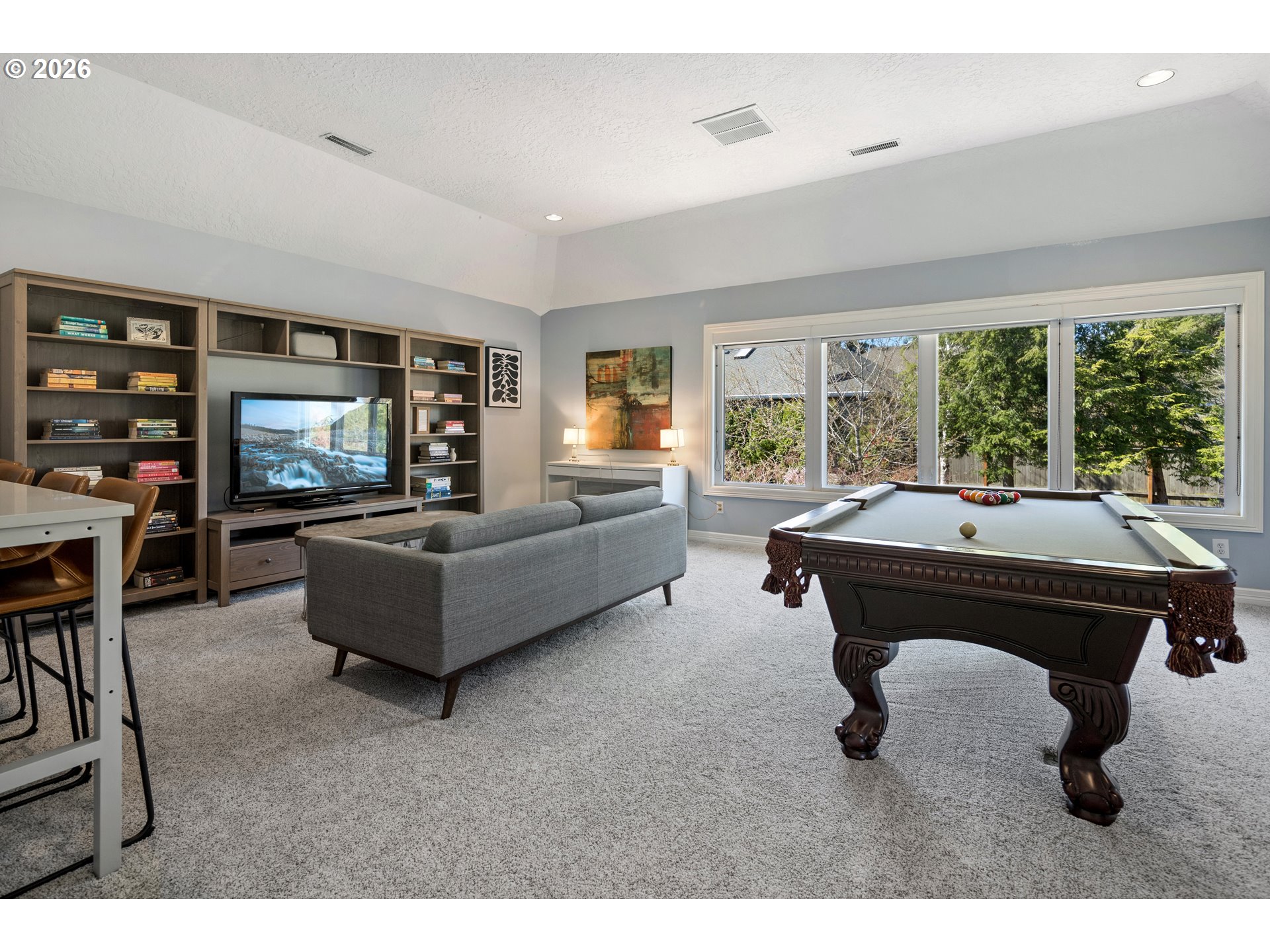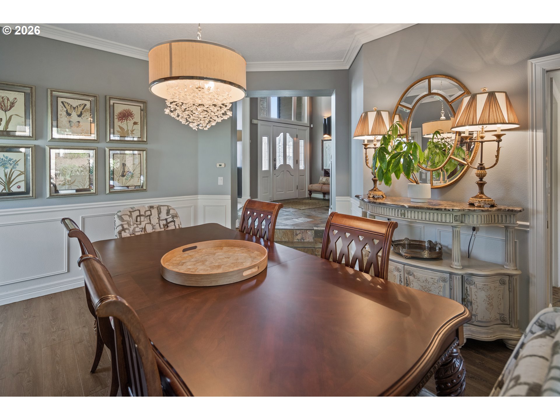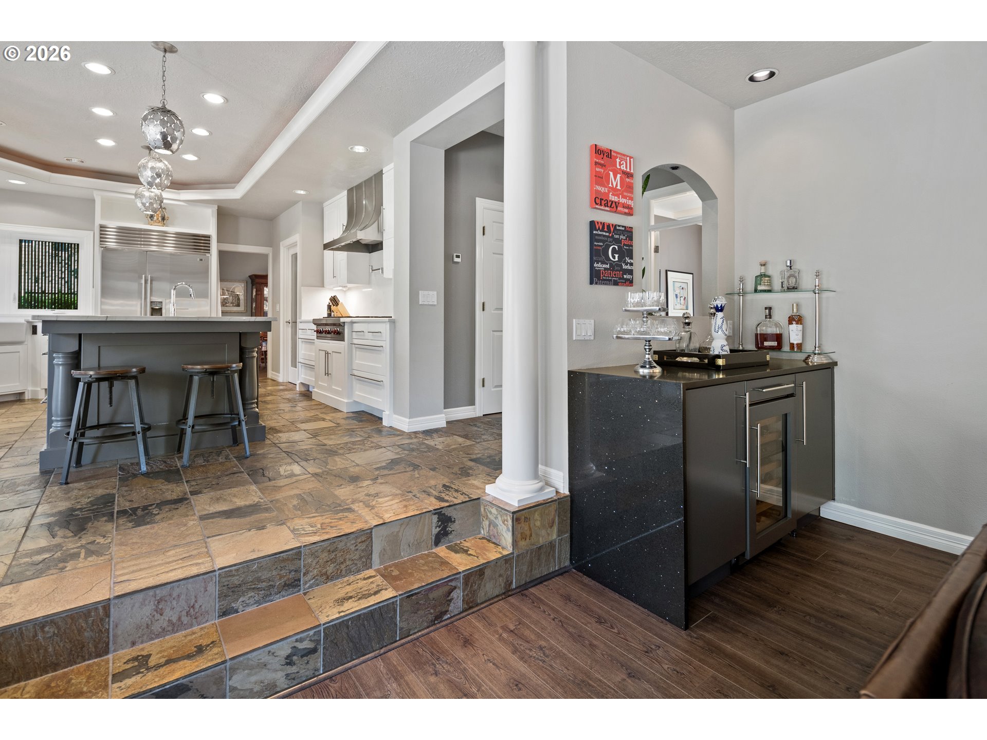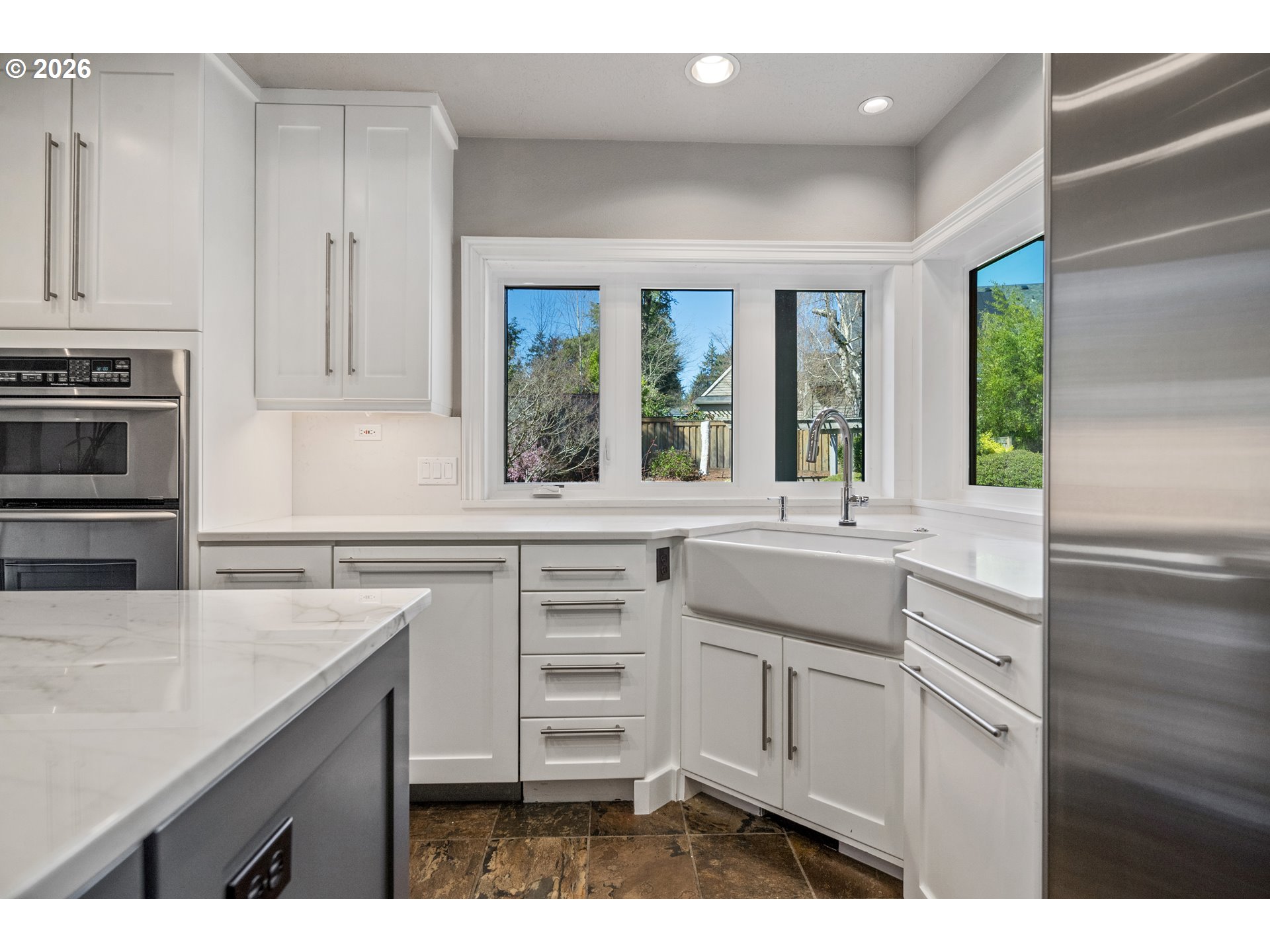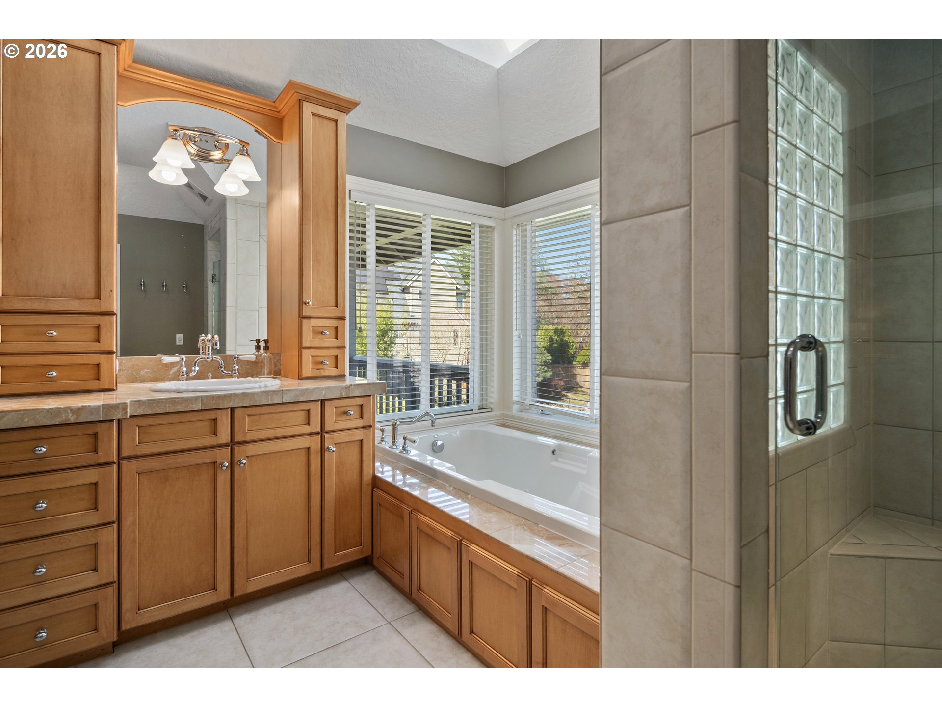 (503) 893-8874Located in the scenic hills of West Linn, this Northwest Contemporary home pairs thoughtful architectural detail with an extraordinary outdoor setting. An expansive Trex deck overlooks a private, impeccably landscaped backyard, where a winding path leads past a stone waterfall and blooming cherry tree to a garden pergola - a beautifully considered outdoor space equally suited to lively gatherings and quiet afternoons. Inside, a dramatic double-height entry sets the tone. The living room is warmed by a gas fireplace beneath soaring angled tray ceilings and flooded with natural light from a two-story bay window with mountain views. The family room, anchored by a second fireplace with sleek floor-to-ceiling porcelain surround, features french door access to the deck, a dry bar with wine cooler, and recessed tray ceilings that flow into the gourmet kitchen. The kitchen is as stylish as it is functional. Heated slate floors, a farmhouse sink, a quartzite island with additional prep sink, surrounding quartz countertops, and Wolf and Sub-Zero appliances complement a sun-drenched breakfast nook that opens to the back deck. The adjacent dining room, graced with elegant wainscoting and a large picture window, offers access to an additional east-facing deck for evening dinners al fresco with sweeping views of hills and mountains. A home office with a coffered ceiling, a powder room, and a laundry room complete the main floor. In addition to two bedrooms, a full bath, and a generous bonus space, the upper level hosts a spacious primary suite featuring angled tray ceilings, wainscoting, and a sitting area that leads to a private balcony. In the en suite bath, a double vanity complements a soaking tub, a shower with multi-head body spray system, and a walk-in closet. A three-car garage provides ample storage. West Linn is home to top-tier schools, celebrated wineries, and a charming historic main street, all within 30 minutes of downtown Portland.