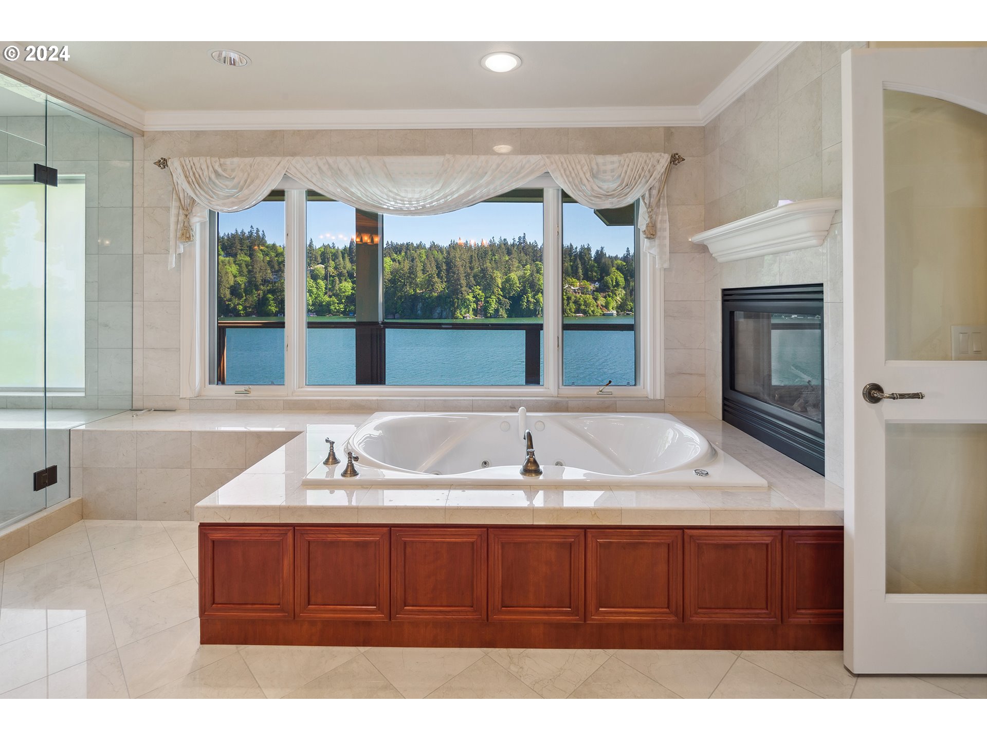 (503) 893-8874STUNNING WELL BUILT TRADITIONAL WITH COMMANDING 180 DEGREE VIEWS OF OSWEGO LAKE. LOCATED ON A CUL-DE-SAC. 3 STOP ELEVATOR. FLOOR TO CEILING WINDOWS. SPACIOUS BONUS ROOM WITH WET BAR. SELF COOLING WINE CELLAR. SAUNA. LARGE INTERIOR WORKSHOP. OVERSIZE 3 CAR GARAGE. BOAT HOUSE, DOCK & LIFT. SQ FT PER COUNTY RECORD.ANNUAL LAKE CORP FEE $2856 & ONE TIME LAKE CORP TRANSFER FEE $7500.