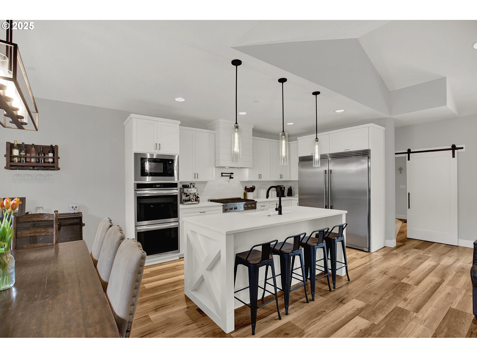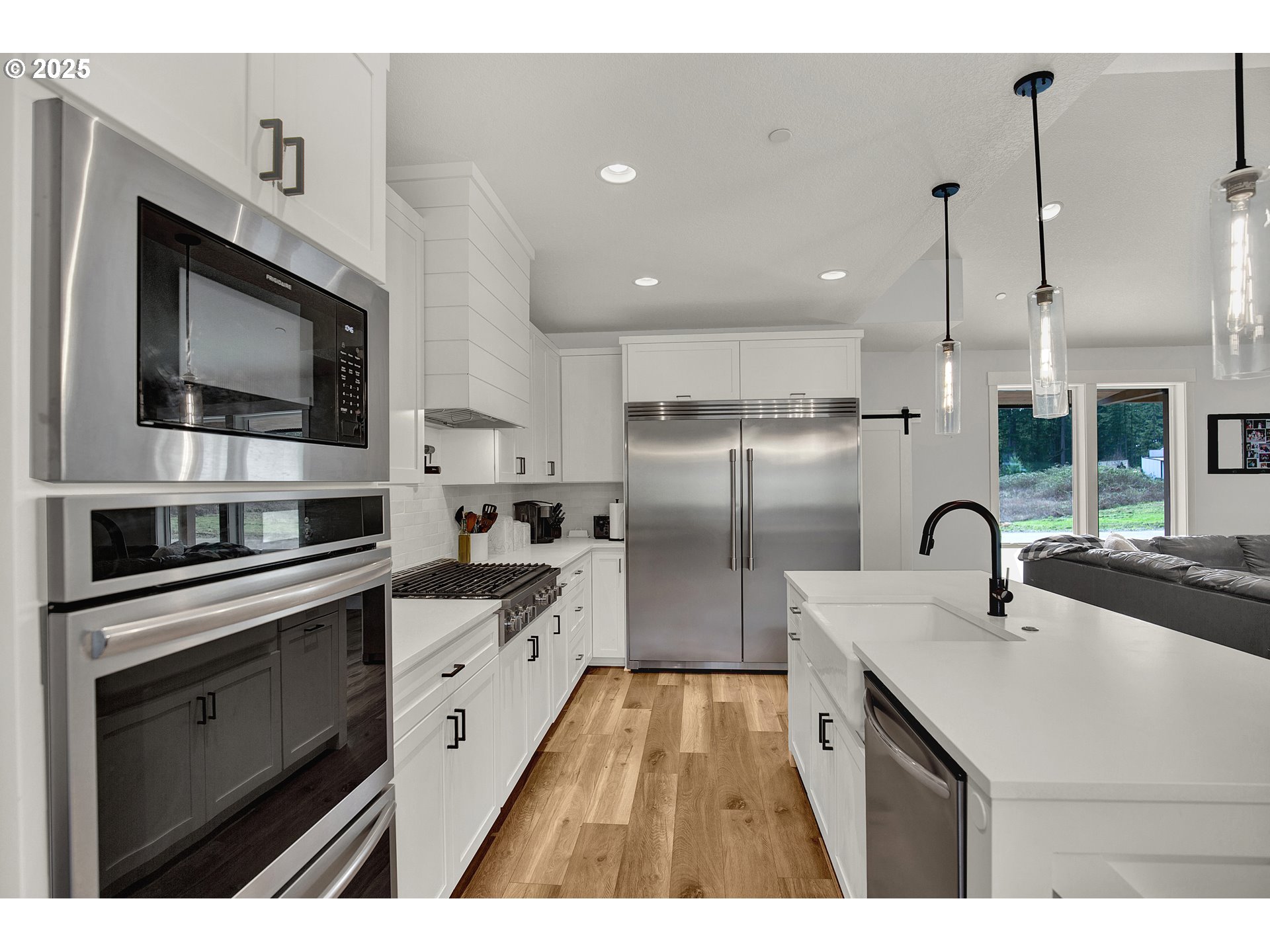 Discover this exquisite 2022 custom-built craftsman by Stone Creek Builders. Set on 4.05 acres, this 2-story home offers 5 bedrooms, 3.1 bathrooms of luxurious living space, complete with an attached ADU. 5-car attached shop, complete with finished entertainment space. Enjoy top-of-the-line modern amenities like Navien instantaneous hot water heaters, a Generac whole-home backup generator, and a ChargePoint car charging station in the 3-car garage. The home is wired for network and access points, with optional exterior security cameras. Energy efficiency is ensured with an Energy Star-rated furnace, heat pump with propane backup, and a soft water filtration system. Safety features include a fire suppression system for the home and ADU, and high lumen exterior floodlights. The gourmet kitchen boasts quartz counters, custom cabinets, Frigidaire Gallery double ovens with air fryer, Electrolux 6-burner propane cooktop with pot filler, and a Frigidaire Professional oversized fridge and freezer. Experience the perfect blend of modern amenities and rural tranquility in this exceptional home.