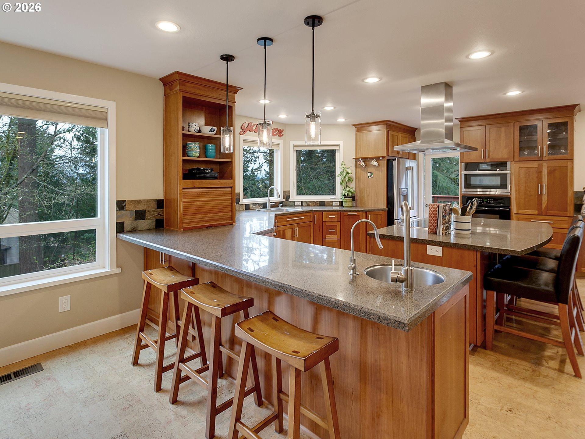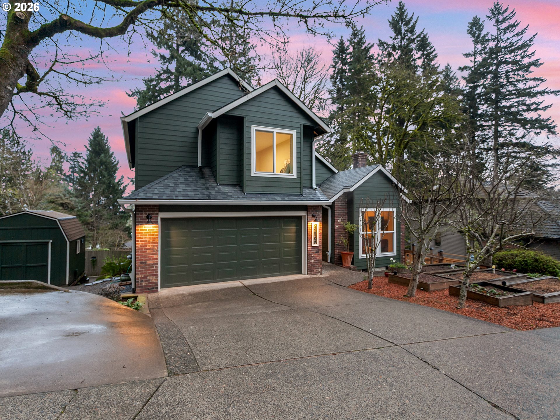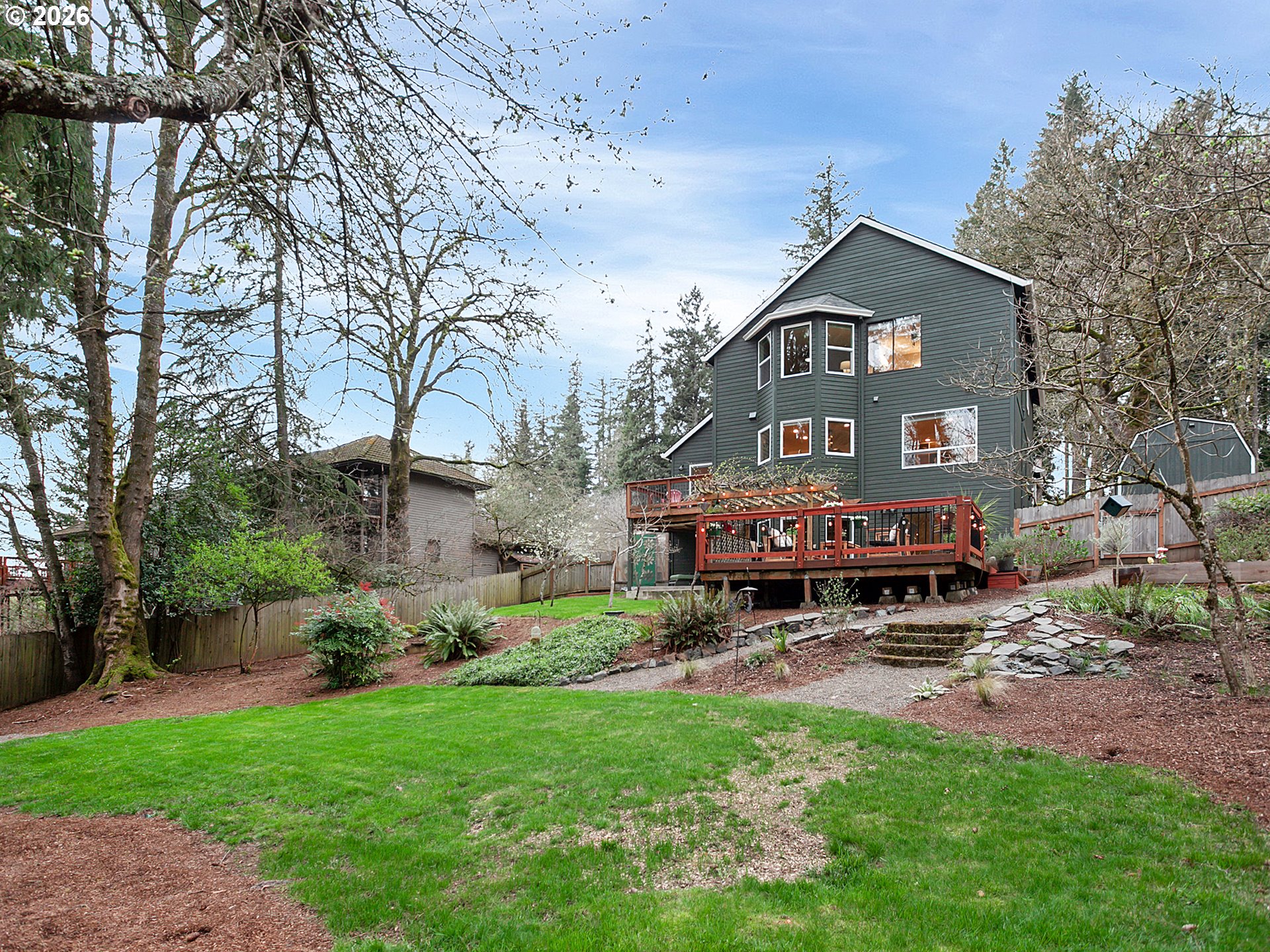 Open House Saturday 3/28 2-4pm. Meticulously maintained throughout, this exceptional home combines thoughtful updates with spacious, flexible living. Recent improvements include brand-new exterior siding, fresh paint, and a newer roof, giving the home outstanding curb appeal. Inside, soaring ceilings in the living room create a bright and inviting atmosphere, anchored by a cozy fireplace and complemented by fresh interior paint. Just beyond the dining room, the expansive chef’s kitchen is designed for both everyday living and entertaining, featuring custom cabinetry, granite countertops, an induction cooktop with hood, abundant counter space, and a full wall of built-ins, perfect for a craft room, workspace, or additional storage. Upstairs, you’ll find three spacious bedrooms along with a spa-like primary suite showcasing a beautiful beam ceiling, soaking tub, double vanities, and a generous walk-in closet. The lower level offers excellent versatility with a designated office space, an oversized bedroom, complete with a built-in Murphy bed, a full bathroom, and a comfortable family room. Step outside to enjoy your serene backyard retreat from either of two expansive decks. The outdoor space is a gardener’s dream, featuring a greenhouse with the beginnings of a hydroponic irrigation system, built-in planter boxes, and two storage sheds. Ideally located within walking distance to multiple parks, schools, and neighborhood amenities, this home offers the perfect blend of comfort, functionality, and location.