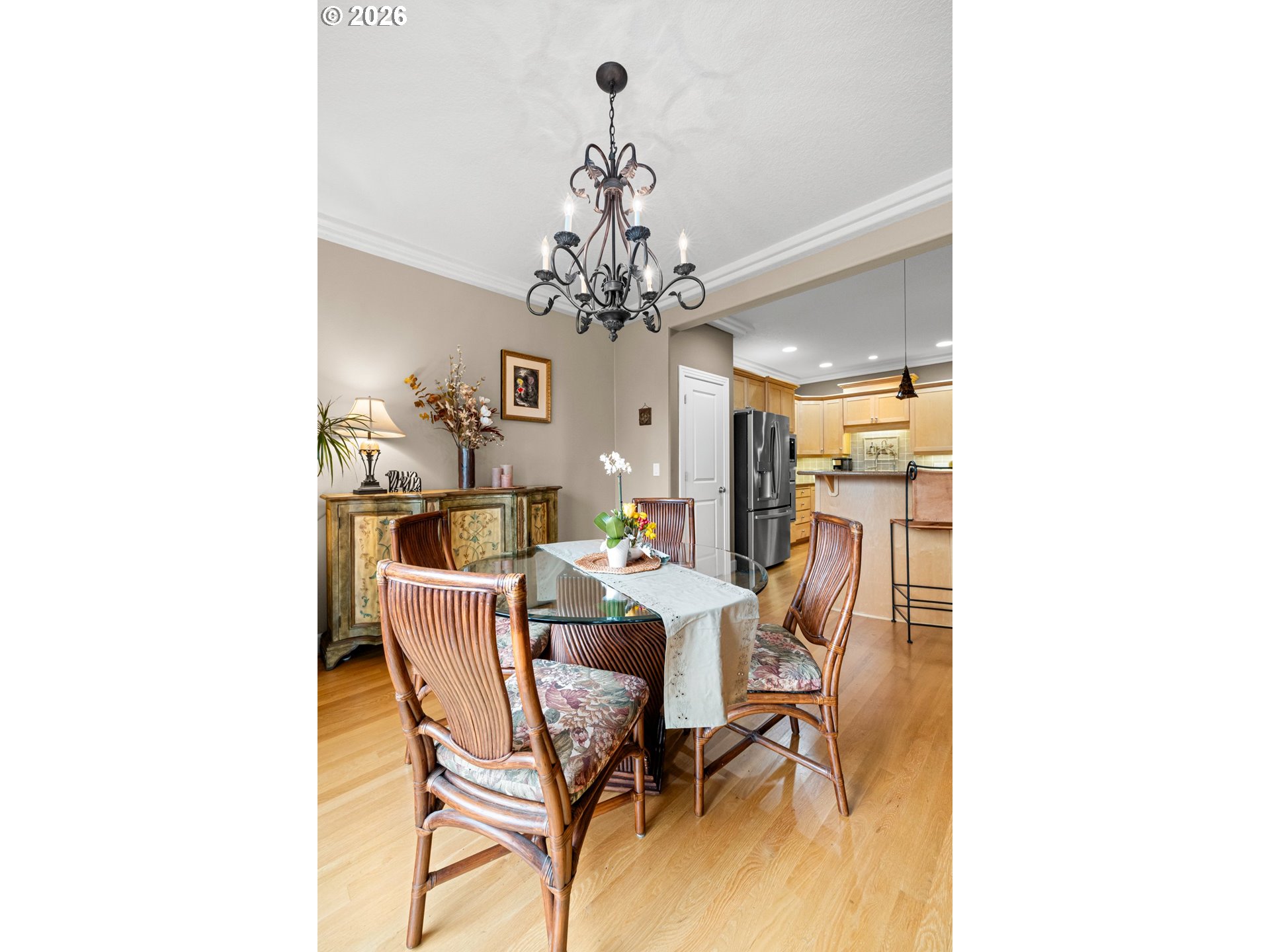 Beautiful High-Quality & Spacious End-Unit West Linn Townhome! Main floor features great room-style kitchen, dining and living area with gas fireplace, built-ins, hardwood floors, trayed ceilings and plantation shutters. Cook's kitchen with gas cooktop on island with eat bar, granite counters, custom tile backsplash, stainless steel appliances and pantry. Spacious primary suite with double-door entry, vaulted ceiling, walk-in closet and en suite bath with soaking tub, shower and double vanity. All bedrooms and laundry room upstairs. House is pre-wired for sound system. New Timbertech deck and fenced yard off dining room for BBQs and gardening. 2-car attached garage plus room to park in driveway. Newer cement fiber siding, exterior paint and roof. Close to parks, shopping, I-205 and downtown Oregon City.