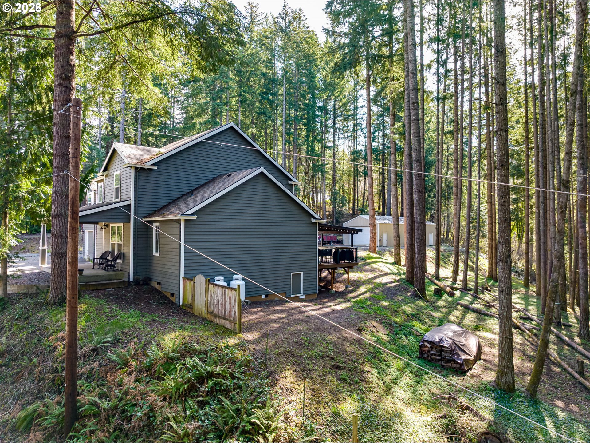 Immerse yourself in the tranquility offered by this 4.2-acre haven nestled amidst an idyllic woodland setting. The cozy stone fireplace equipped with a pellet stove, is the perfect accent to this serene retreat. The kitchen offers a taste of modern elegance outfitted with freshly updated granite countertops, a sleek tile backsplash, and brand new stainless-steel appliances. Upgrades also include a newly installed roof in 2023, a water well in 2024, as well as updated flooring and a fresh coat of paint enhancing the home's overall appeal. The ground floor hosts the primary bedroom boasting vaulted ceilings and easy access to the covered portion of the expansive Trex decking - a year-round outdoor living space allowing you to soak in the picturesque surroundings. The property's exterior, characterized by its fresh paint job in 2022 and ample gated gravel parking space, seamlessly blends with the lush landscape. A well-maintained gravel path leads you to the lower acreage, unveiling access to a seasonal creek, adding to the property's alluring privacy and tranquility. The property also includes a 24x48 workshop equipped with 220 power, a 10x16 roll-up door, concrete floors, and is plumbed for compressed air. The house is also wired for a generator hook up with a water heater, furnace and kitchen stove all fueled by 2 leased propane tanks. Beneath the house, an impressive crawlspace provides easy access and ample headroom while the house's beautiful cedar siding and oversized front porch, coupled with professionally trimmed trees in 2024 and cleared undergrowth, add to its charm. Upstairs unveils a large bonus room, contributing to space versatility. With much of the 4.2 acres accessible yet private, this move-in-ready property is a remarkable blend of luxury, comfort and outdoor living.