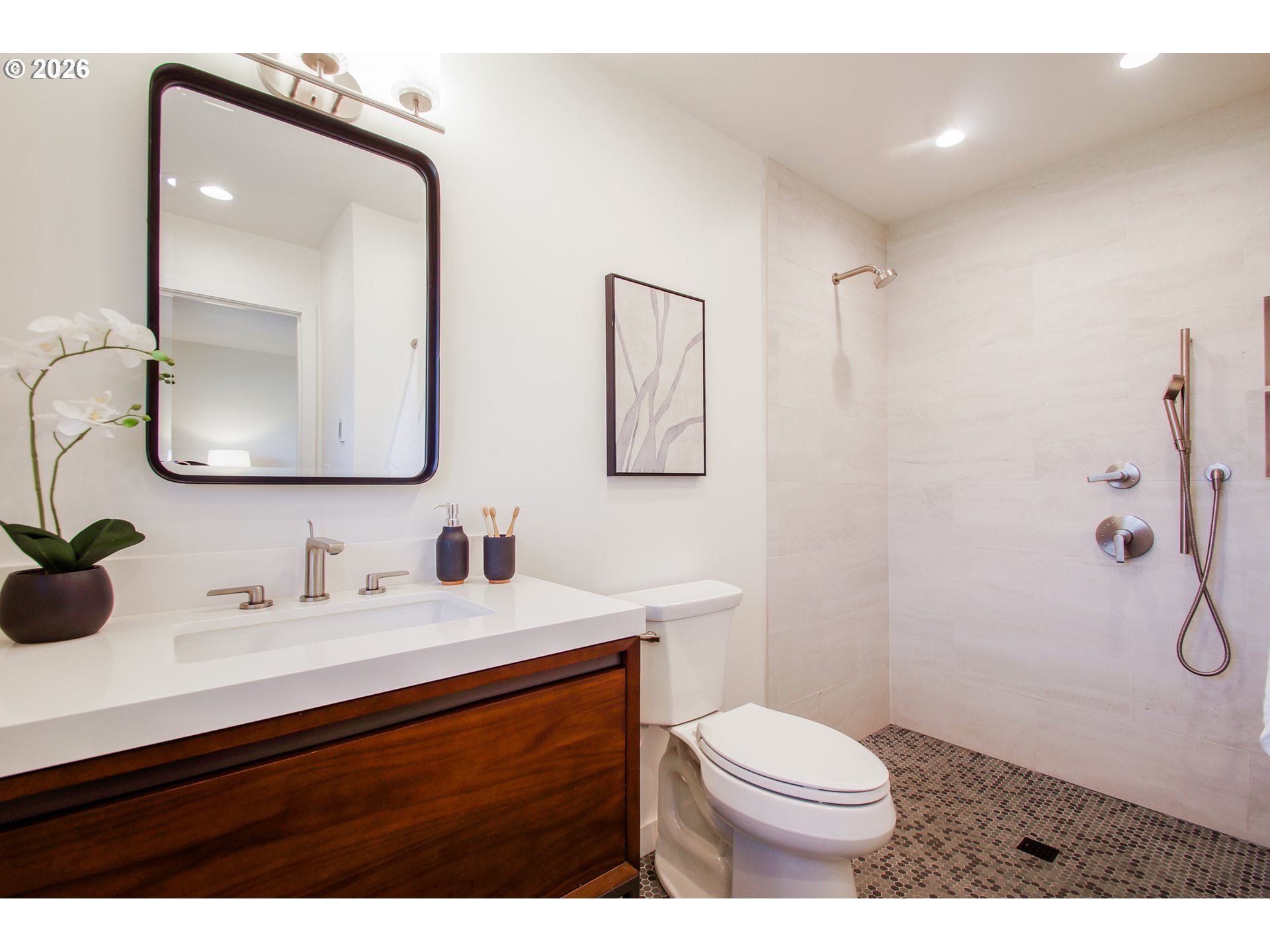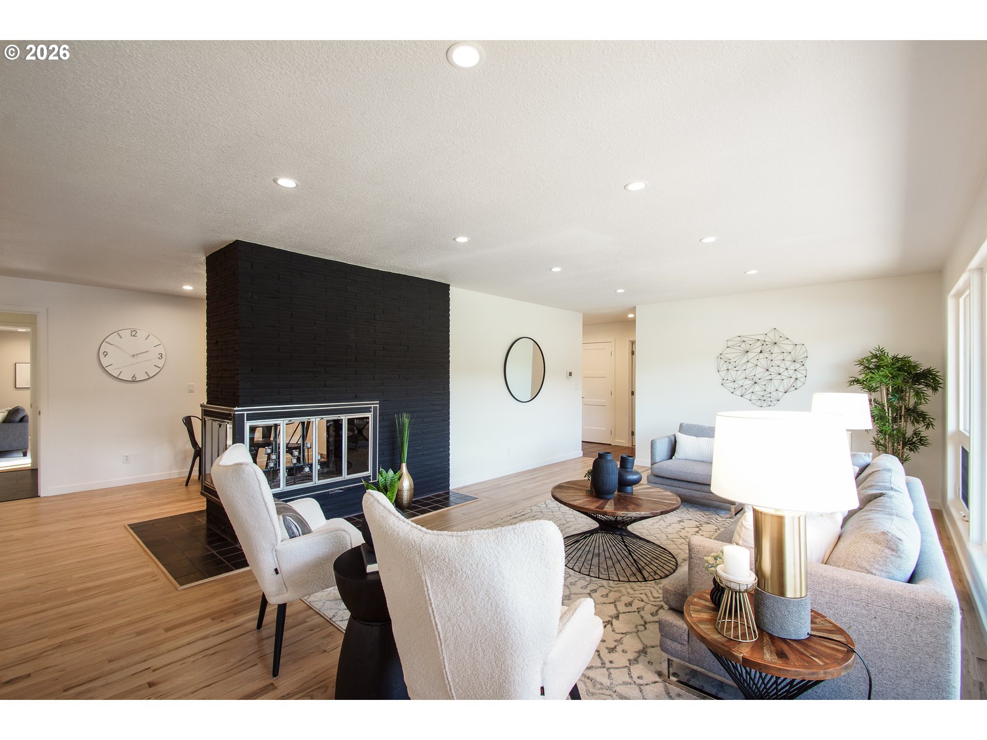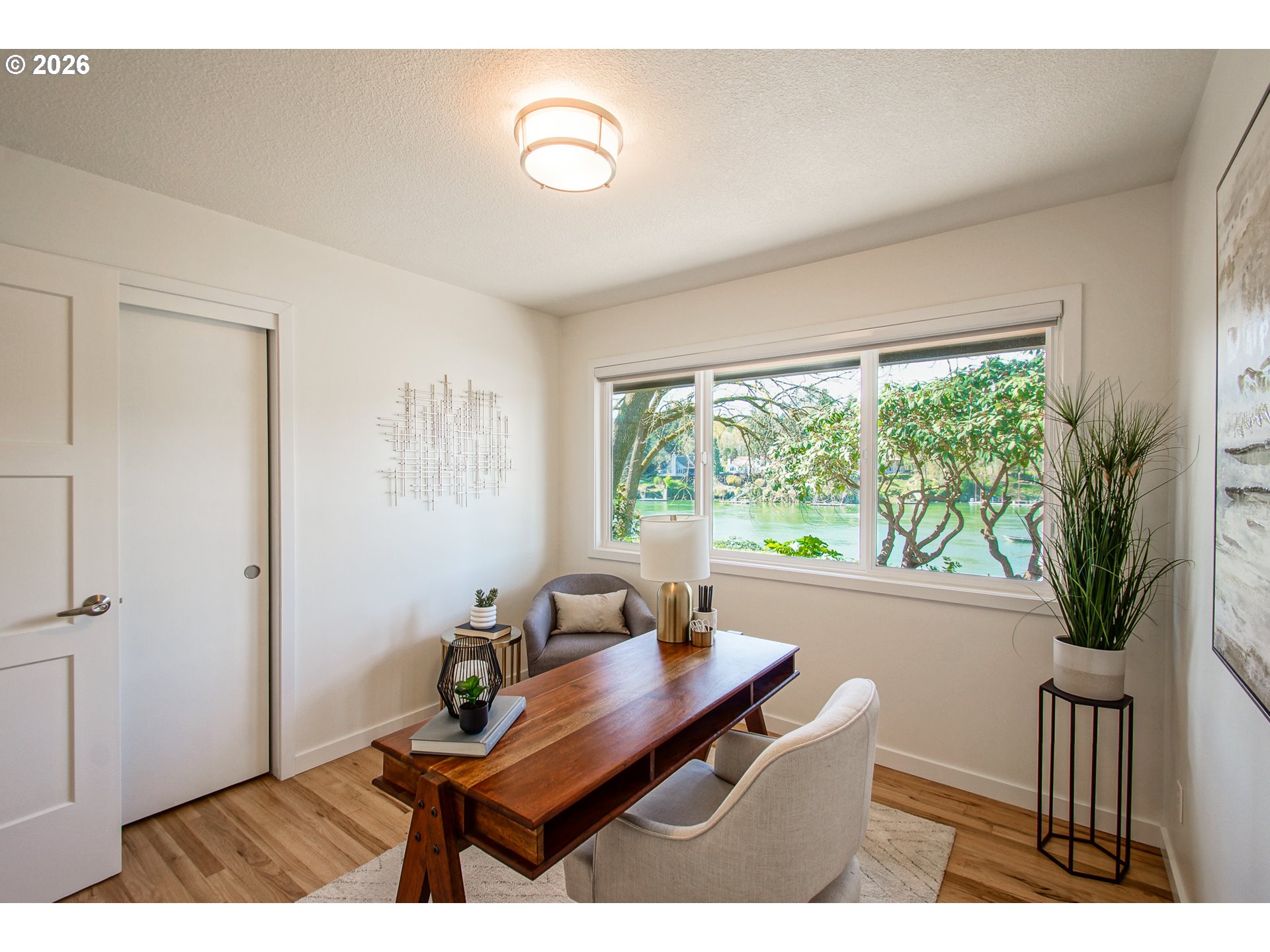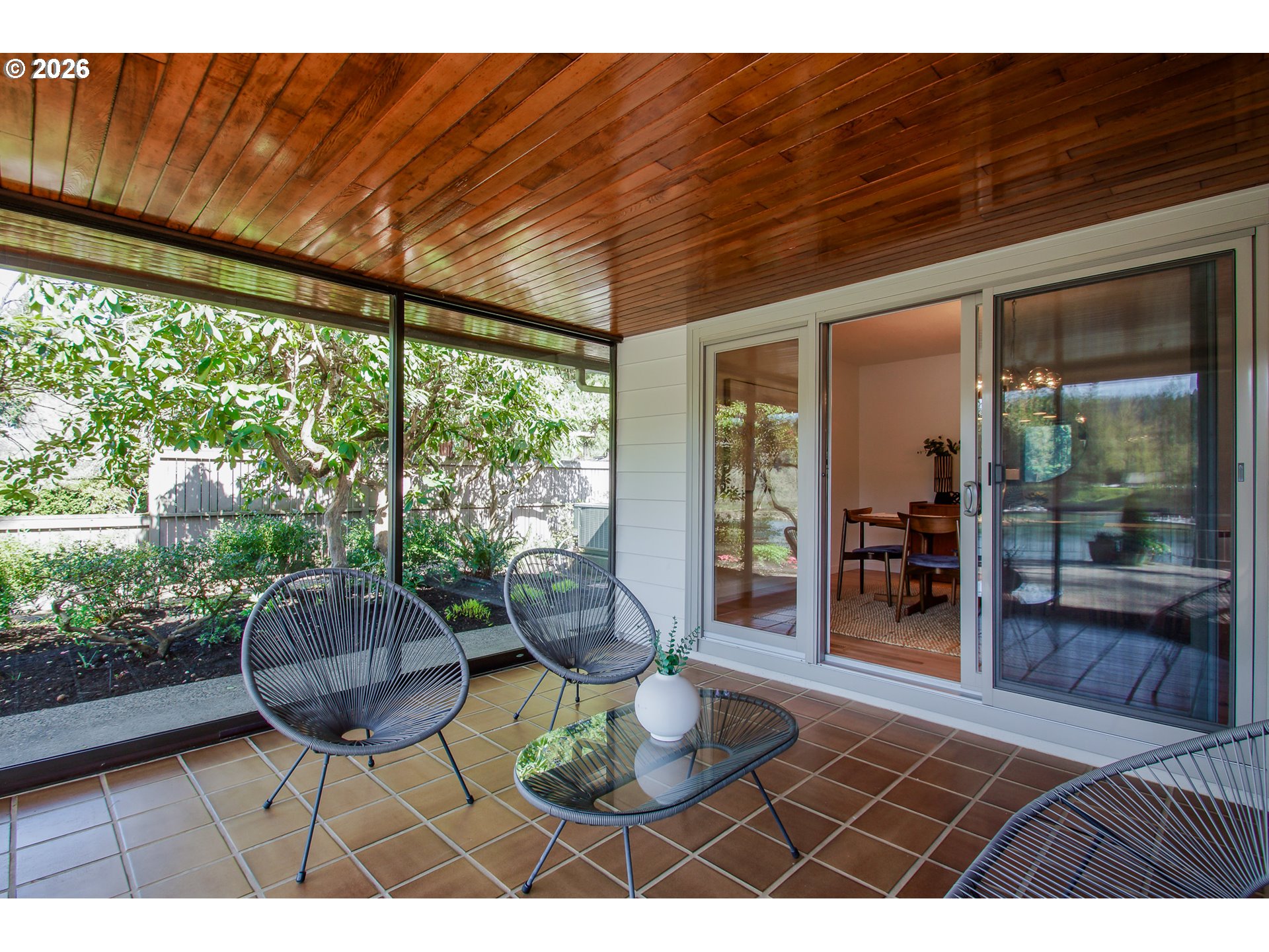 As you enter the courtyard, you know you’ve arrived somewhere special. Set in Riveroaks—one of Milwaukie’s most inviting riverfront neighborhoods—this 1961 MCM delivers easy one-level living with sweeping Willamette River views and a floorplan built for both entertaining and everyday comfort. Walls of windows keep the riverfront setting front and center. Watch osprey and bald eagles, rowers, fishermen and boats drift by. The living and dining rooms connect to a bright sunroom with sliders to a generous terrace, while a dramatic three-sided glass fireplace anchors the main spaces. The kitchen nods to its vintage roots with a built-in double oven set into the hearth, and the large family room offers exceptional storage plus convenient access to the front courtyard for effortless indoor-outdoor living. Four bedrooms are tucked into a private wing with large closets and hardwood floors. The primary suite features an updated, spa-inspired bath with a zero-entry shower; a second updated bath offers a long soaking tub and crisp white tile. Outside, enjoy the NW landscape icon Barbara Fealey–designed landscaping, a custom carved door from another NW icon artist Leroy Setziol’s studio, and a quiet neighborhood park next door. Enjoy easy access to the river for your canoe, kayak or paddleboard. THIS is like being on vacation, but at home. Come see it and you'll get it. Open Sat 12-3 pm and Sun 1-3 pm!