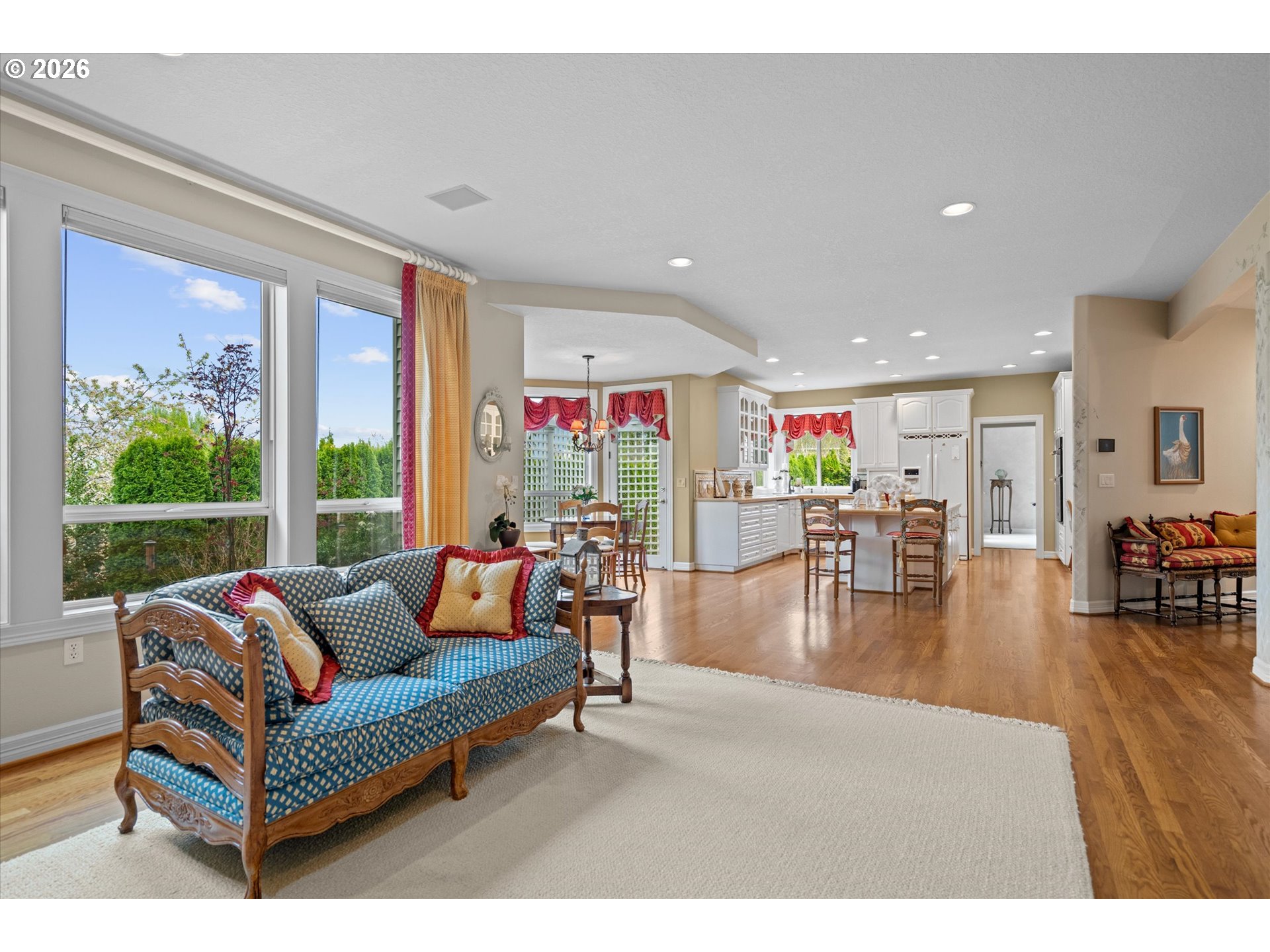 Tucked at the top of a quiet cul-de-sac in Lake Oswego, overlooking the valley with mountain views, this home makes an impression from the moment you arrive. It's been home to the same family since it was built in 1996 and they've had it meticulously maintained by a contractor since day one. The hilltop setting grants a natural seclusion all while being only minutes from all the amenities of central Lake Oswego.Inside you'll find rooms that feel open and unhurried, with wonderfully generous ceiling heights and arched windows pulling light in from every direction. A formal living room framing beautiful garden views, where a small pond and the gentle sound of water tumbling over rocks adds another layer of calm to an already peaceful setting, a dining room that spills out to a private terrace, and a generous kitchen with a large center island and a wraparound breakfast nook that's hard to leave. This is a home with real bones, a smart layout, and the kind of warmth that only comes from a family that truly loved living there.Upstairs, two generous secondary bedrooms and a full bath offer comfortable space for family or guests, while the primary suite is a genuine retreat of its own, with a fireplace, valley views through generous windows, and an en suite bath where a soaking tub sits at the center of it all, nestled beneath a wide bank of windows sharing those same sweeping views.Above the garage sits a truly generous bonus room, vaulted and finished with hardwood floors, that invites the imagination: a home office, a media room, a gym, an additional guest suite, an art studio, a playroom, a music room, or the ultimate kids' hangout, where toys, video games, and all the chaos that comes with them can live happily. NEW AC & FURNACE 2024 / NEW OVEN & MICROWAVE 2022