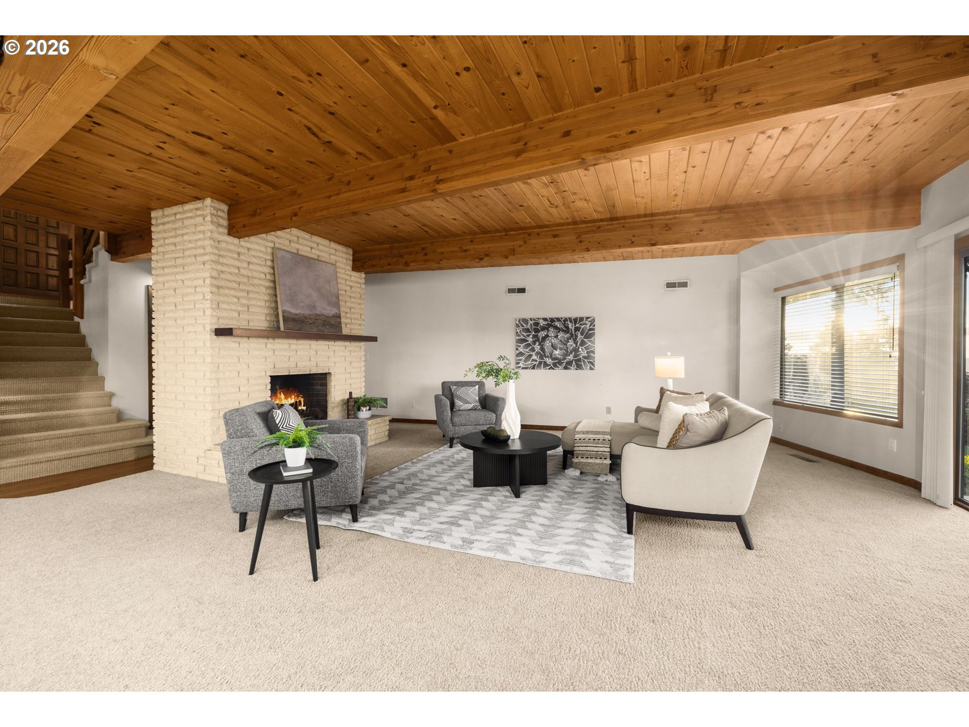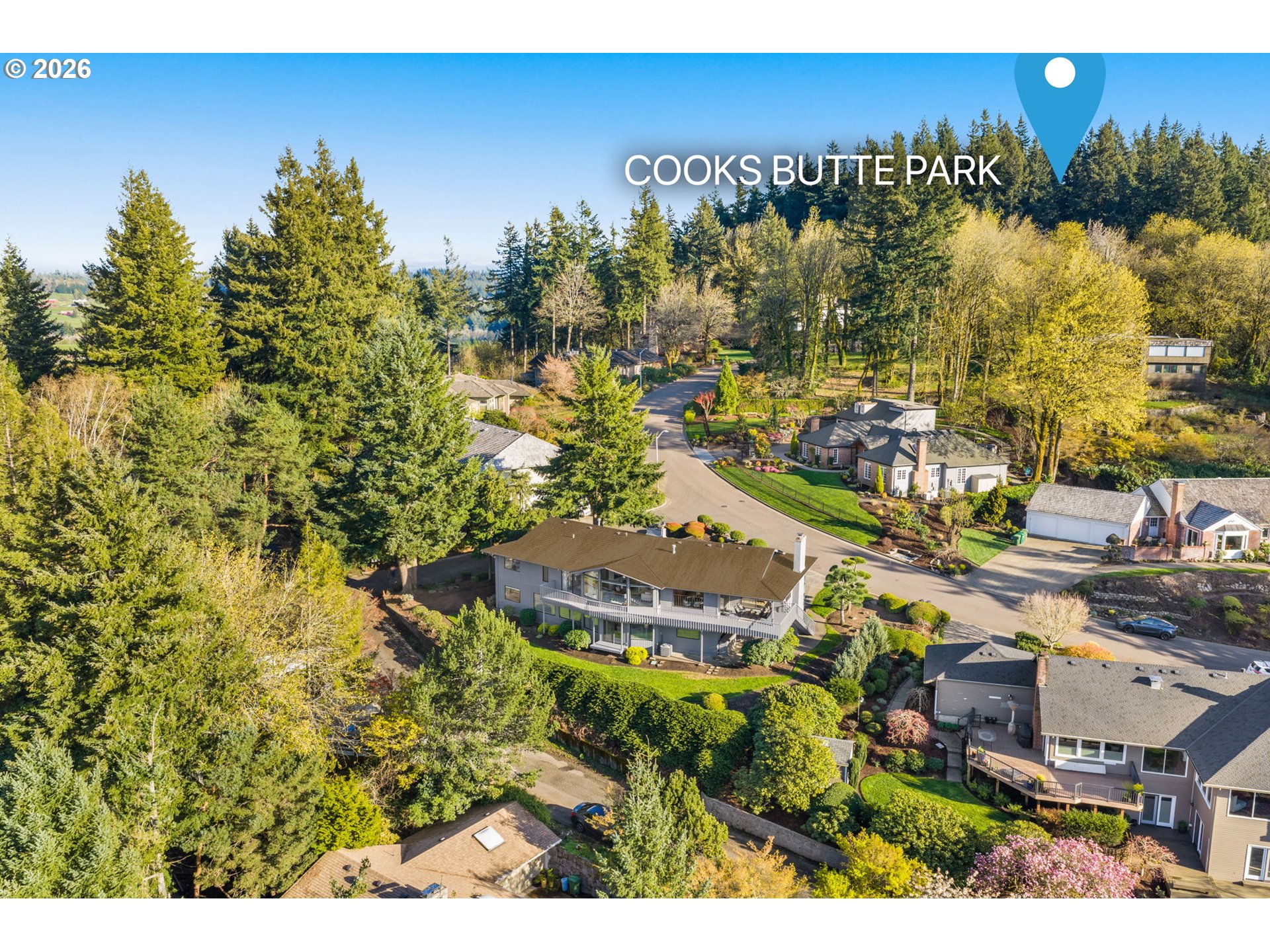 Custom-built Northwest contemporary offered for the first time since it was constructed, located high in Lake Oswego’s Palisades neighborhood on a quiet dead-end street just steps from the trails of Cook’s Butte Park. Expansive windows capture sweeping valley views with glimpses of the Cascade Mountains and fill the home with natural light. Circular driveway leads to French doors with stained-glass panels. Inside you’ll find vaulted tongue-and-groove ceilings, a dramatic floor-to-ceiling fireplace, and large open living spaces. Main level offers primarily single-level living with living room, family room, dedicated office, formal dining room, kitchen with eating nook, 3 bedrooms including the primary suite, and laundry. A full-length deck extends across the back of the home with a covered seating area, creating a great space for entertaining while enjoying the valley views. Lower level includes a large bonus room with fireplace, 2 additional bedrooms, and a full bathroom, providing flexible space for guests, recreation, or multi-generational living. Additional features include dual furnaces, dual hot water systems, and an oversized 2-car garage with workshop space. Low-maintenance yard. Convenient access to Lakeridge High School and the Lake Oswego Recreation & Aquatic Center. Rare opportunity to own a home with expansive space, views, and a prime Palisades location.