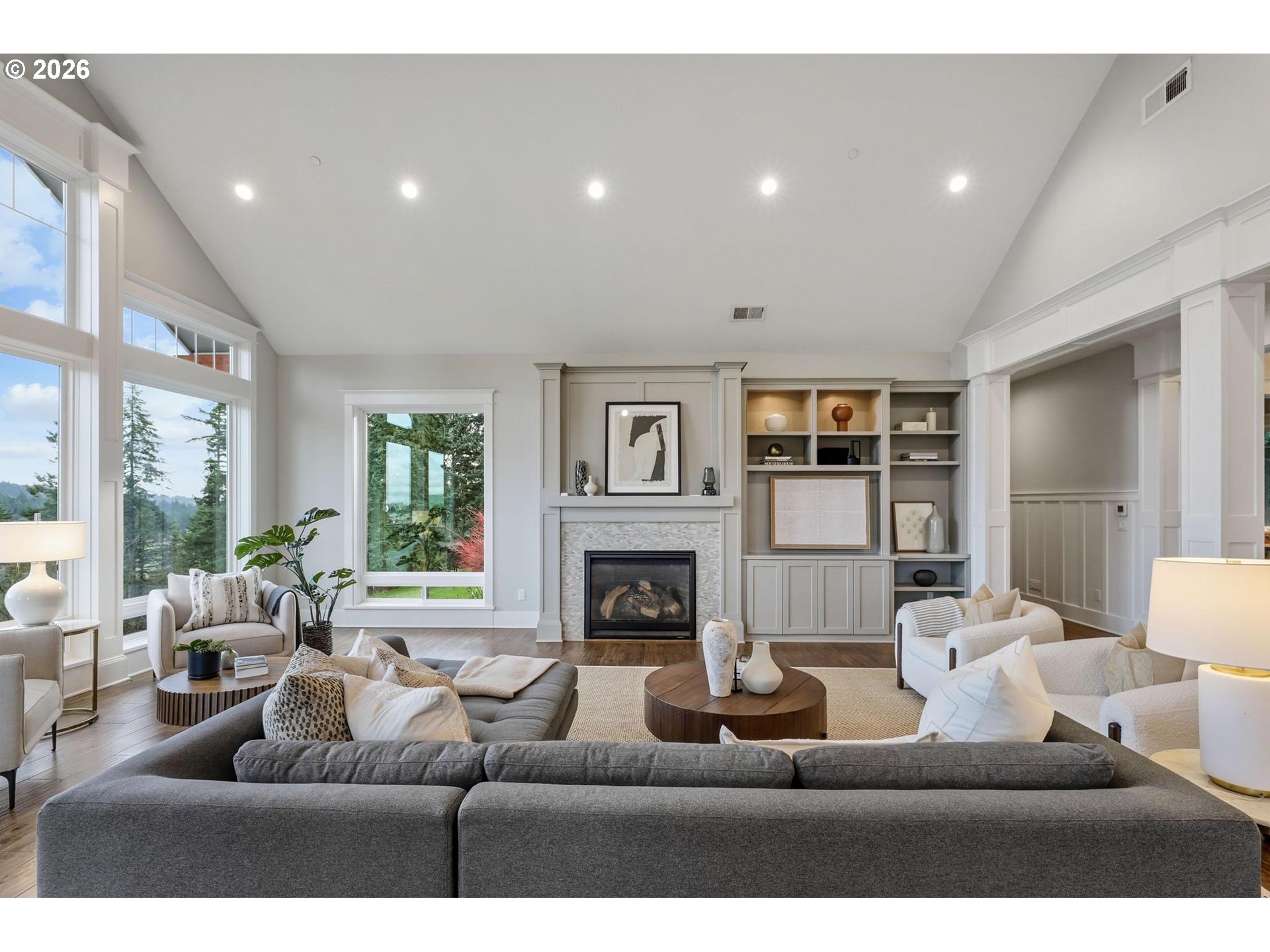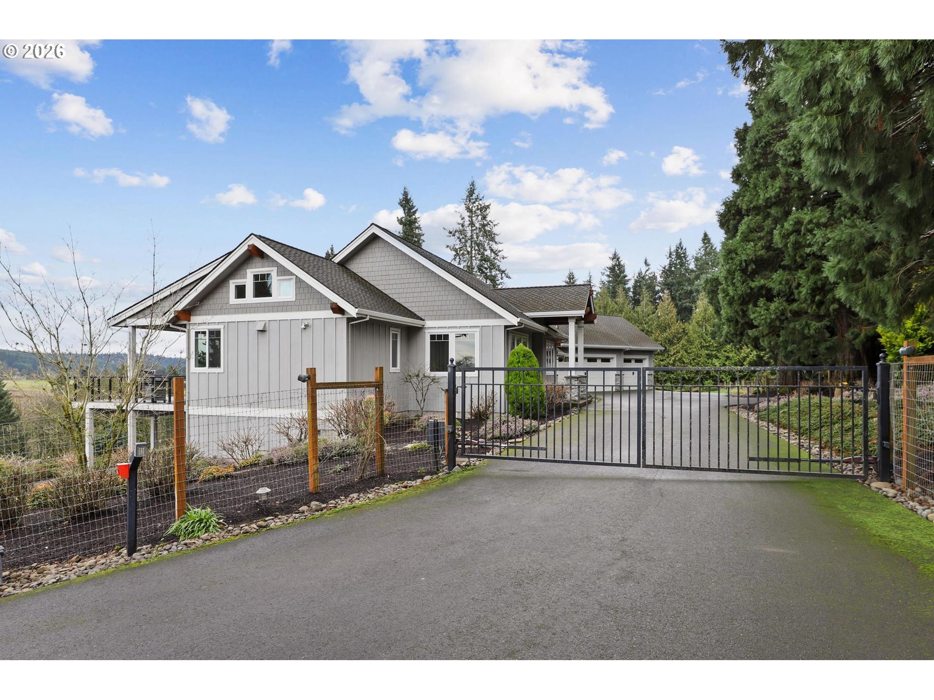 Discover the perfect blend of modern luxury and private tranquility on this private 2.37-acre retreat. Designed for modern living and gracious entertaining, this custom home offers an open, flowing layout with expansive views of rolling hills and distant Mt. St. Helens. Built with meticulous attention to detail, the home features a vaulted great room with soaring ceilings, hand-scraped hardwood floors, and classic wainscoting throughout the main level. The light-filled design creates a seamless connection between indoor spaces and the surrounding landscape.The chef’s kitchen is both beautiful and functional, showcasing high-end appliances, custom cabinetry, and generous countertops—ideal for entertaining or daily living. The thoughtfully designed floor plan includes a main level owner’s suite, along with dedicated work-from-home and flexible living spaces. Outdoor terraces and covered patios boast views of surrounding acreage perfectly set for gardens, small livestock, or hobby farming, all while preserving privacy and open views. Additional amenities include a whole home generator, dog wash in garage bathroom, along with lower-level 2nd garage for tractor storage and workshop with roll-up door. This exceptional home blends a rare combination of refinement and freedom—truly a sanctuary for those who value space, privacy, and modern elegance. Conveniently located with easy access to I-205, Lake Oswego, Wilsonville, and nearby amenities.